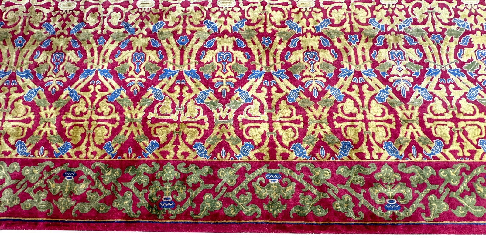 The creation of this rug involves many processes, including spinning, weaving, washing, trimming, and finishing, all done by skilled weavers. Known for it's durability and strength, this beautiful rug displays a magnificent quality.