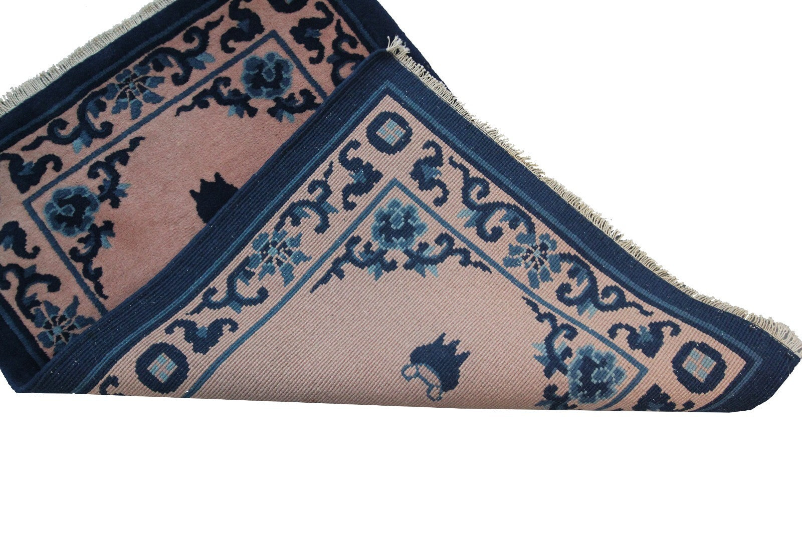 2x3 Antique Peking Rug Chinese Art Deco Rug Pink Purple Handmade Chinese Rug 2x3