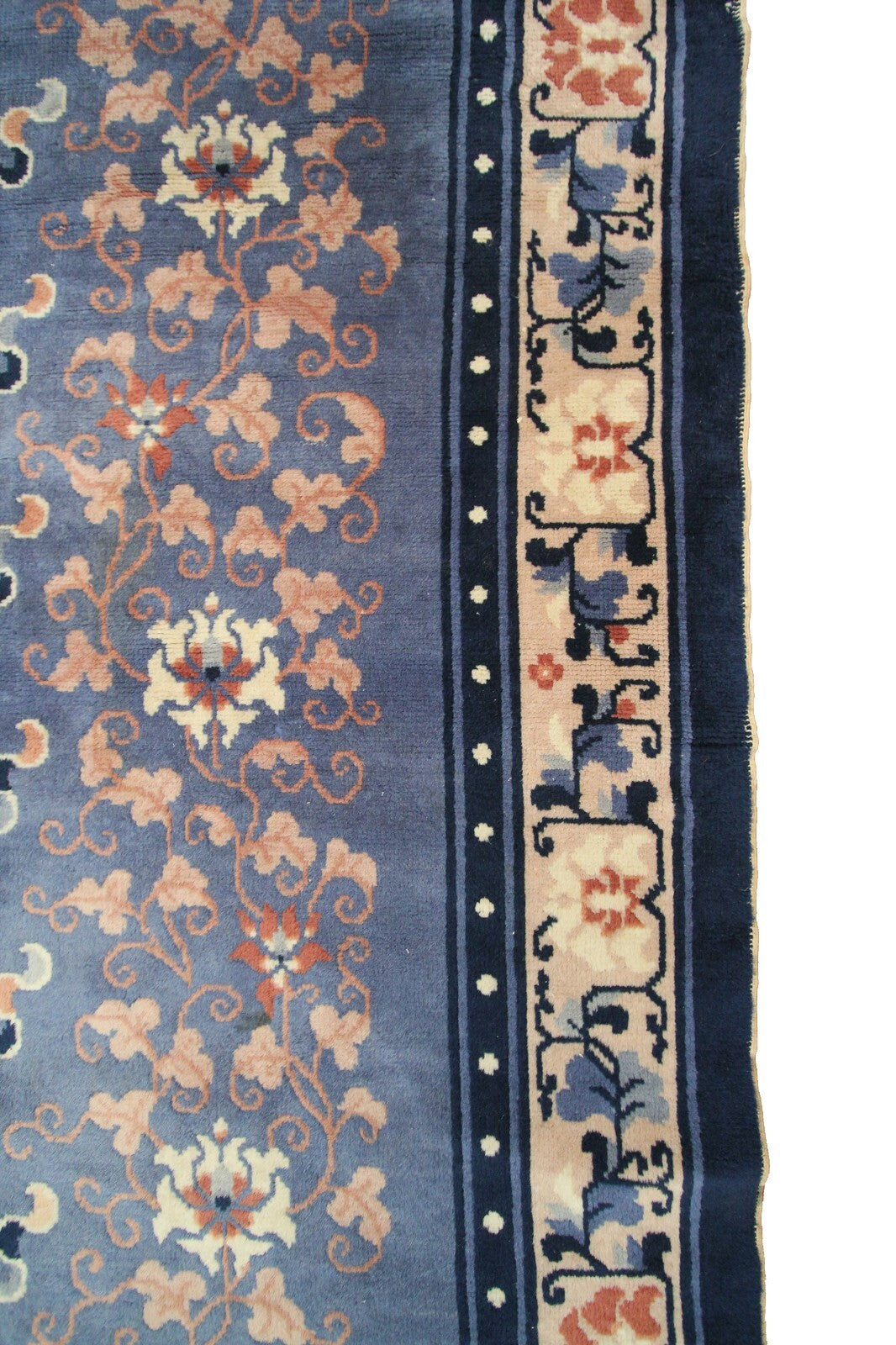 The rich Chinese culture is depicted in their weaving, and unlike the traditional Persian rug, the symbols and colors all have specific meanings and intents. In the late 1800's a monk from the Northwest Territories of China moved to Peking (Beijing) and set up rug weaving schools to help the poor earn an income. The weaving style was much like what was being done in the Northwest, utilizing the same symbols and designs. These factories were successful and started producing the first Peking rugs.