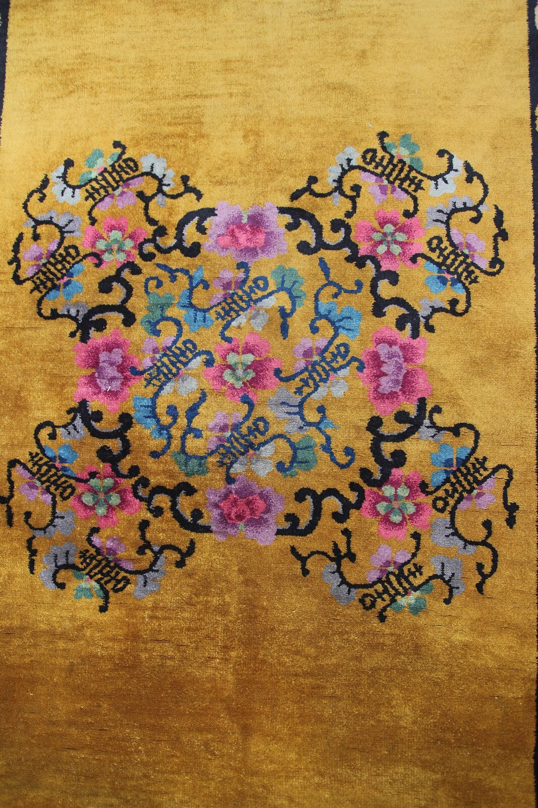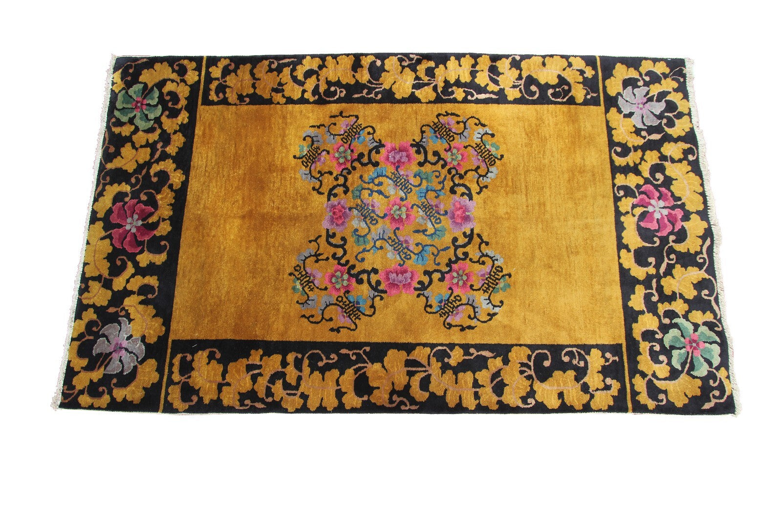 Gold Antique Art Deco Rug Antique Chinese Rug Walter Nichols Black