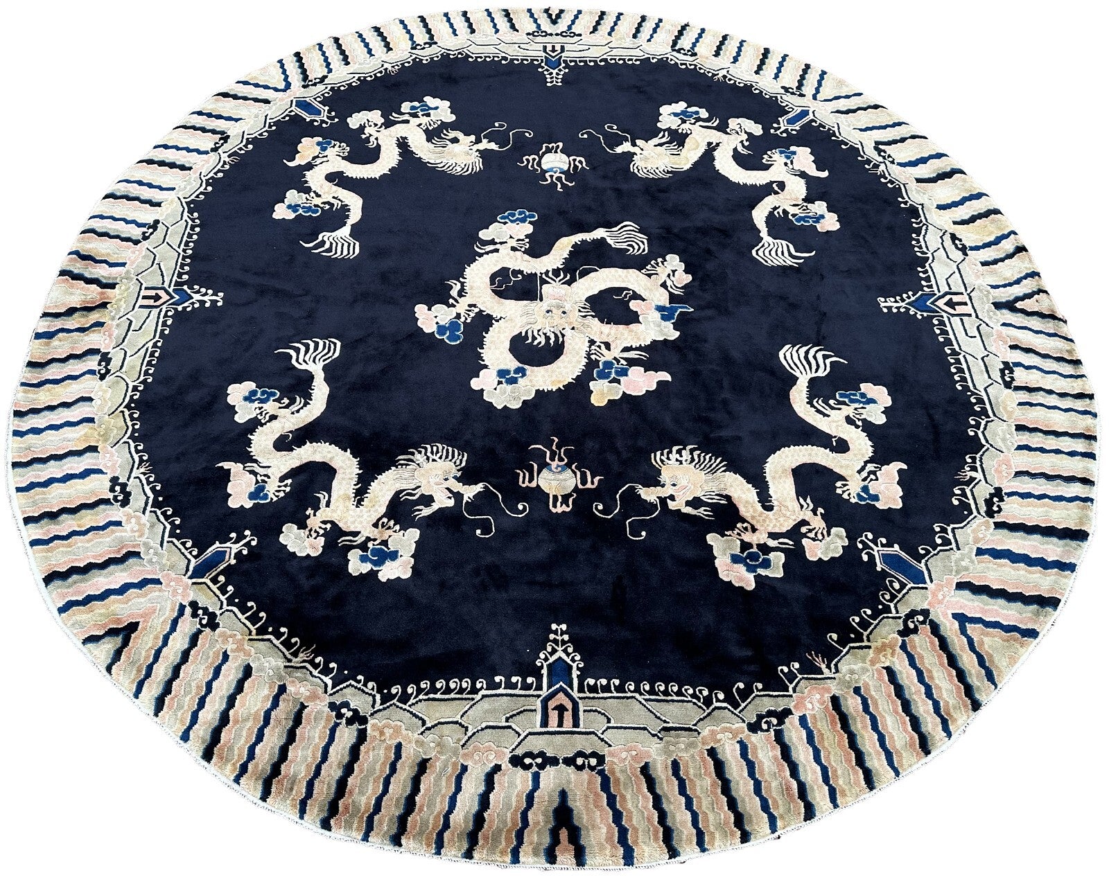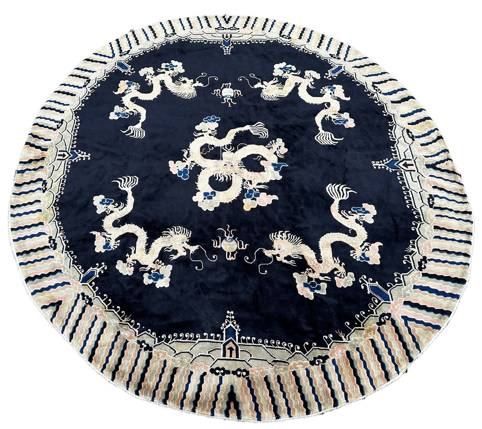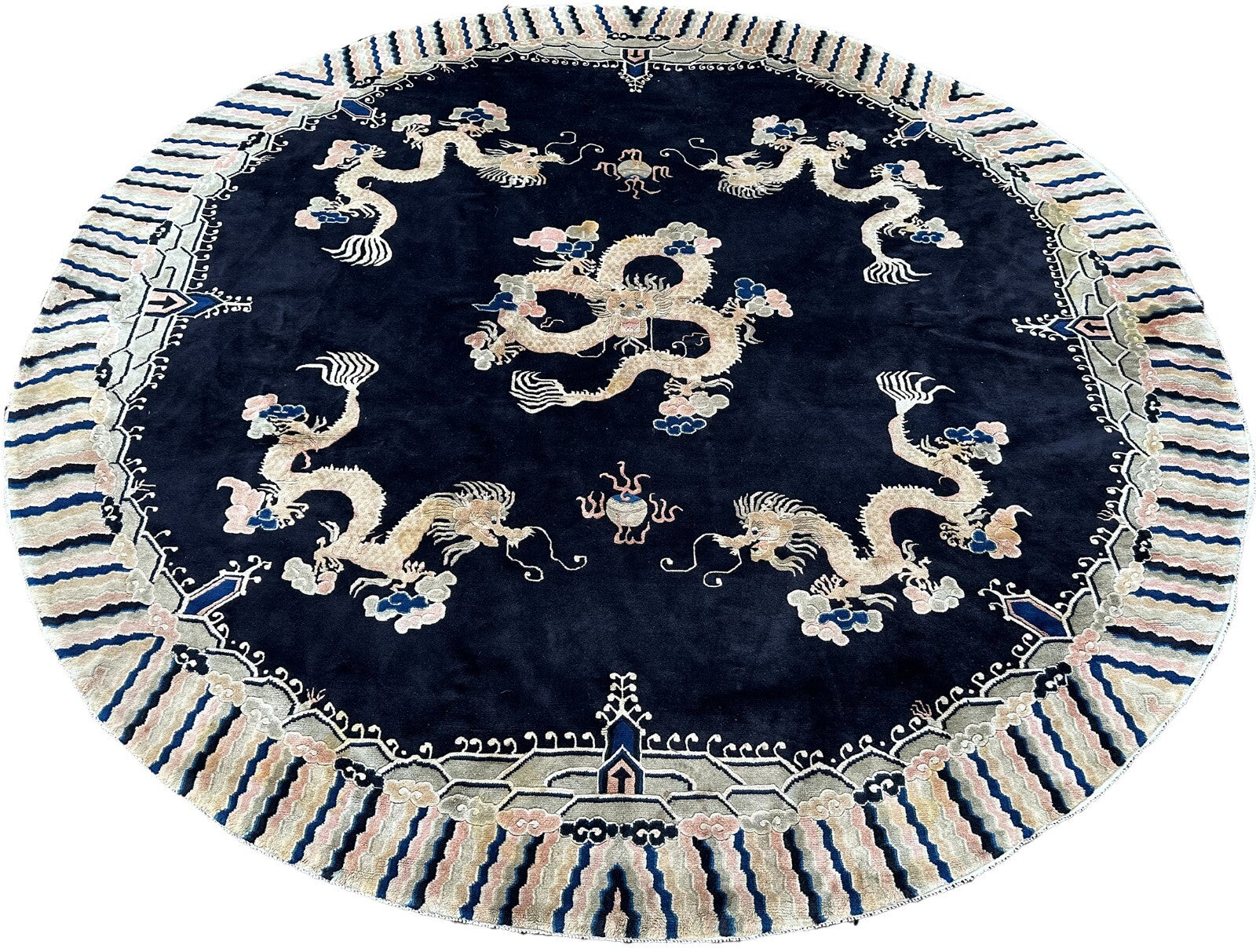 Antique Peking Art Deco Rug Chinese Rug 8x8ft Round 8' x 8' 244cm x 244cm