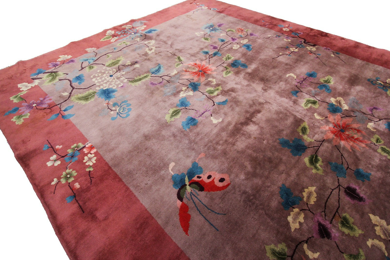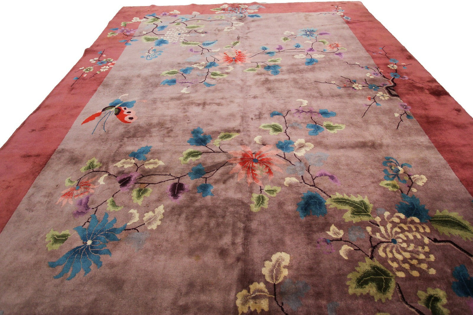 9x12 Rare Antique Art Deco Rug Chinese Rug Tree of Life Rug