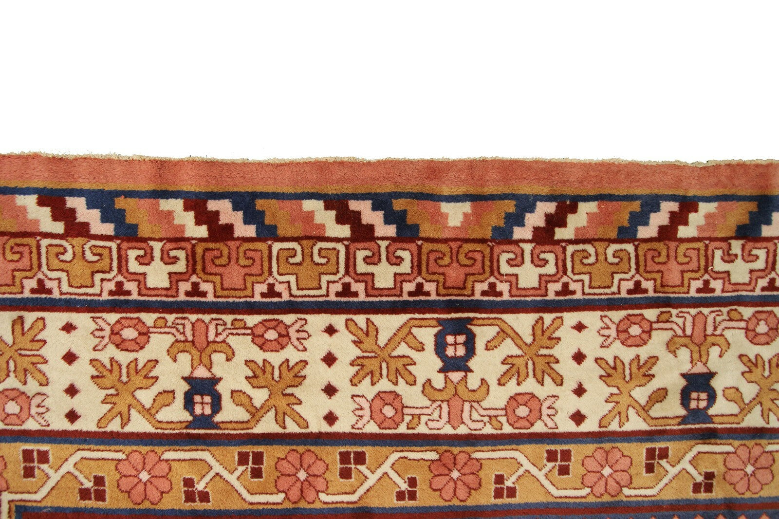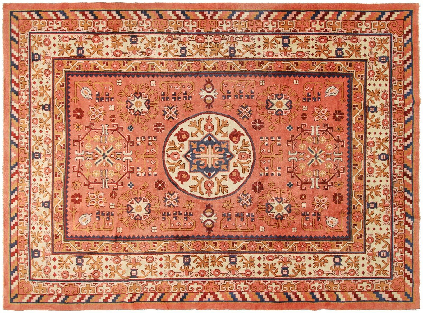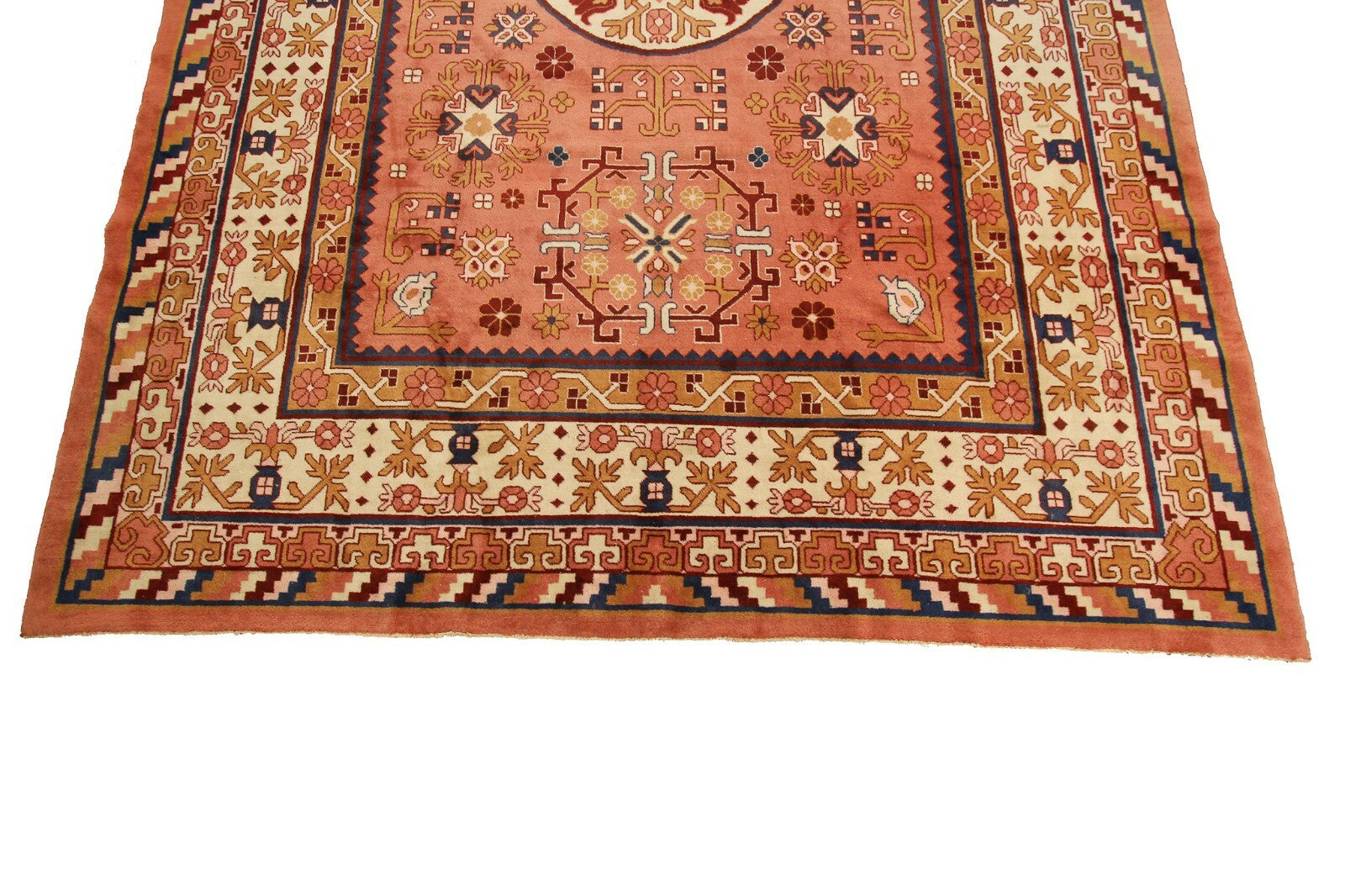 "This an exquisite Rare vintage Hand made Chinese Art Deco Art Nouveau Khotan rug in a rare geometric design. This piece was just acquired from a New Jersey Estate"-DCR