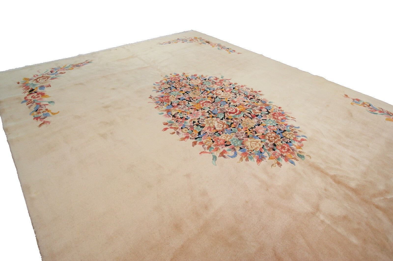 Rare Antique Art Deco Rug Art Nouveau rug Ivory 9x12 Chinese 267cmx351cm c.1940