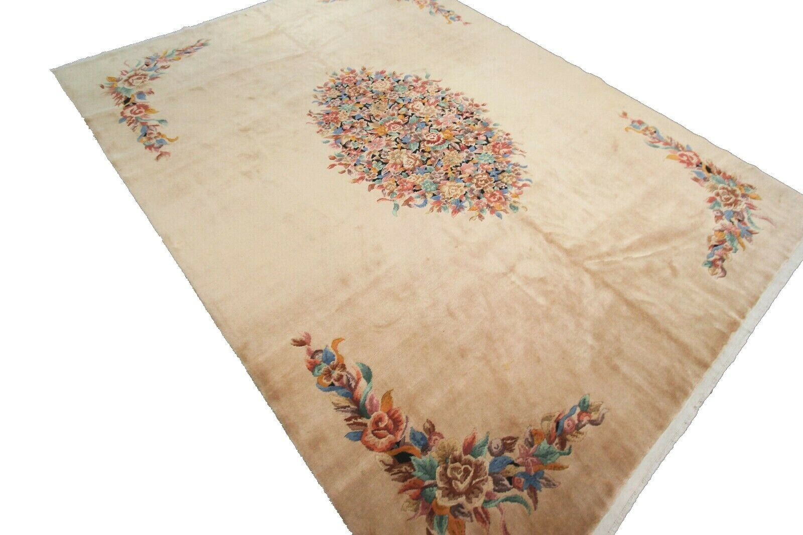 Rare Antique Art Deco Rug Art Nouveau rug Ivory 9x12 Chinese 267cmx351cm  c.1940