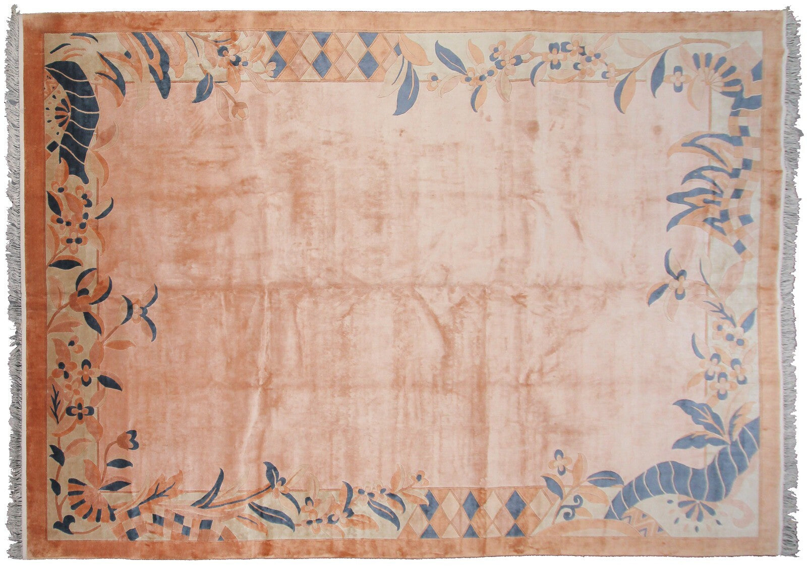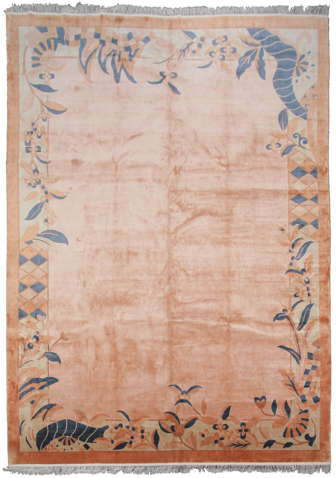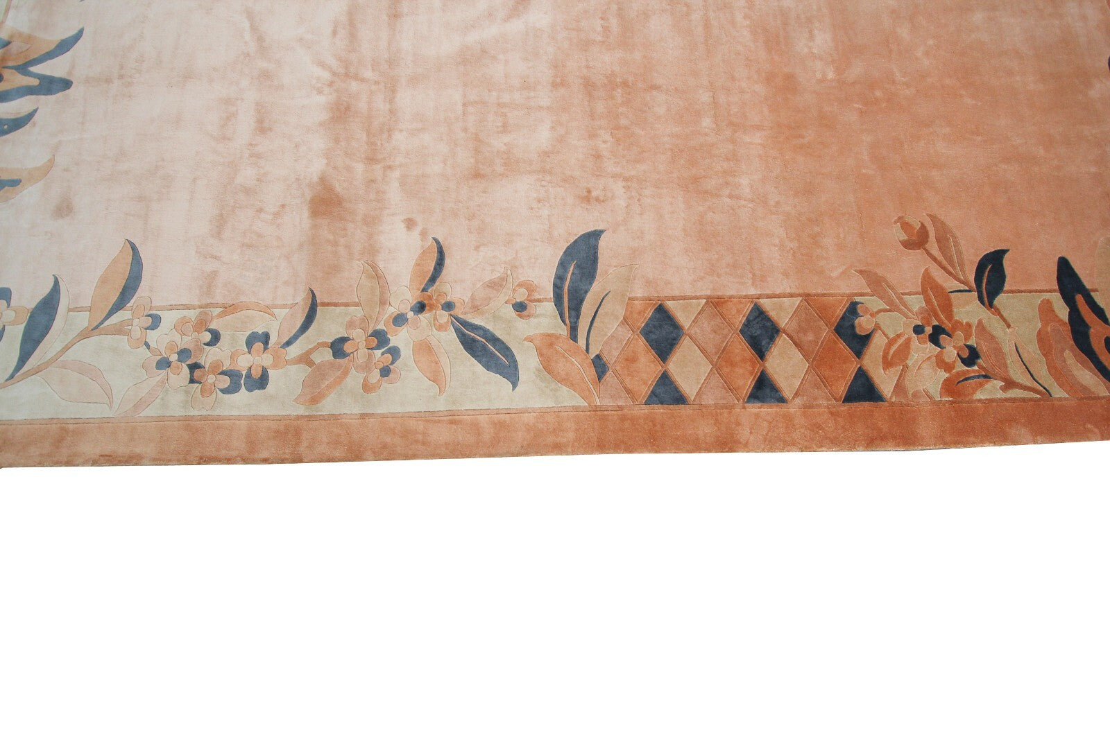 Rare Vintage Art Deco Rug Silk Chinese Rug Art Nouveau Handmade Rug Pink