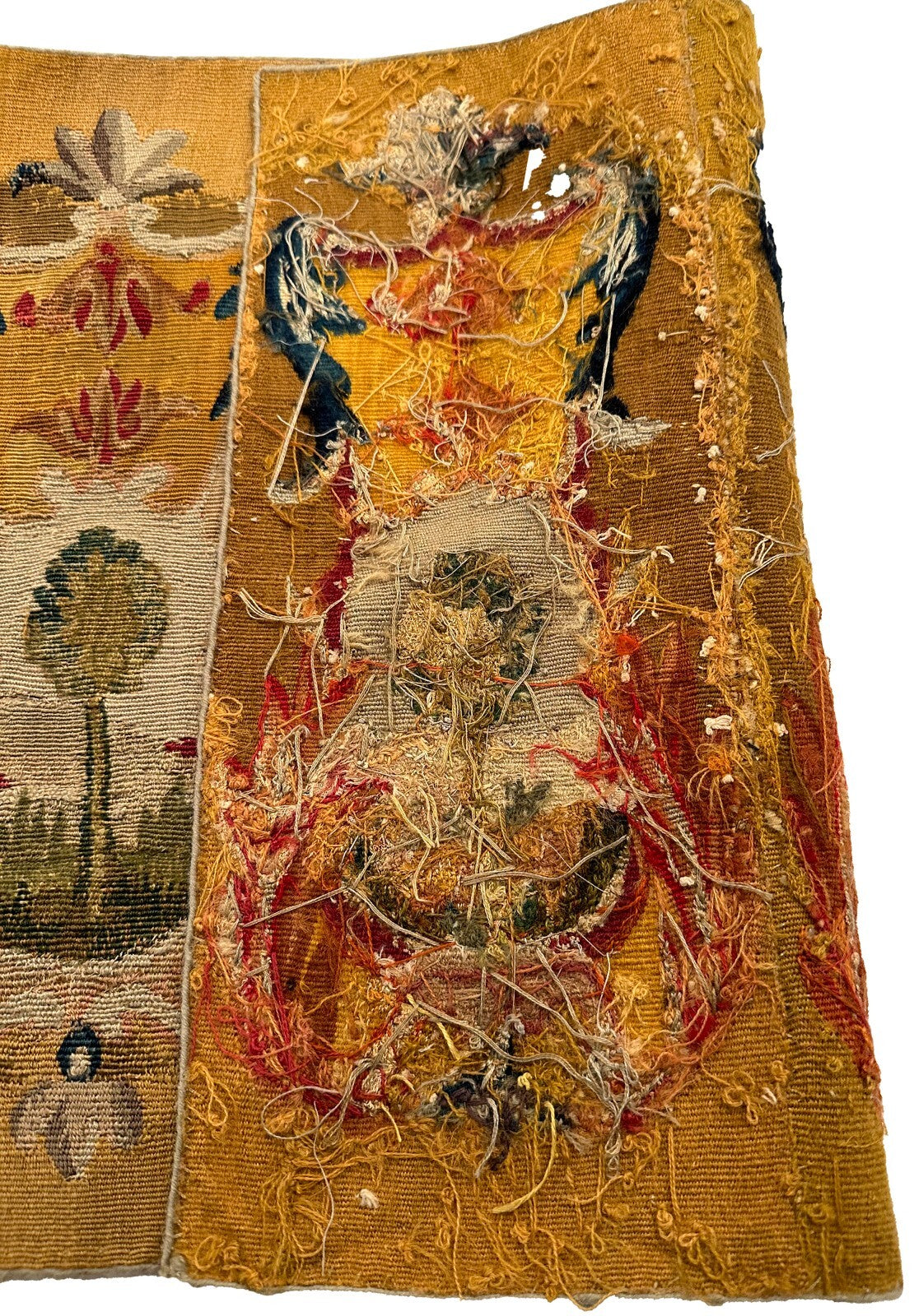 Early Antique Tapestry Wool & Silk 18th Century Tree design Verdure 19"x15"