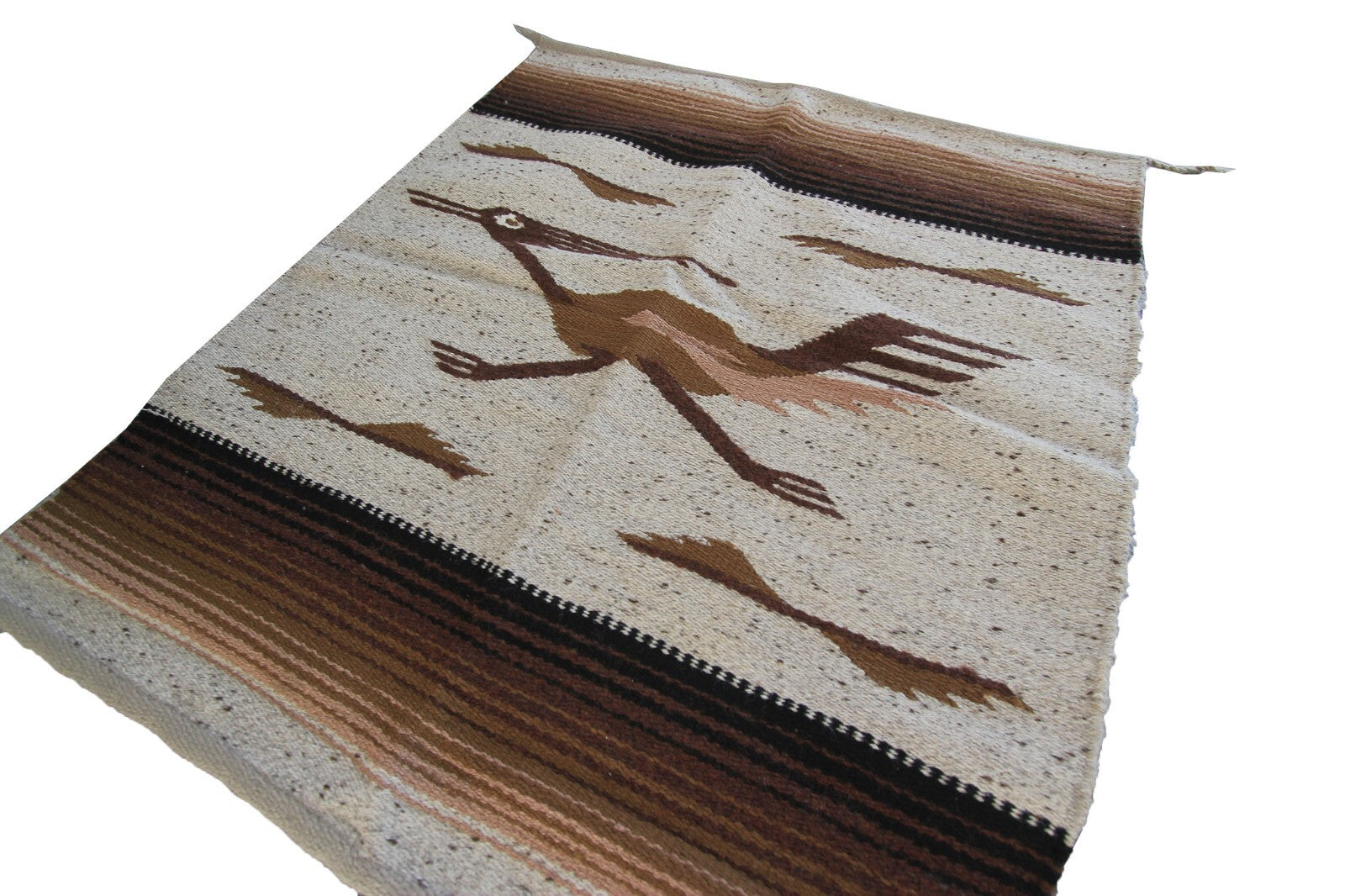 Vintage Mexican Rug Flatwoven Geometric Road Runner