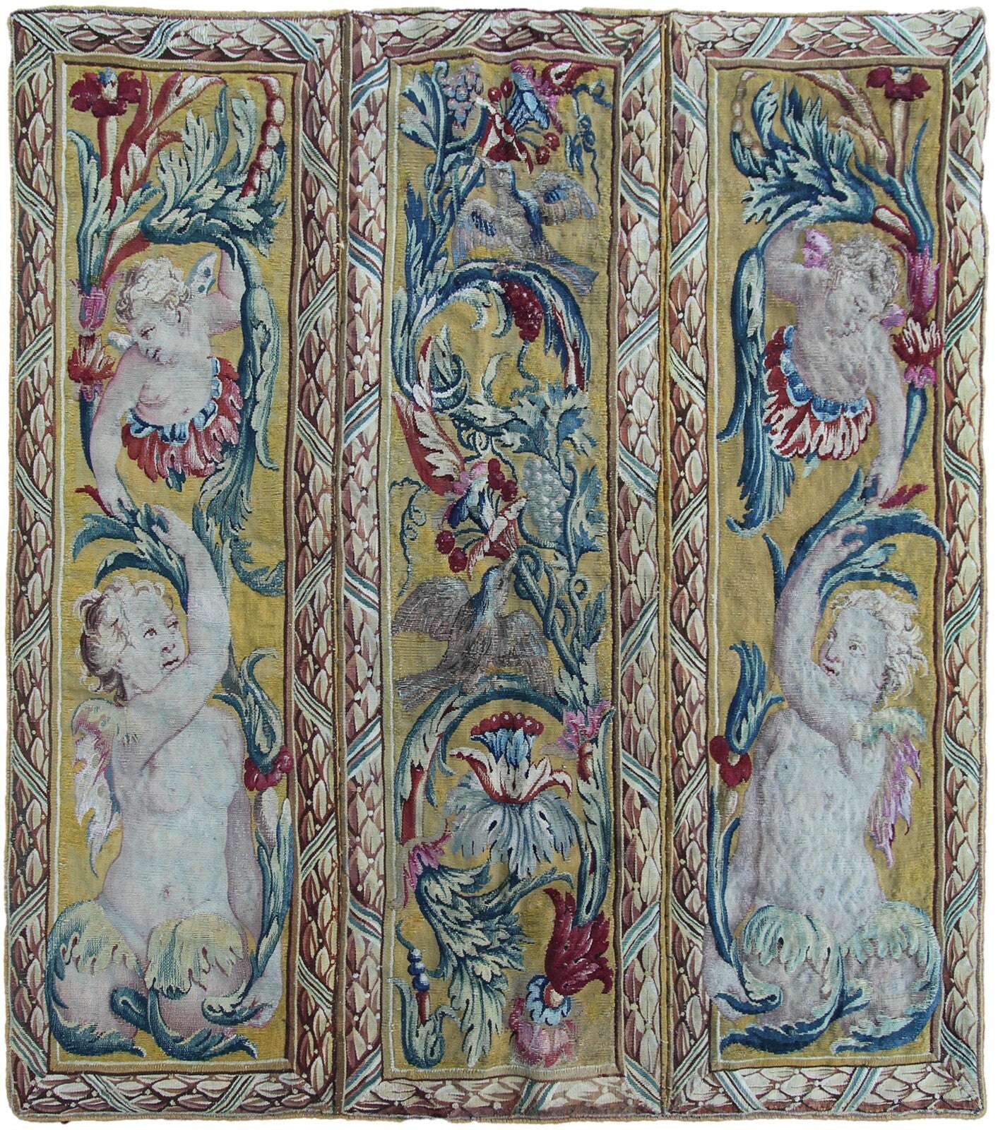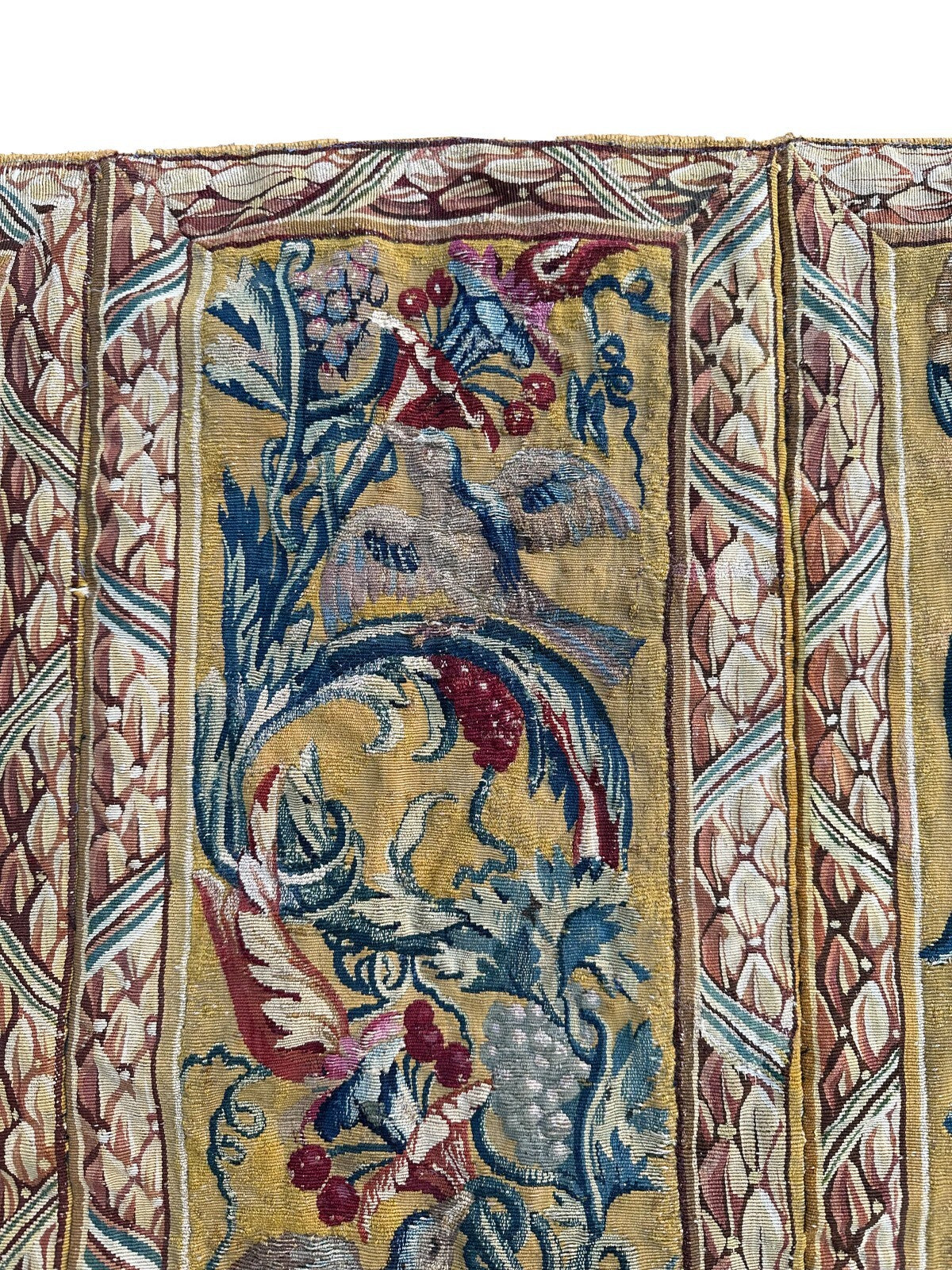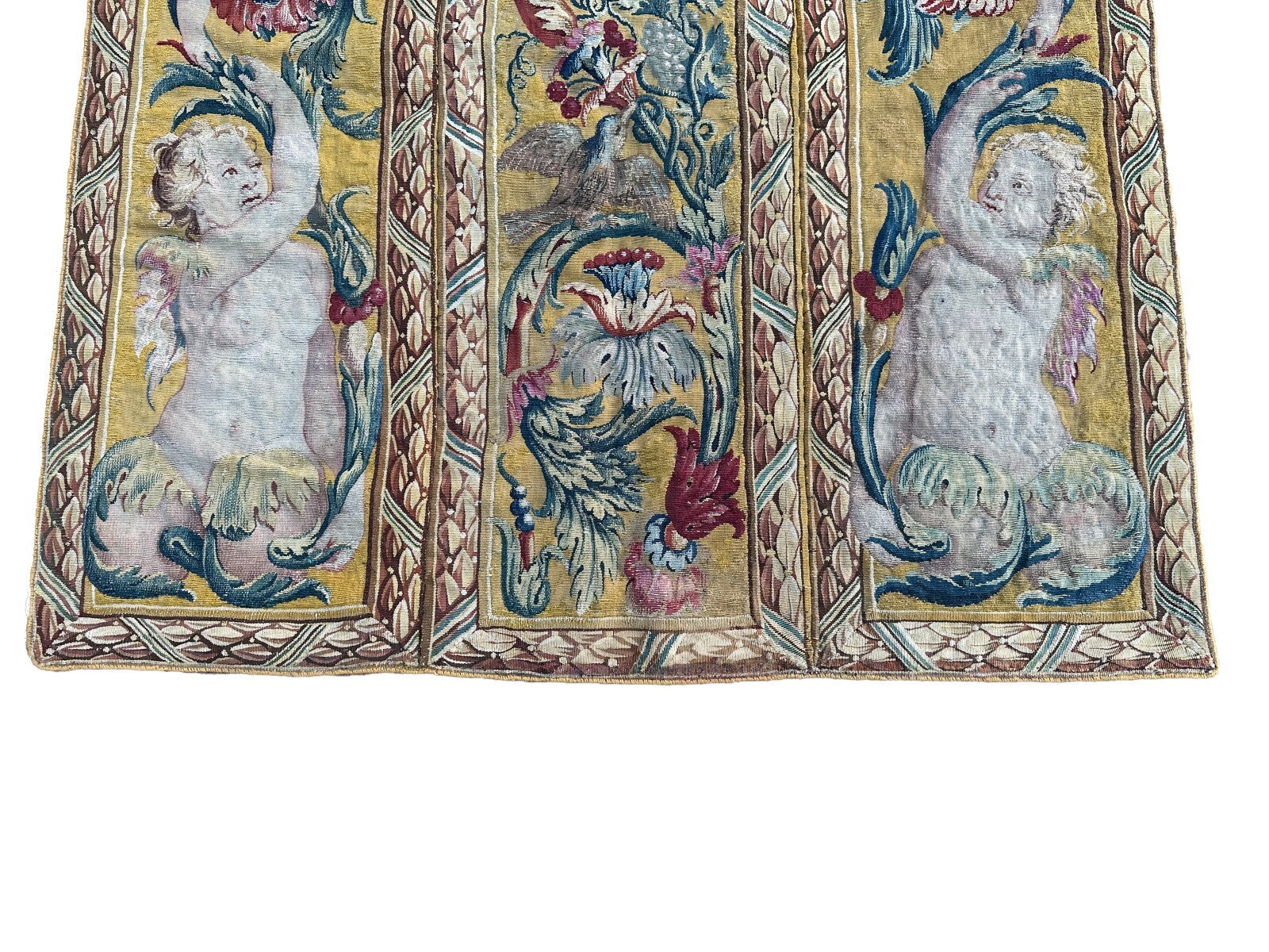 "This is an extremely fine Authentic Antique French Beauvais Tapestry from early 18th. century in Silk. This piece is truly a magnificent piece of art with artistic drawings of angles, birds and exotic flowers.. It is a very elegant tapestry with intricate flowers. One of the finest pieces we have come across in 40 years!-DCR