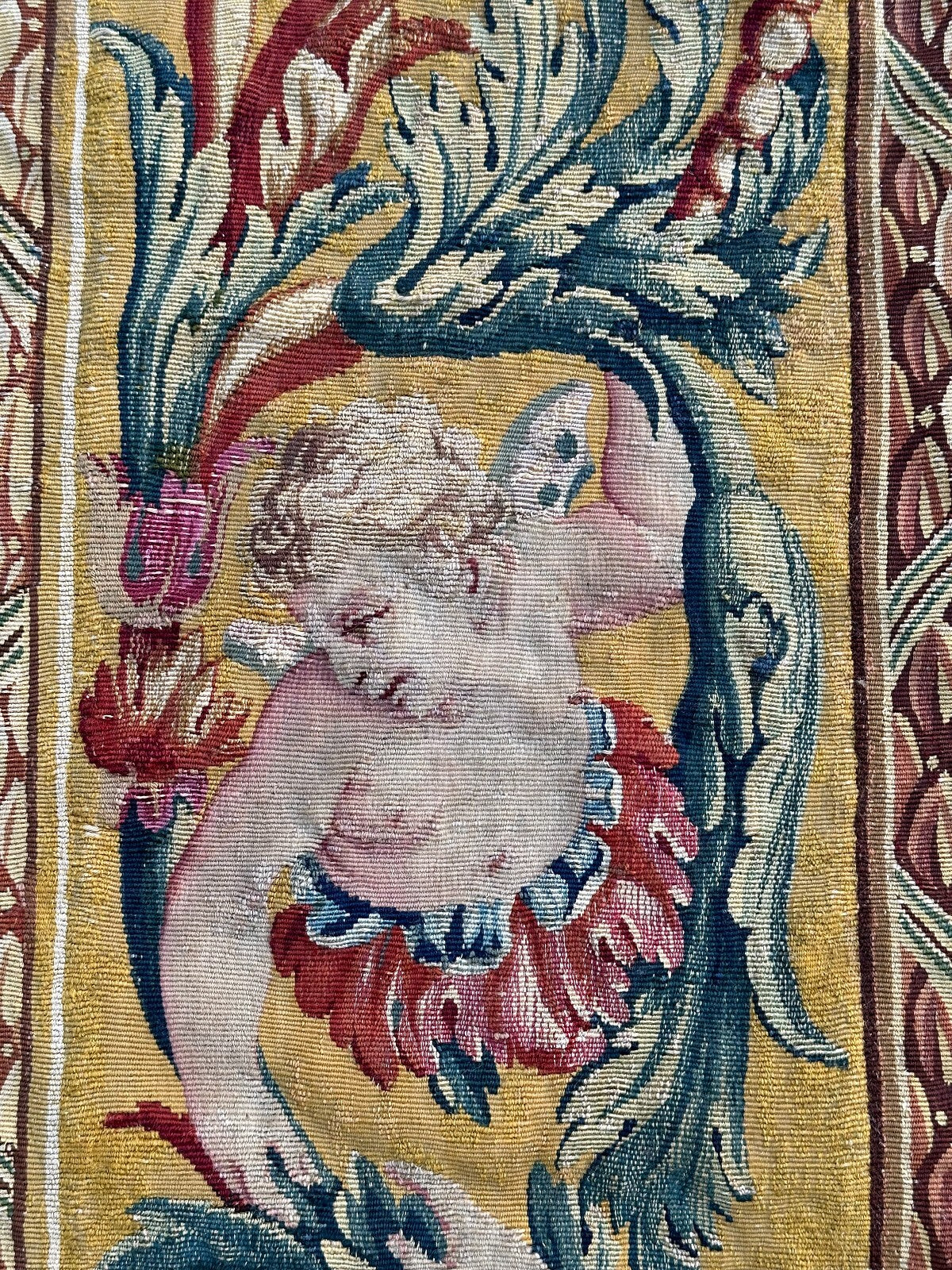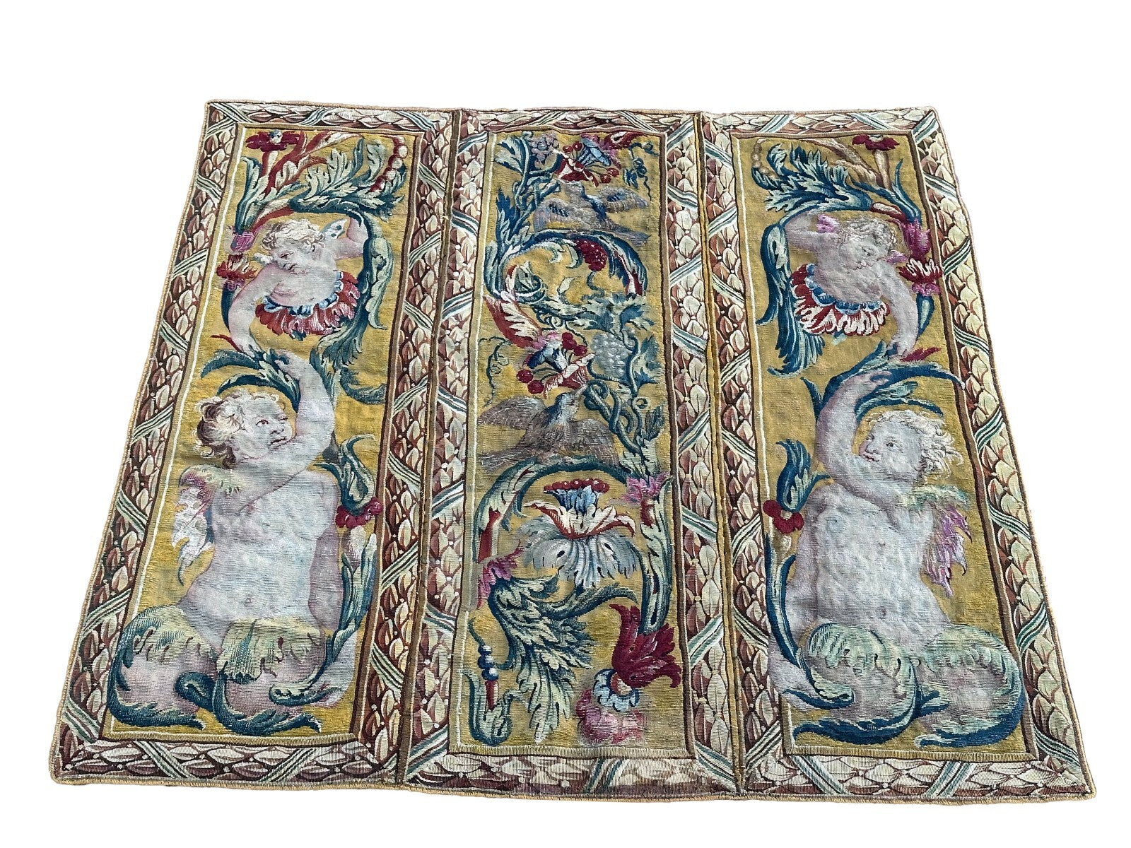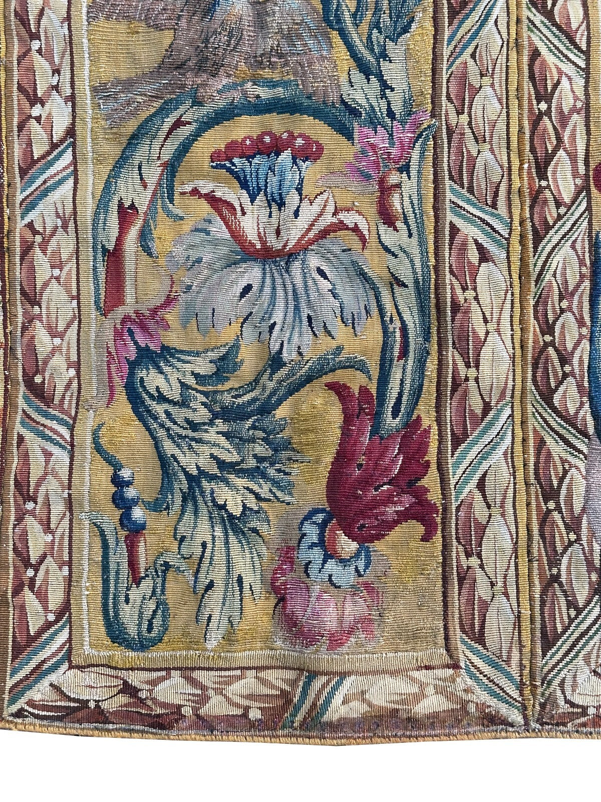 "This is an extremely fine Authentic Antique French Beauvais Tapestry from early 18th. century in Silk. This piece is truly a magnificent piece of art with artistic drawings of angles, birds and exotic flowers.. It is a very elegant tapestry with intricate flowers. One of the finest pieces we have come across in 40 years!-DCR