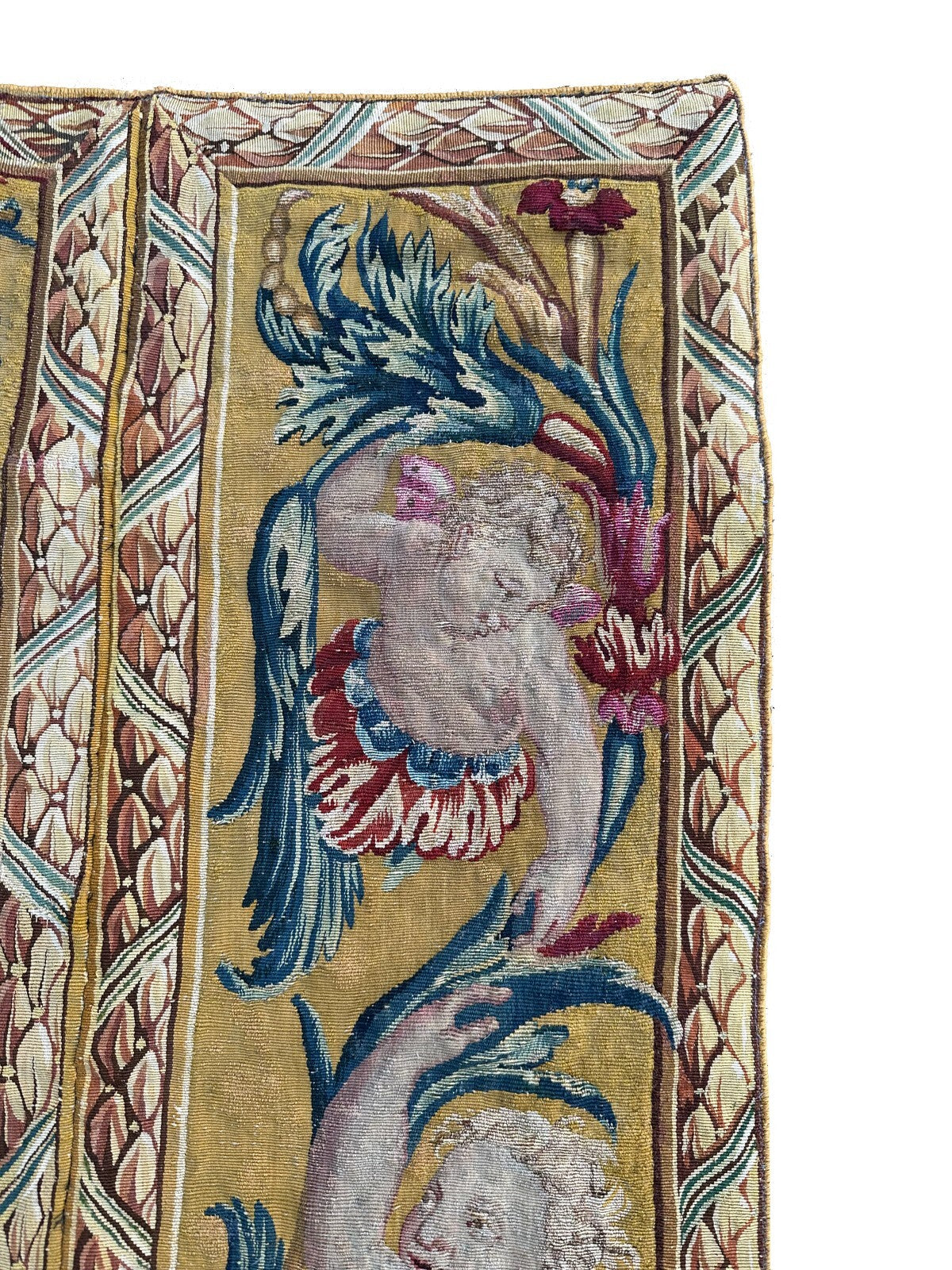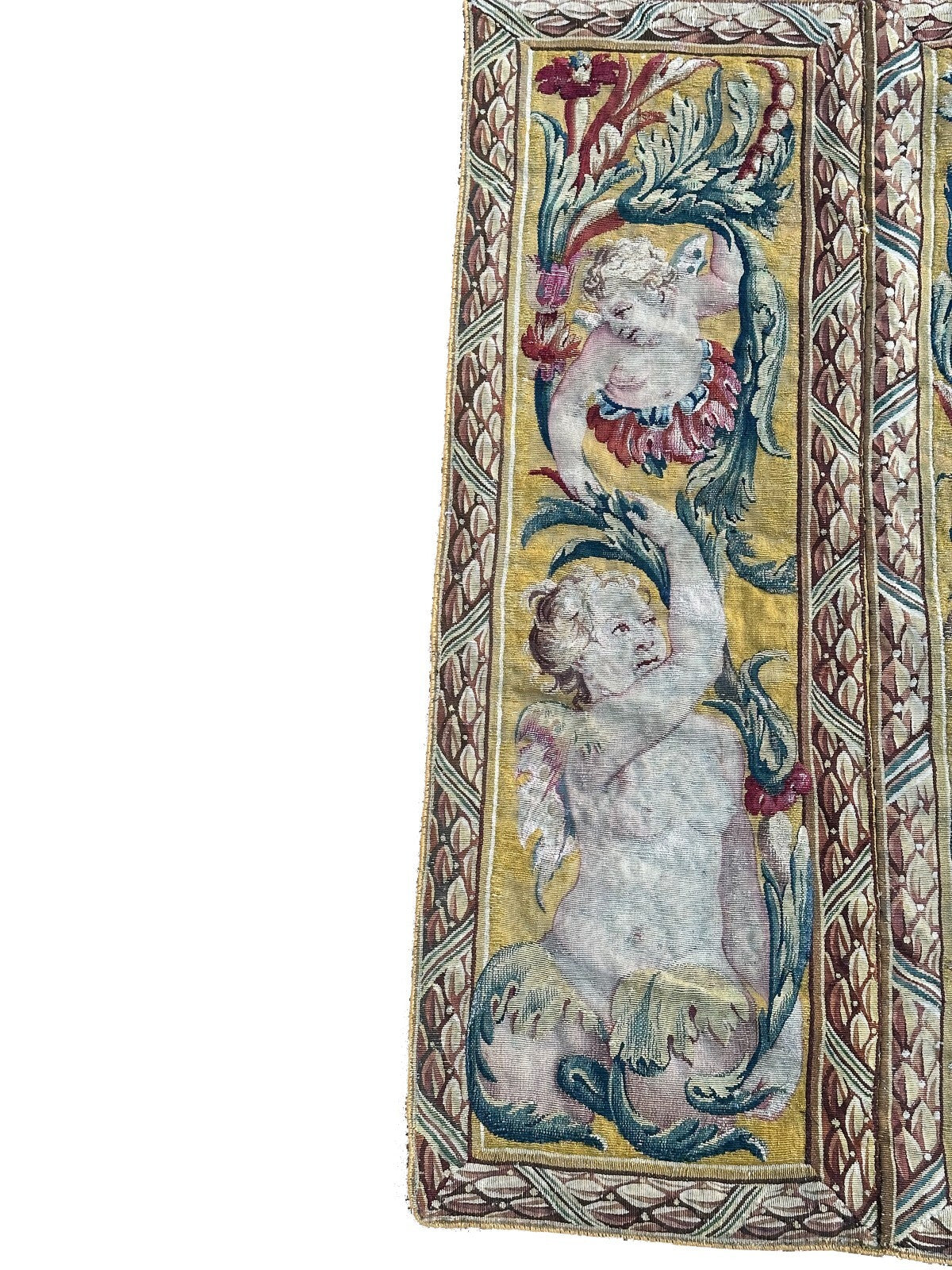 "This is an extremely fine Authentic Antique French Beauvais Tapestry From early 18th. century in Silk. This piece is truly a magnificent piece of art with artistic drawings of Angles, Birds and exotic flowers.. It is a very elegant tapestry with intricate flowers. One of the finest pieces we have come across in 40 years!. This early 1700's piece romanticized image of the era of Louis XVI-style. The work is a French Beauvais. True Masterpiece.