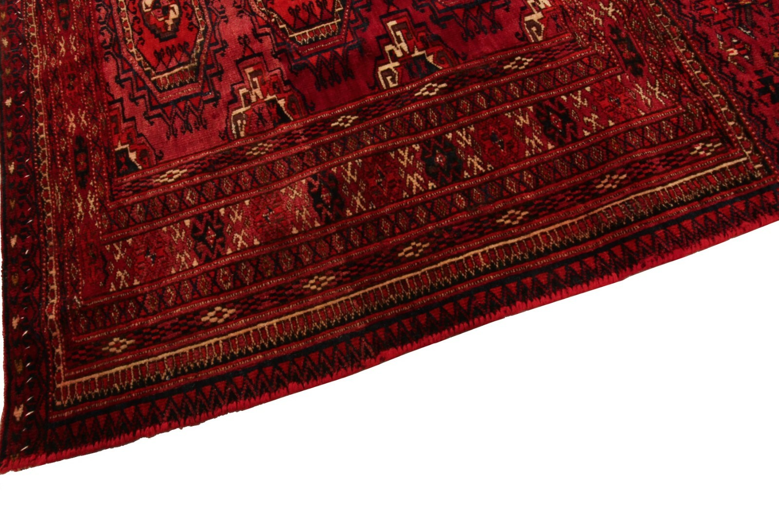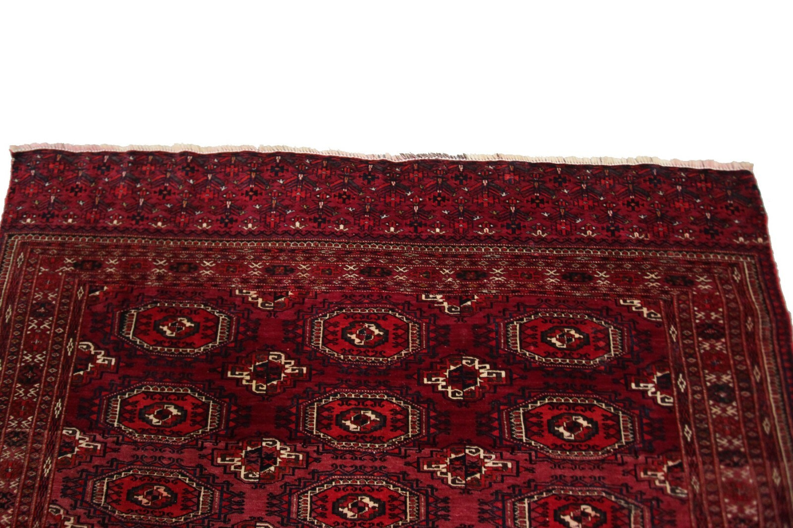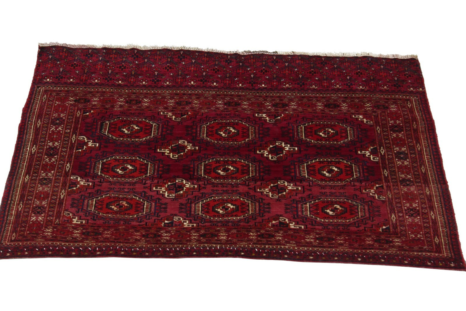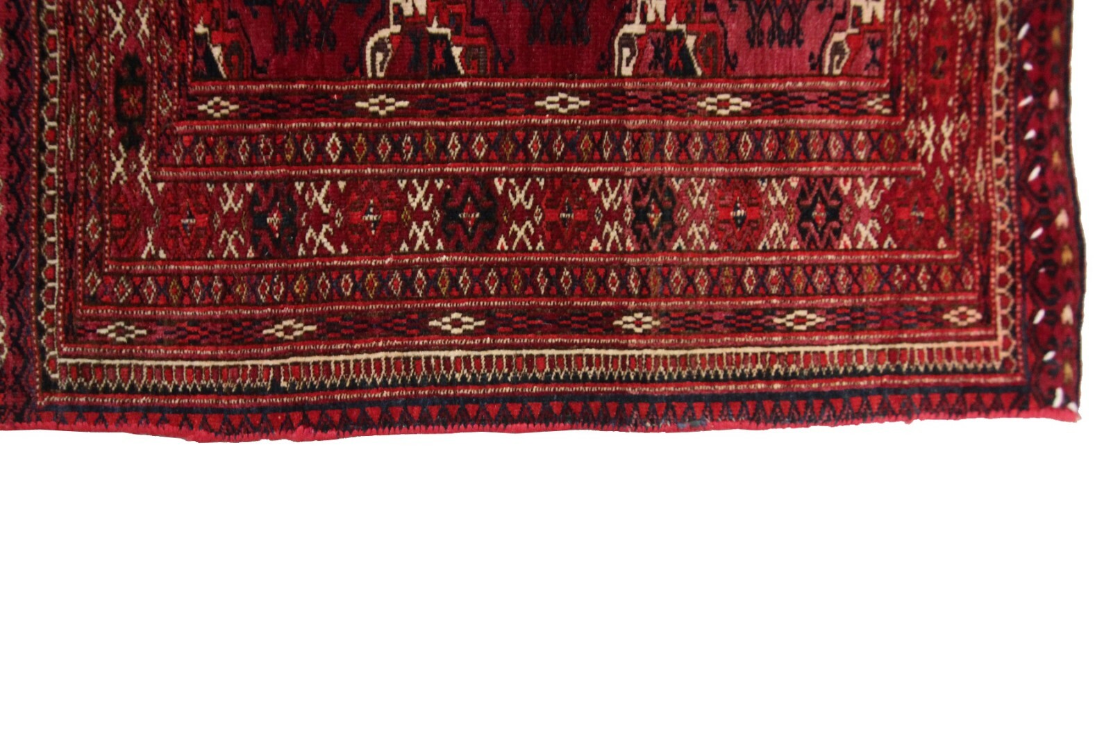 Generic Turkomen patterns are predominantly geometric in design. Quite many variations of the red color are characteristic of the Turkomen weaving.