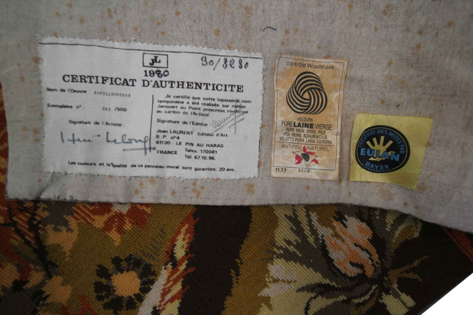 Vintage French Tapestry Handmade Tapestry Herve Lelong Signed