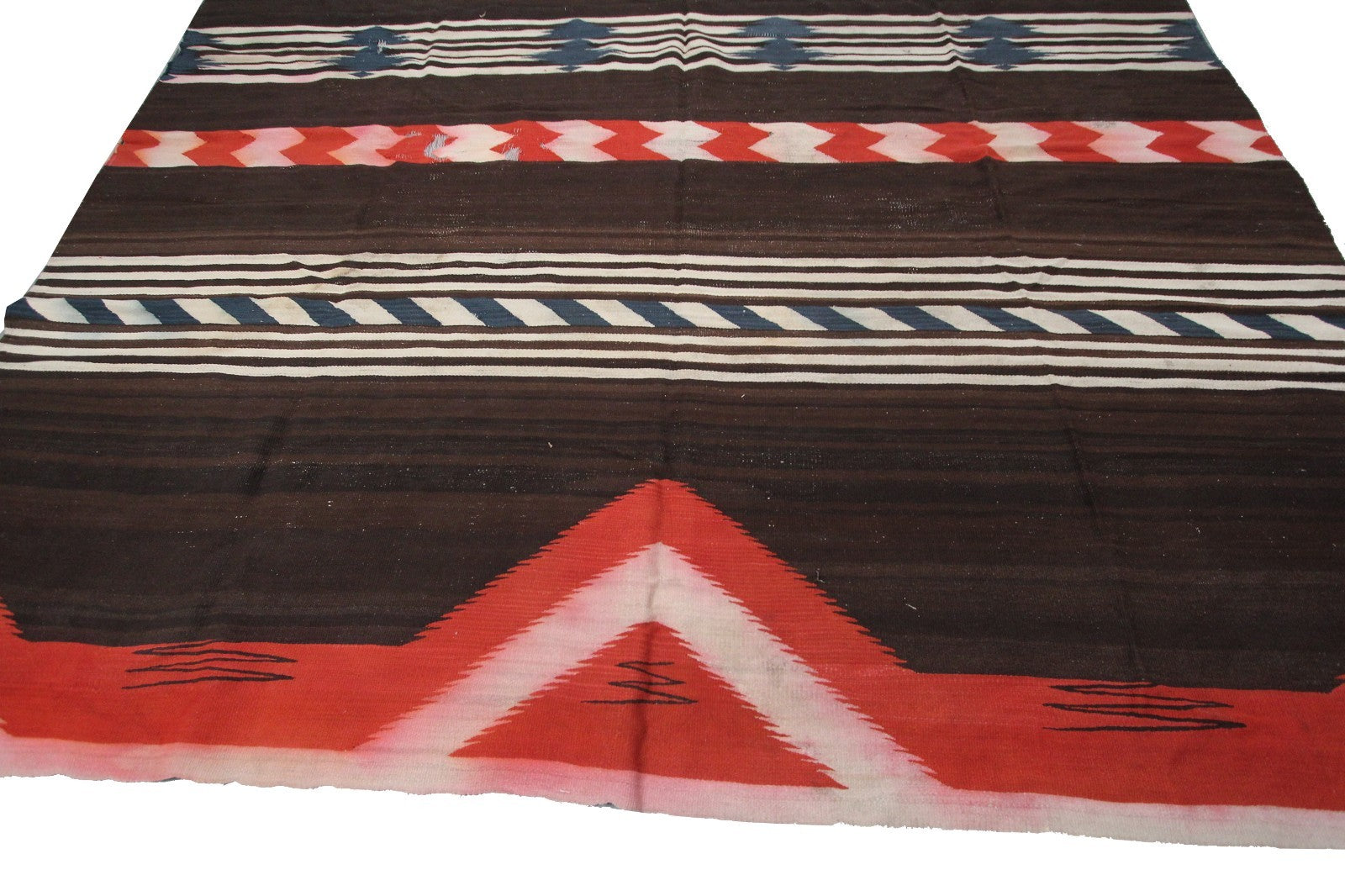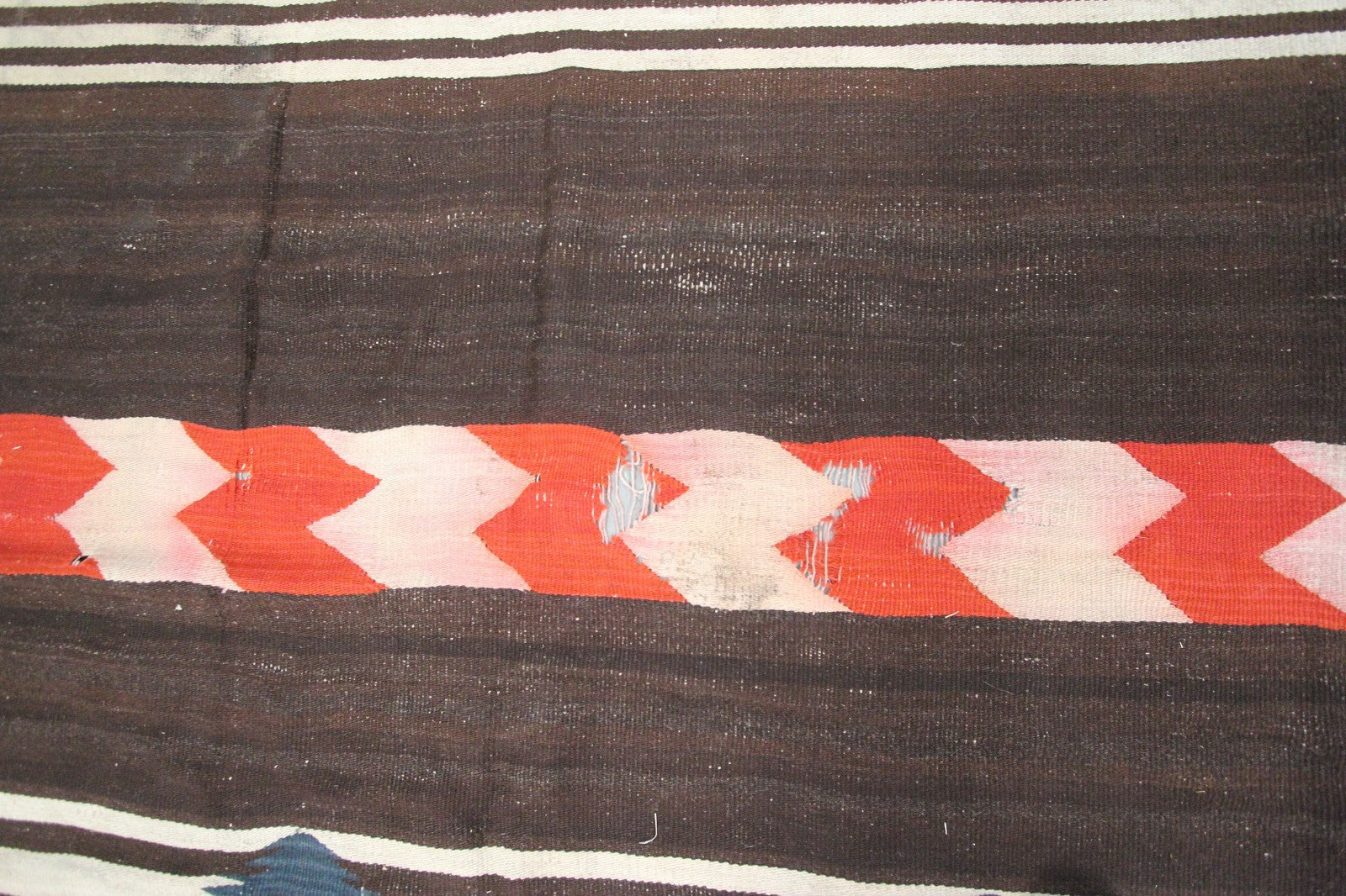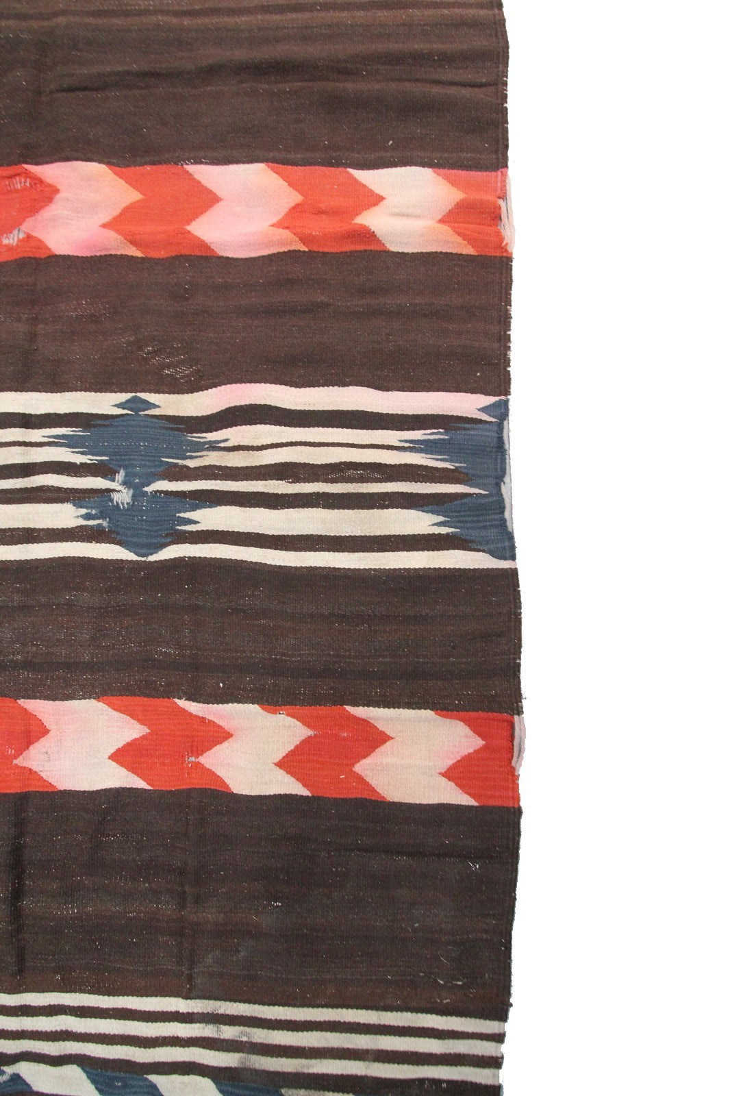 Antique Navajo Weave Brown Red Stripe Tapestry Rug