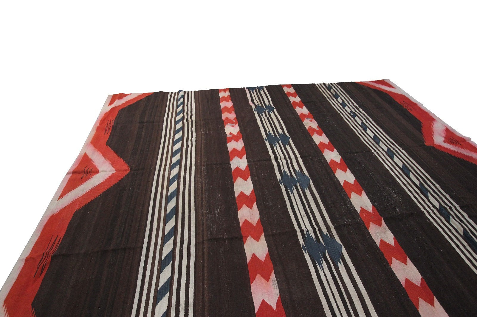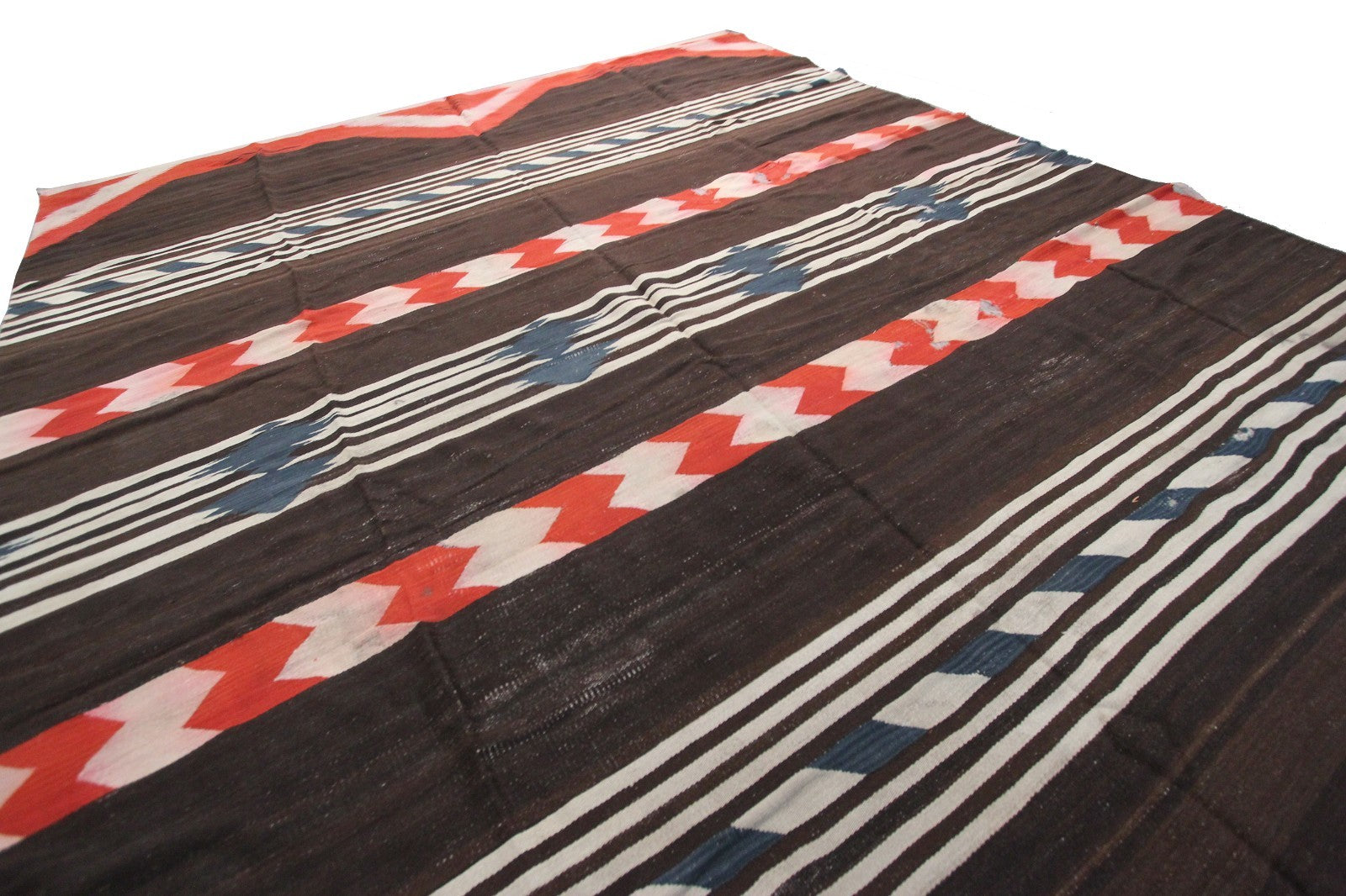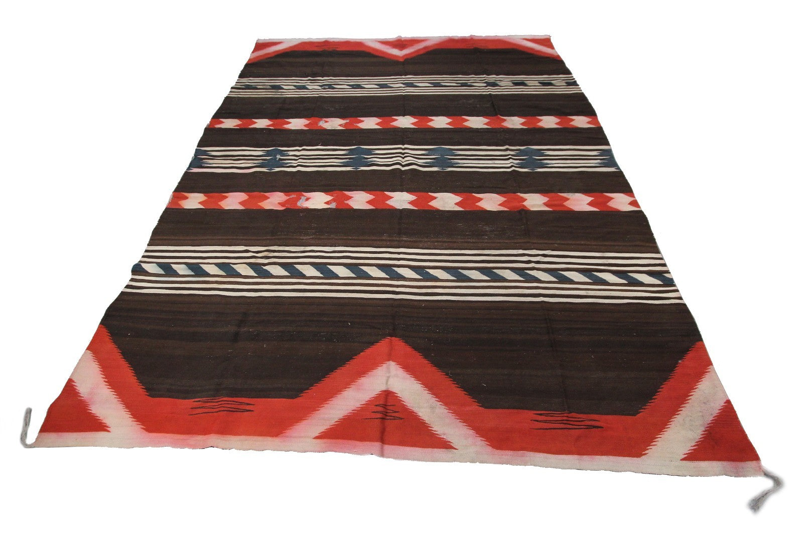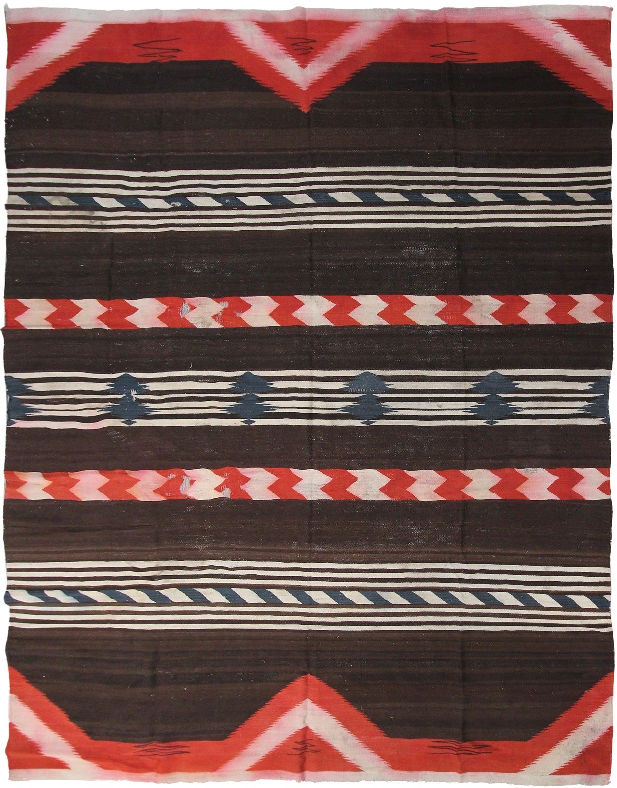 Antique Navajo Weave Brown Red Stripe Tapestry Rug