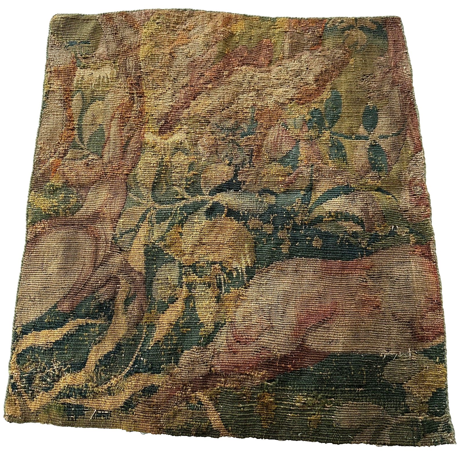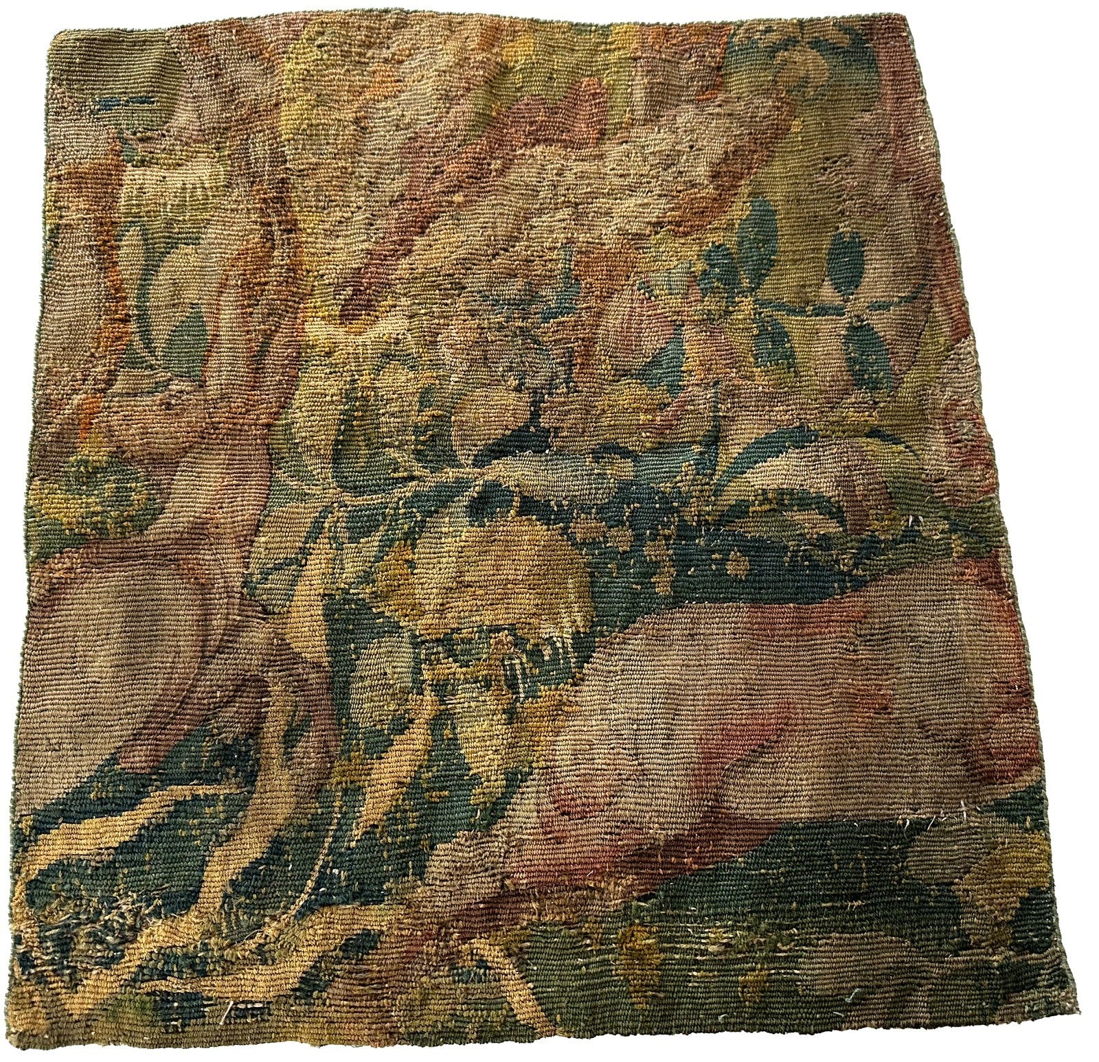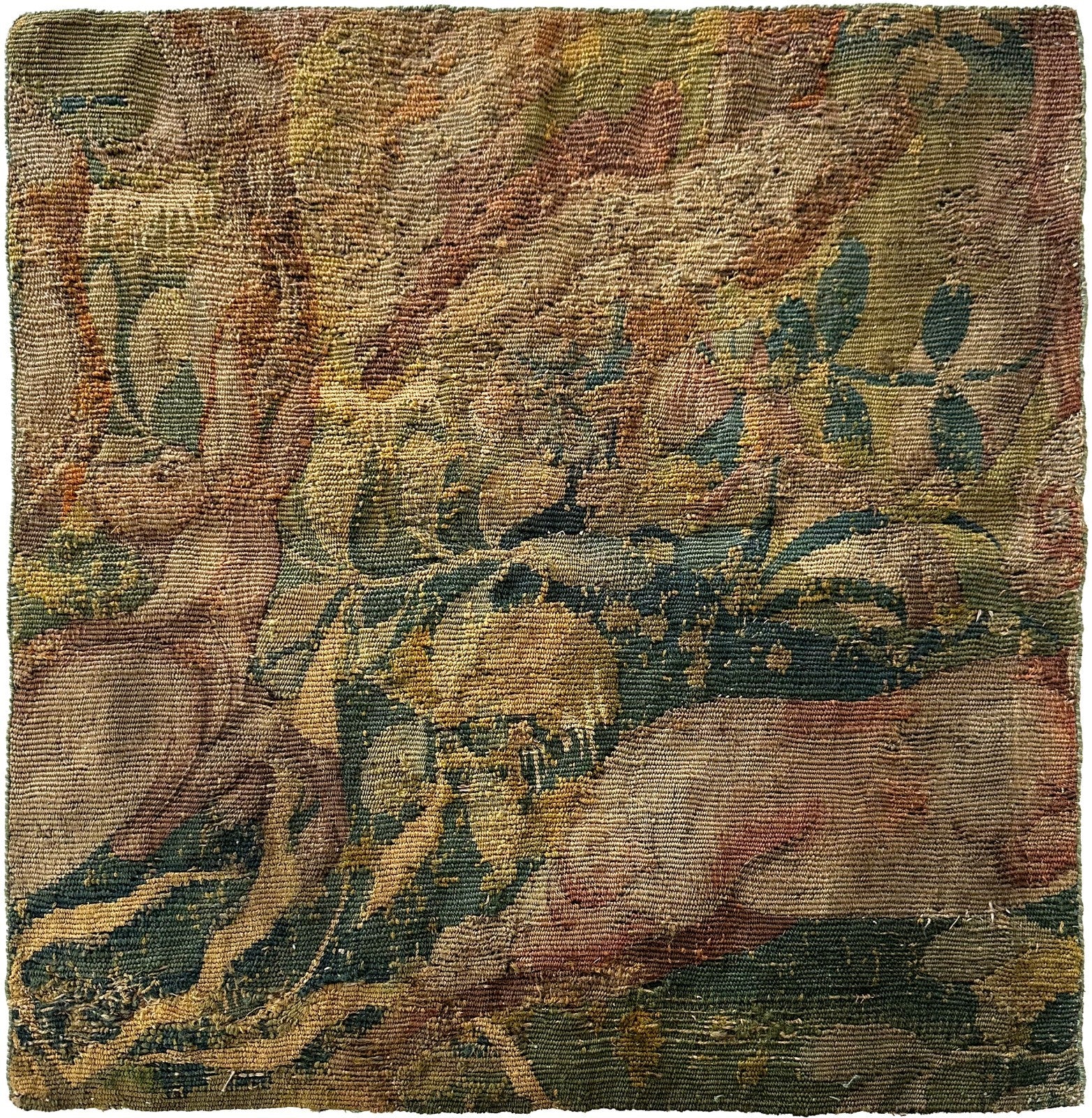 Antique Flemish Verdure Tapestry Abstract Animals 46cmx48cm Fragment