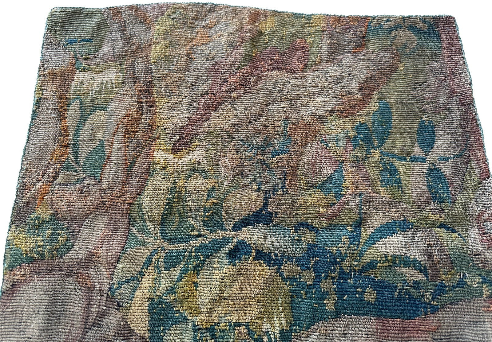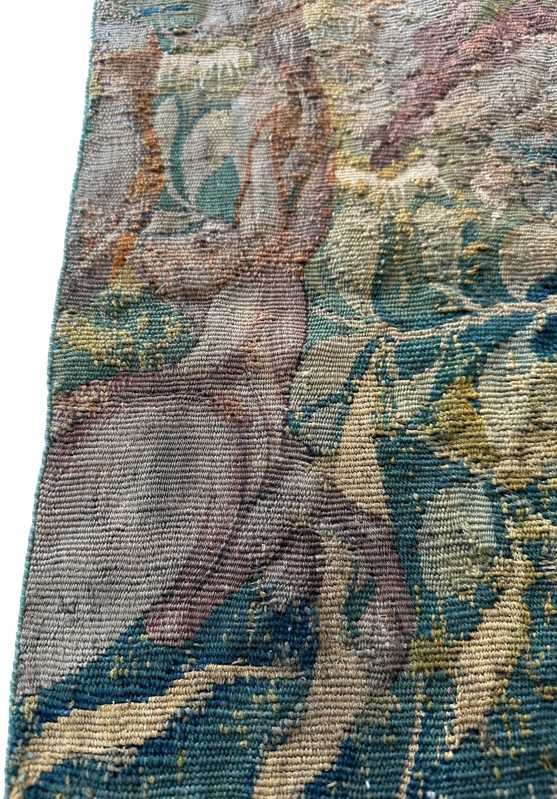 "This is a rare authentic Antique Flemish Tapestry fragment made from wool. It is depicting abstract animals"-DCR