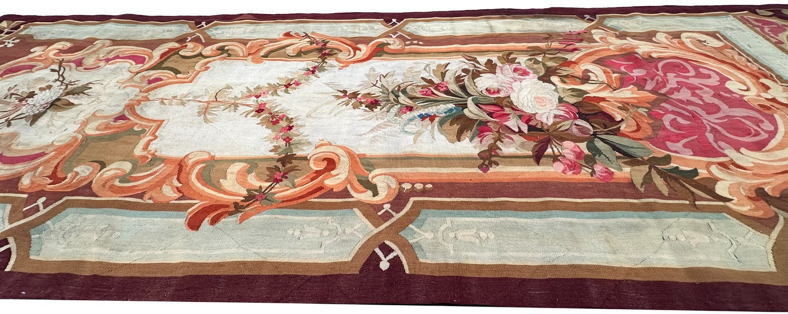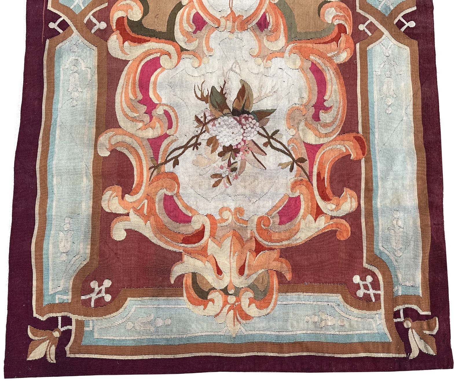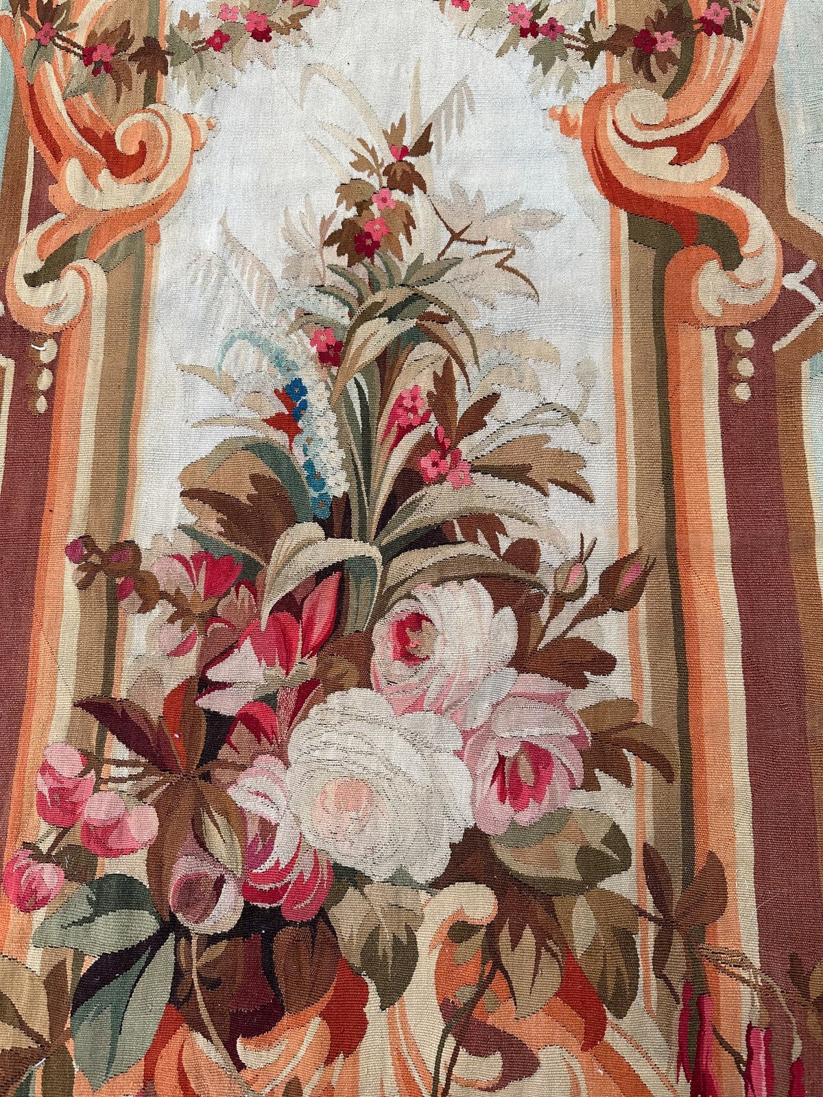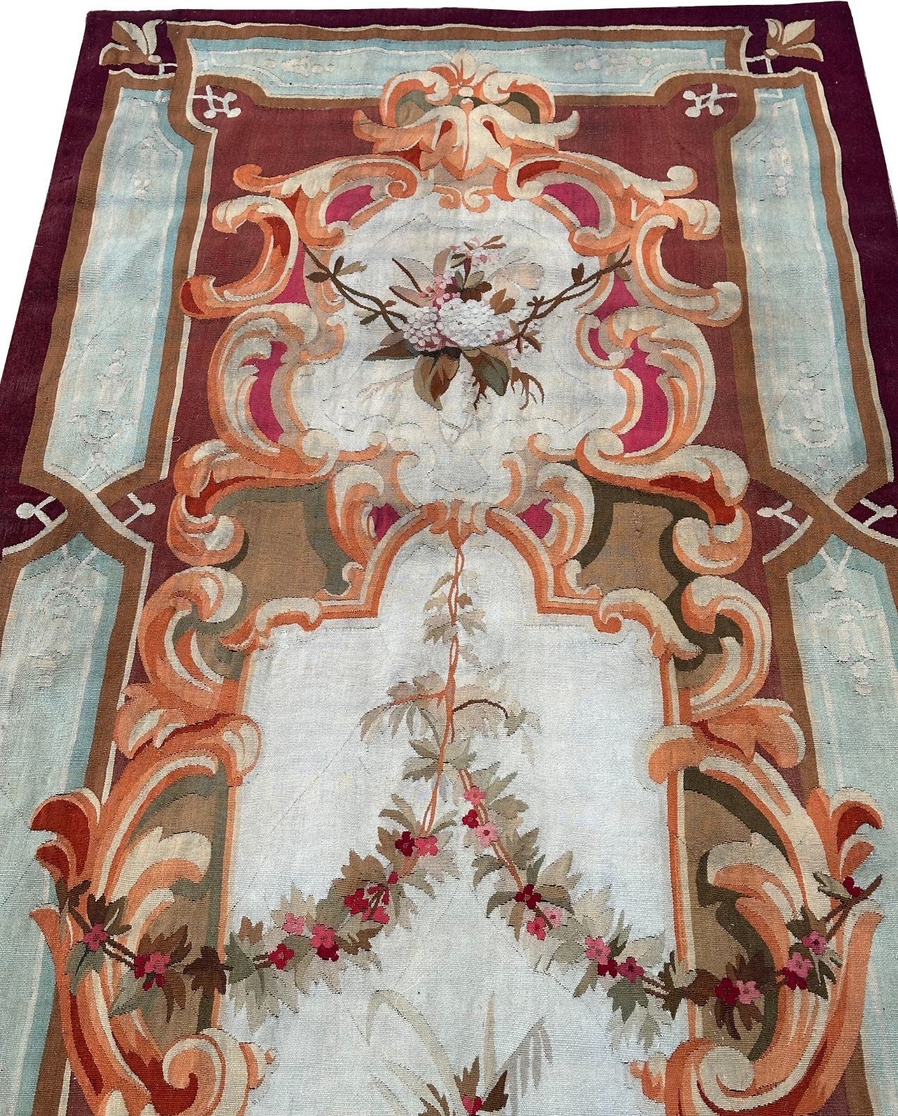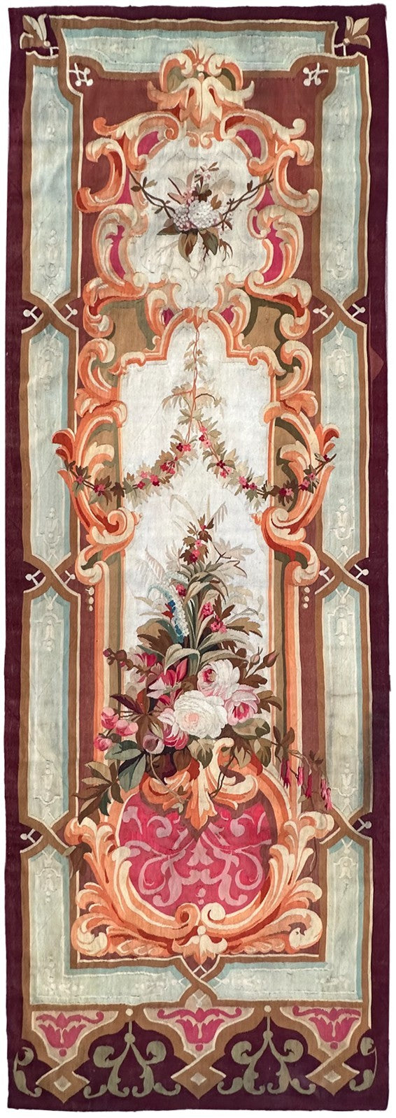 1920 Antique French Aubusson Tapestry Rug Floral Vase Runner