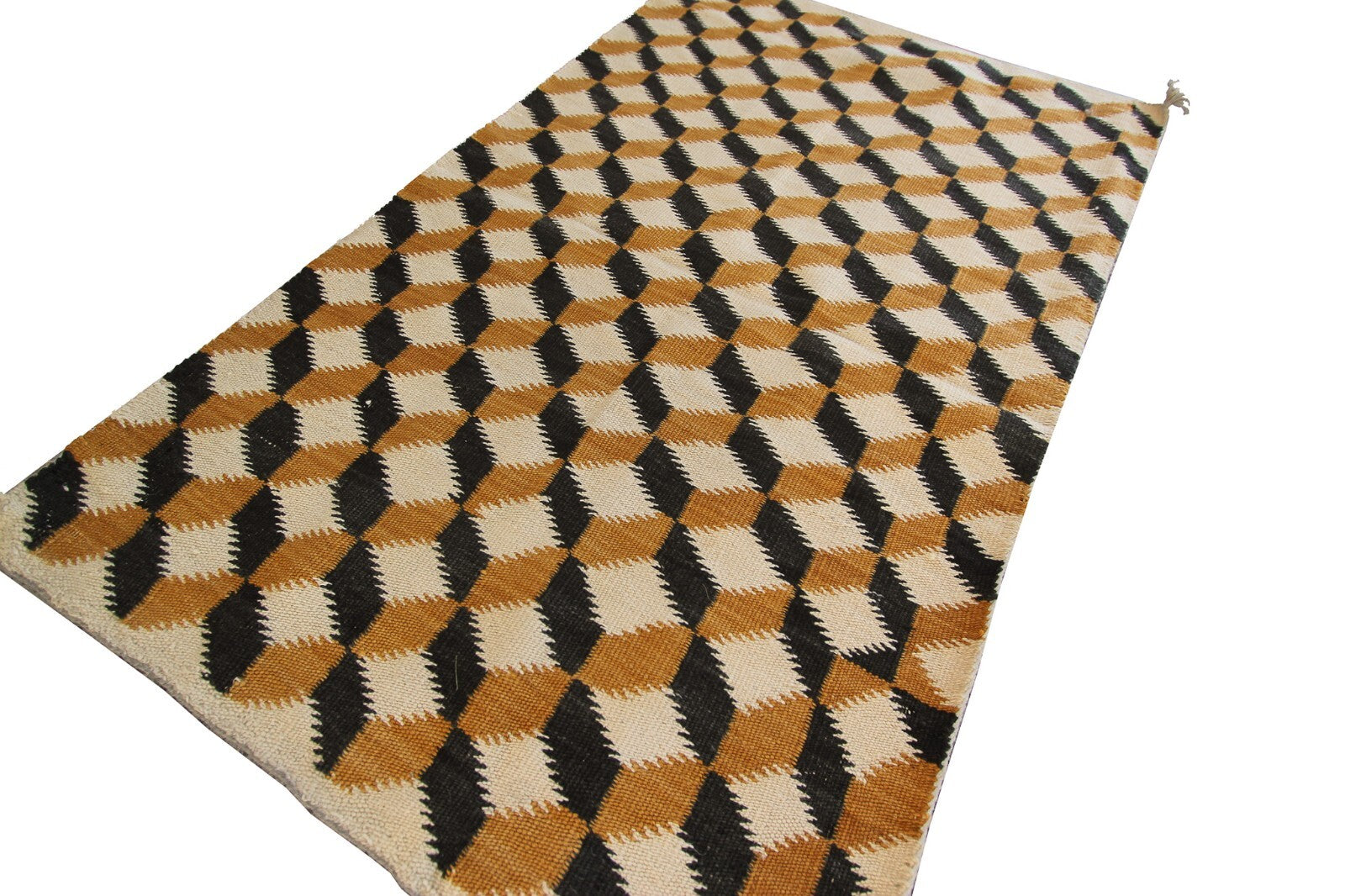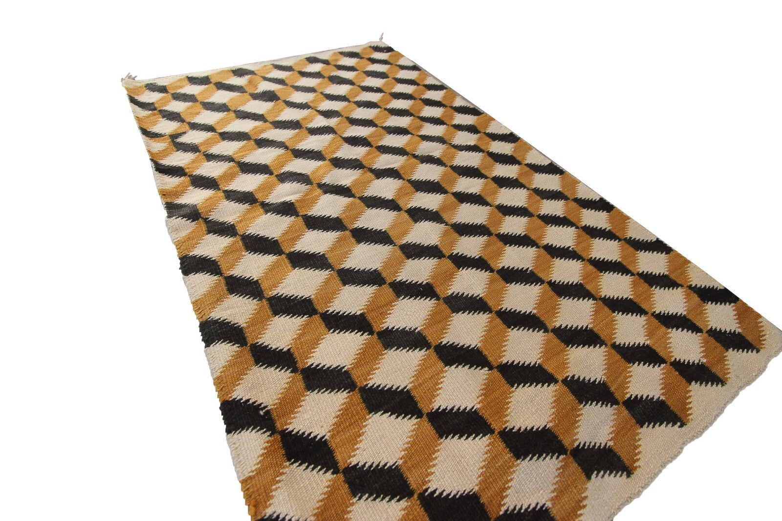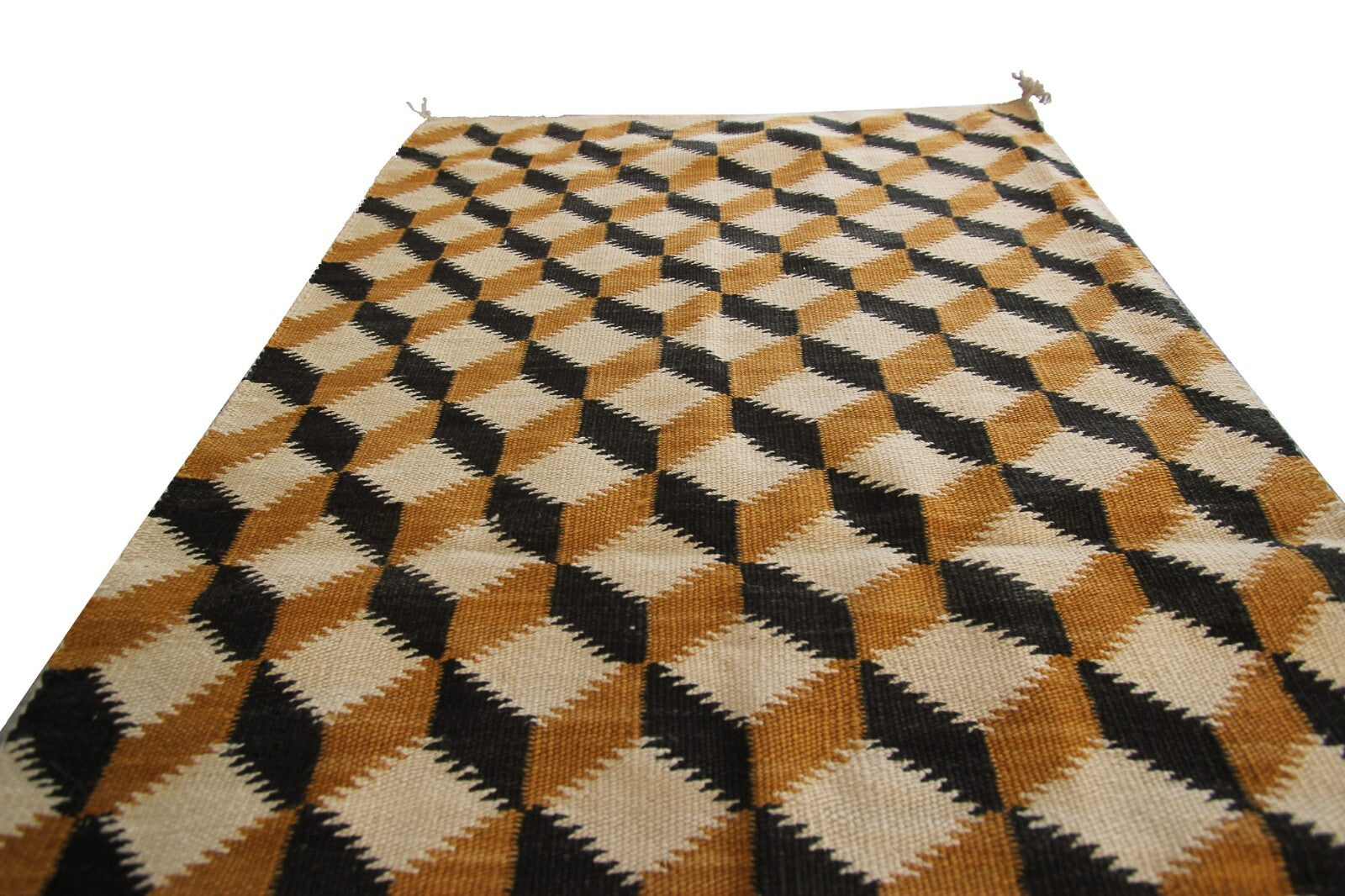 Antique Navajo Rug Flatwoven Geometric Optical Illusion Handwoven 2x3 Tapestry