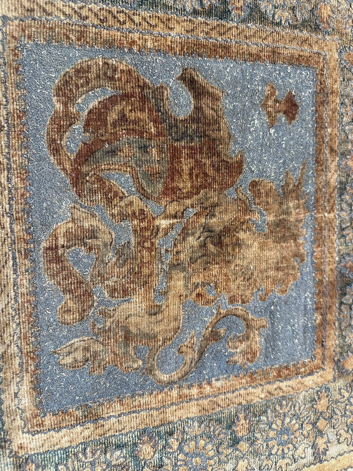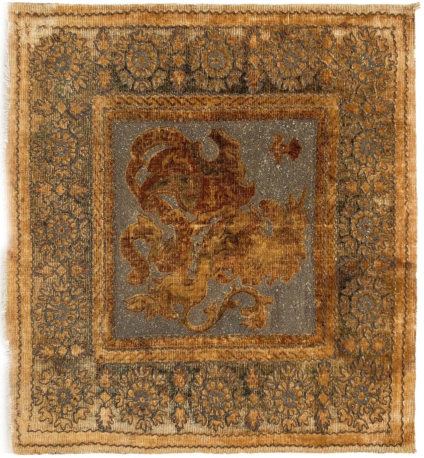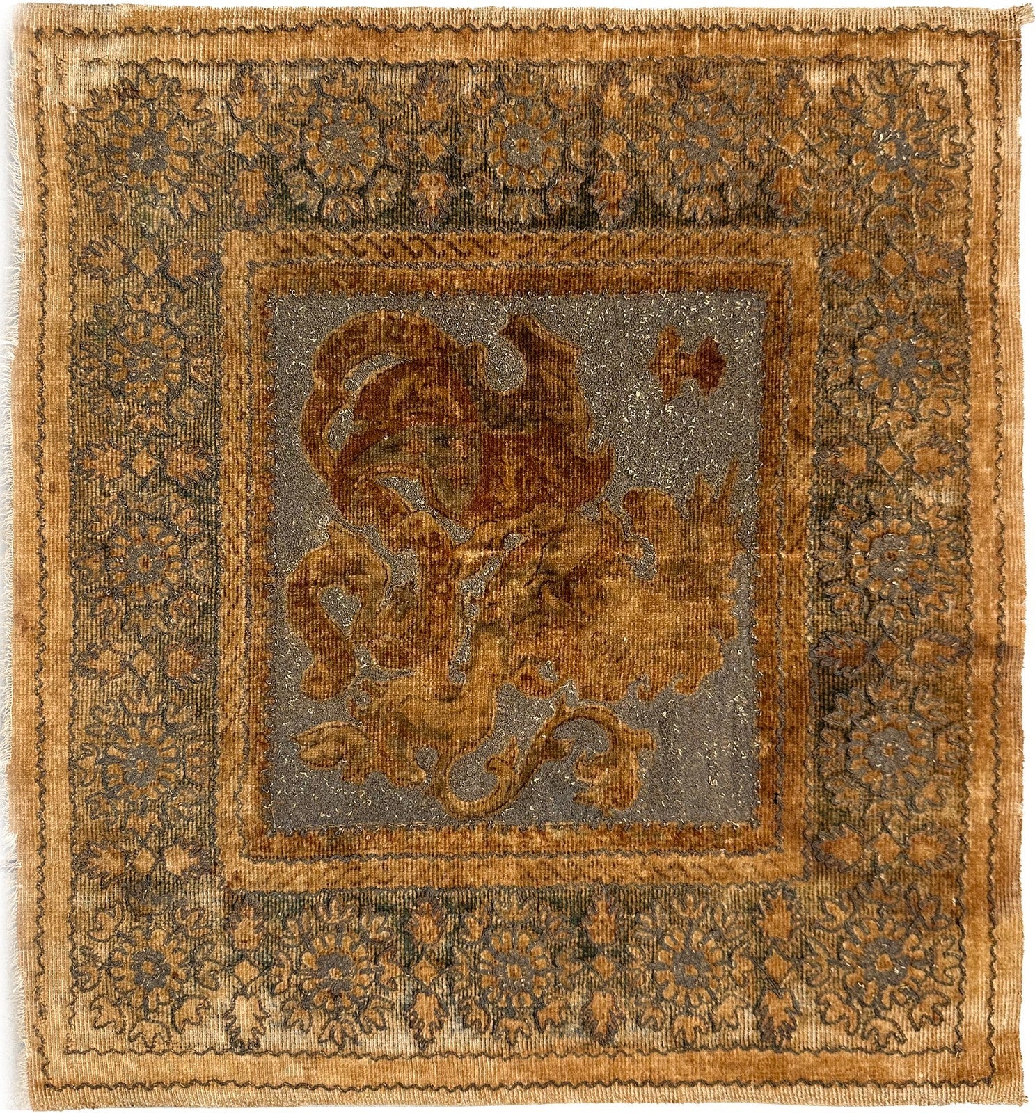 "This is a beautiful Antique Ottoman Tapestry. This magnificent silk and metallic-thread woven textile has rich aged character, an ornate floral-medallion Bird design, and a warm antique palette. It’s a superb decorative piece!" - DCR