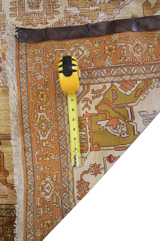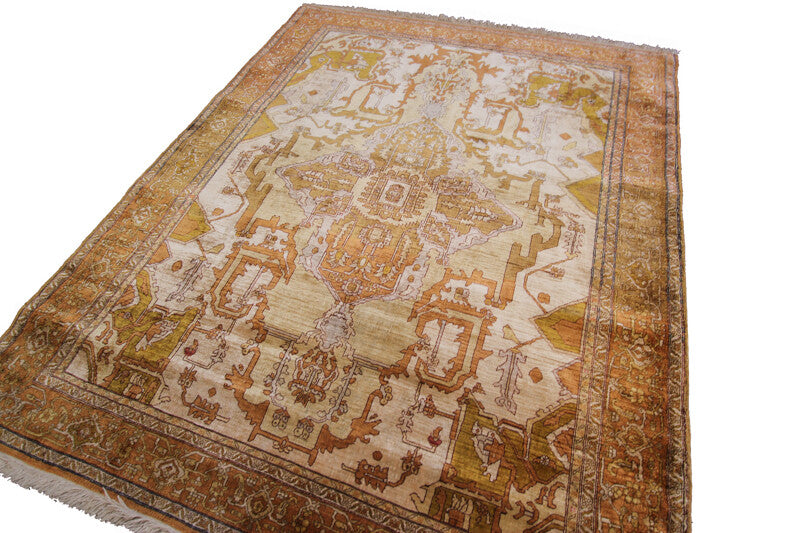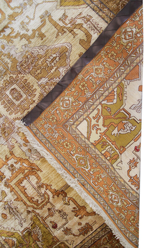 Rare Antique Silk Serrapi Rug Fine Ivory Gold 4x5 Herriz Rug 100% Silk
