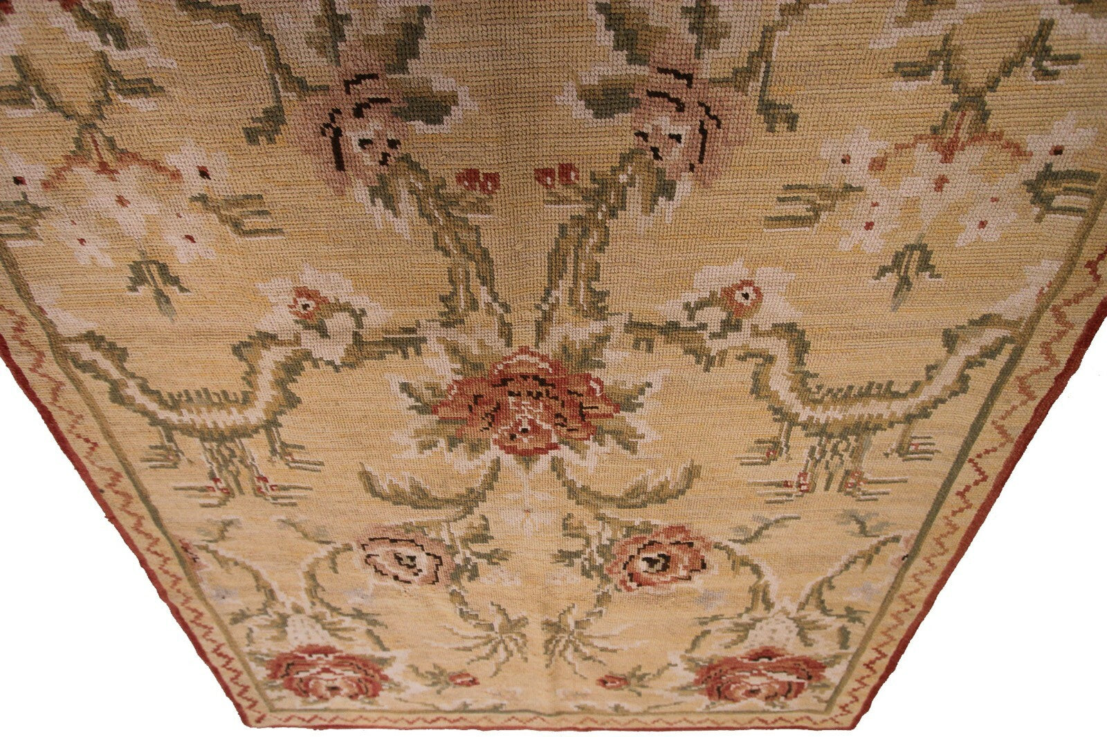 "Beautiful vintage European needlepoint tapestry in a soft colorway and easy allover design. Will work well in almost any room!"