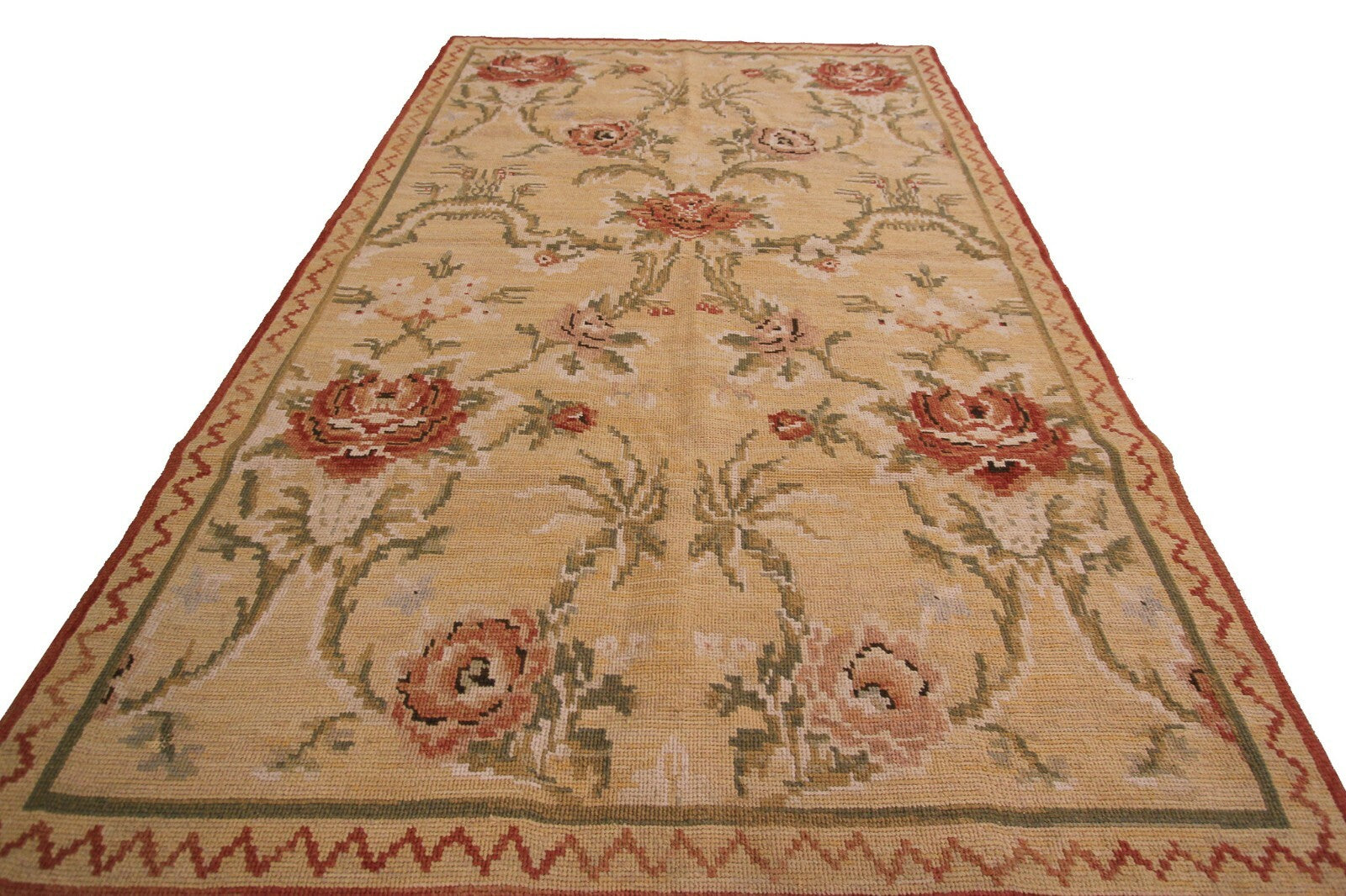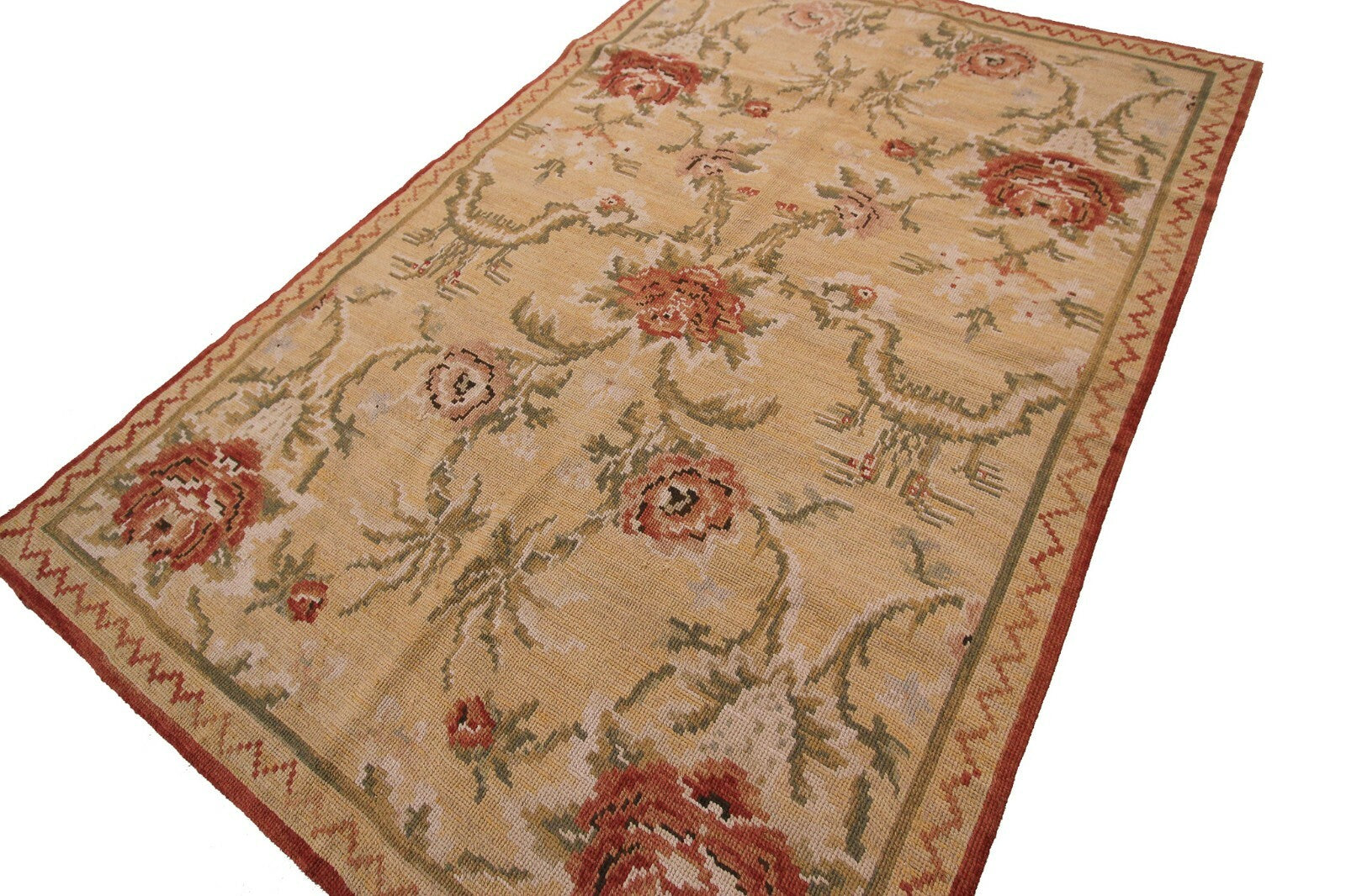 Vintage Tapestry European Needlepoint Beige 4x6 Tapestry 1960 Allover Geometric