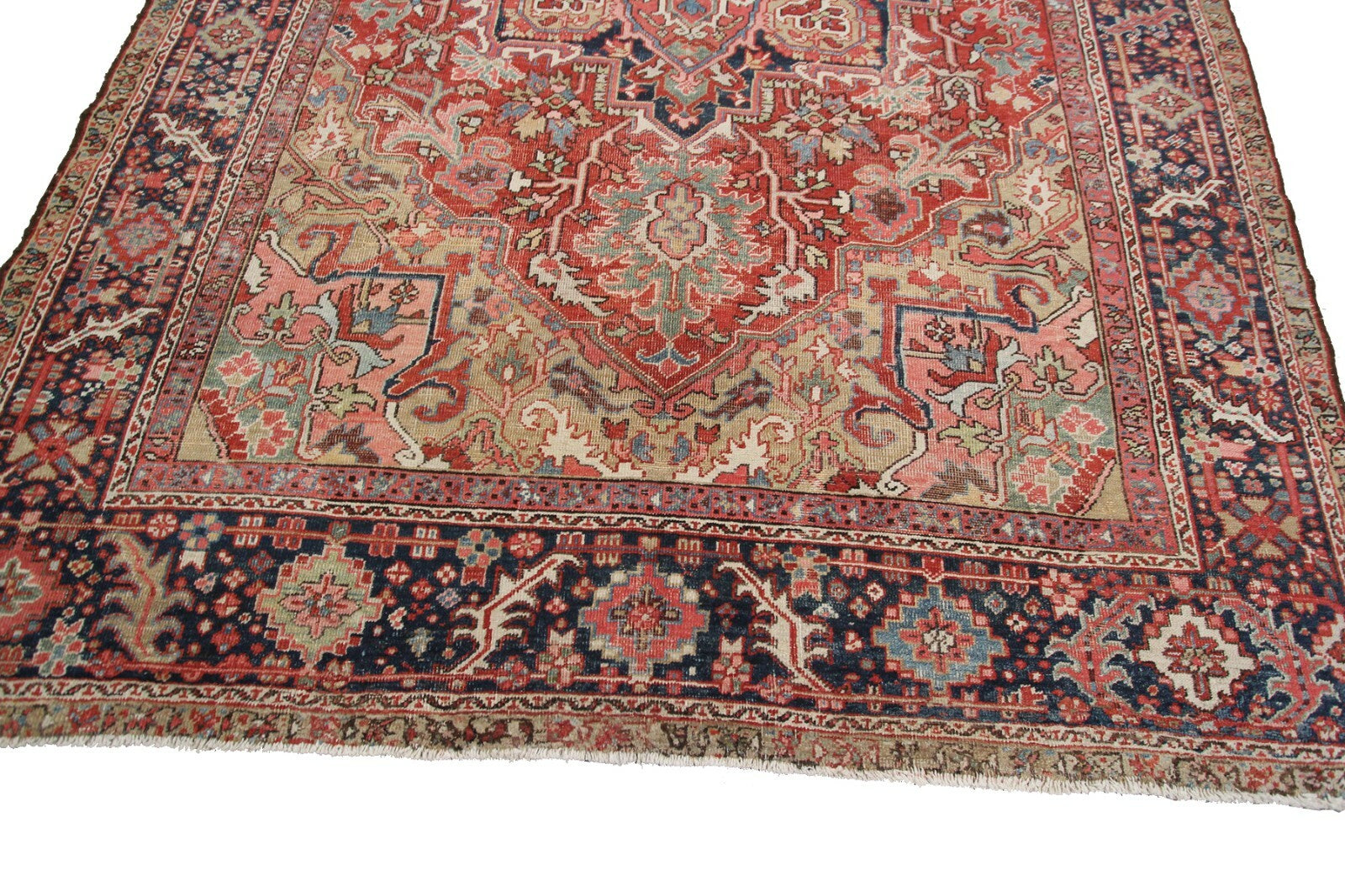 Heriz rug weavers often make them in geometric, bold patterns with a large medallion dominating the field. Such designs are traditional and often woven from memory.