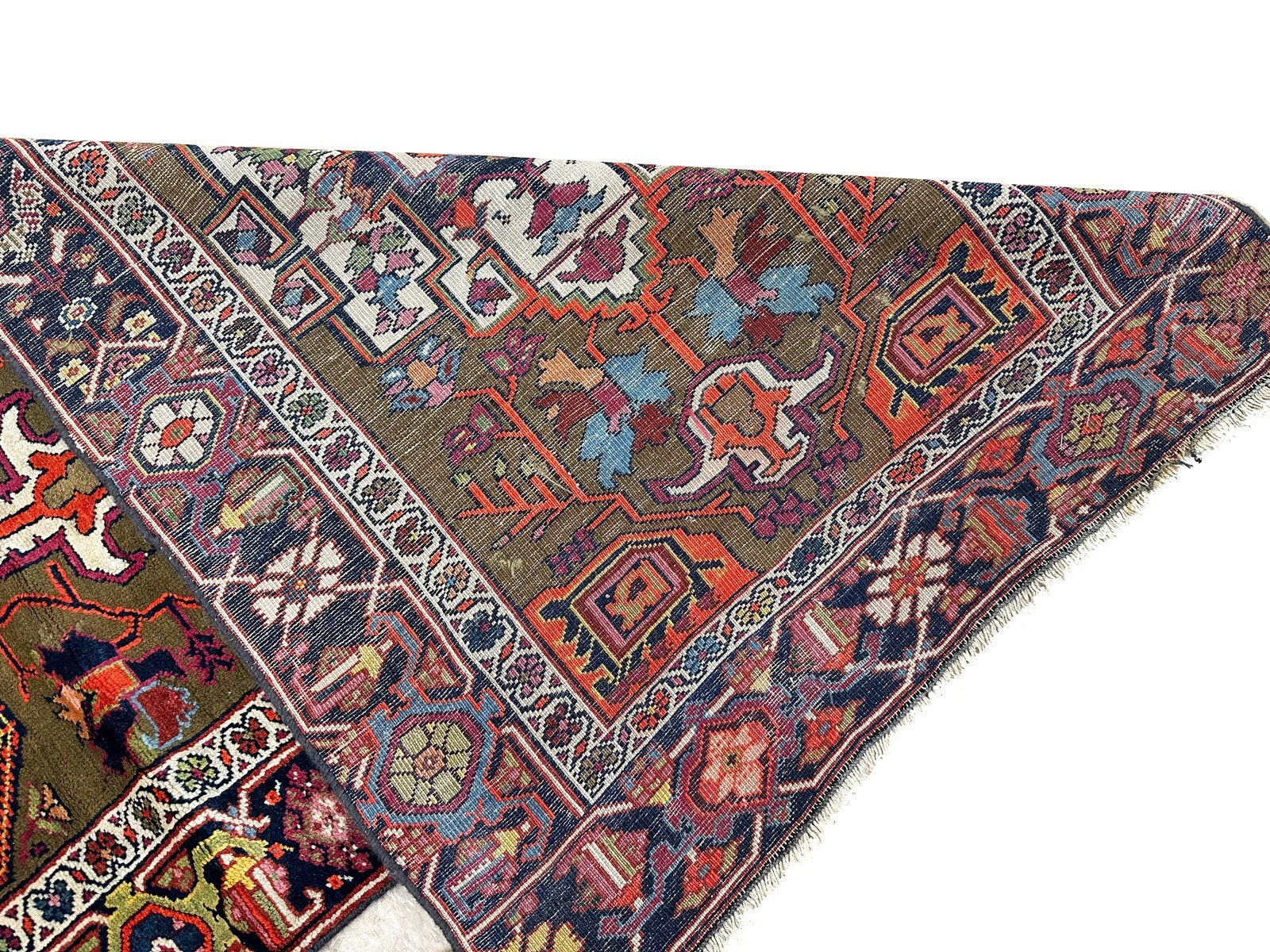 "This is a decorative antique Heriz Serapi. This piece has a geometric design and has been professionally cleaned and is in fantastic condition. The cold climate helps nurture strong, quality sheep's wool. Because of this, Heriz Serapi rugs are often considered among the most durable antique rugs ever made."-DCR