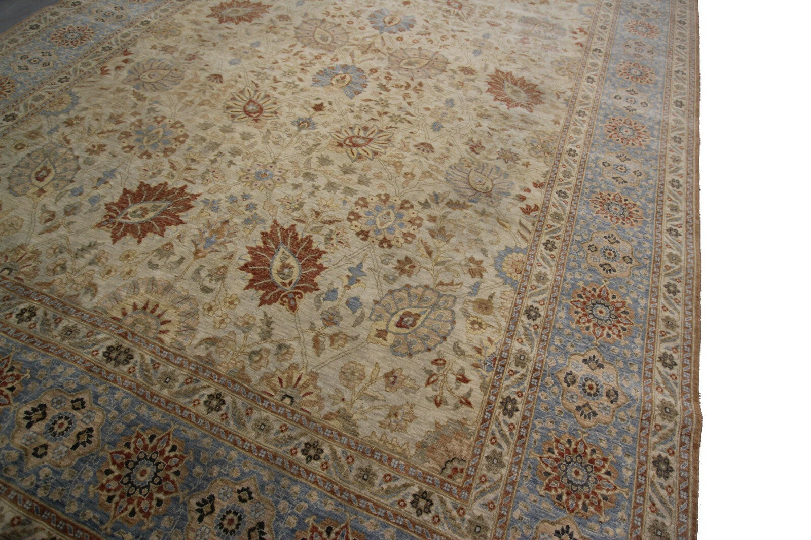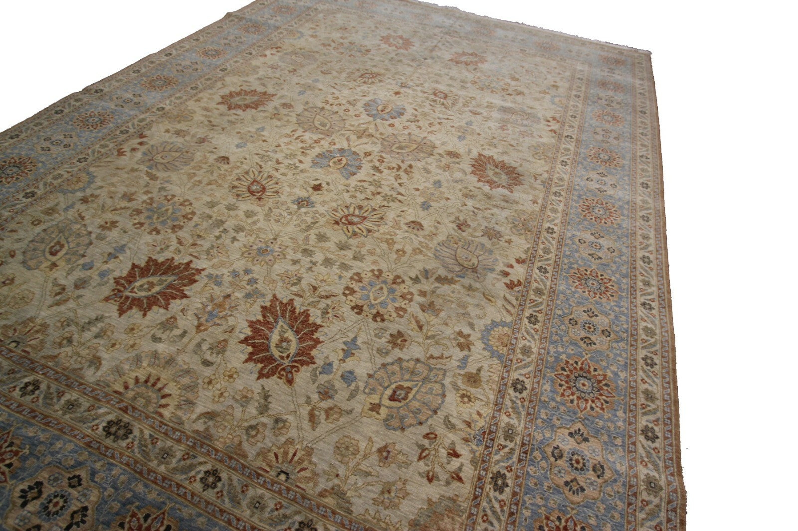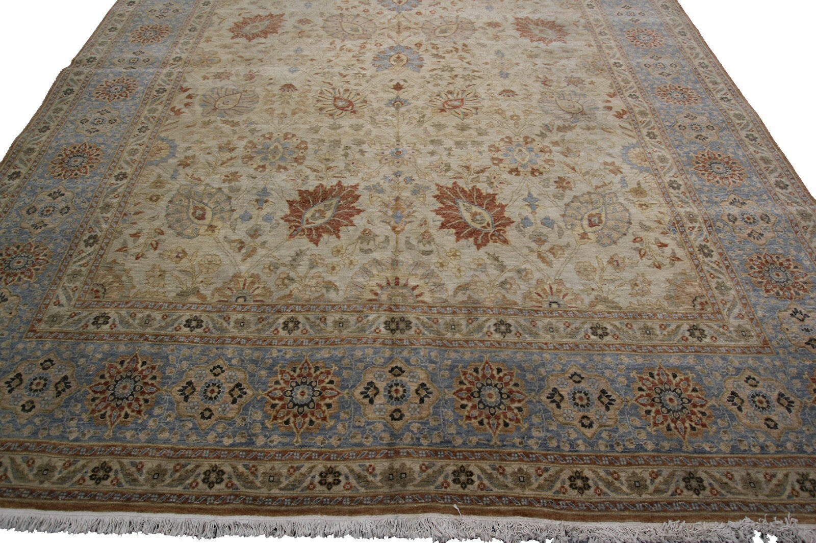 10x14 Vintage Oushak Rug Mahal Blue Rug Handmade Vintage Rug Area Rug Beige Blue