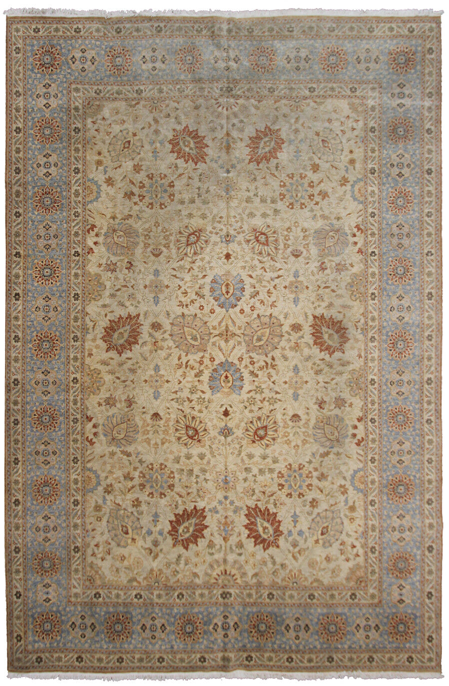 "Gorgeous vintage Oushak in a stunning colorway. Soft Olive-y beige mixed a blue border and the same hints of blue and mauve throughout. Beautiful, fine piece with easy to work with colors."-DCR