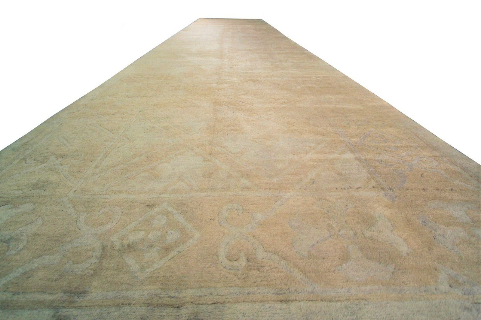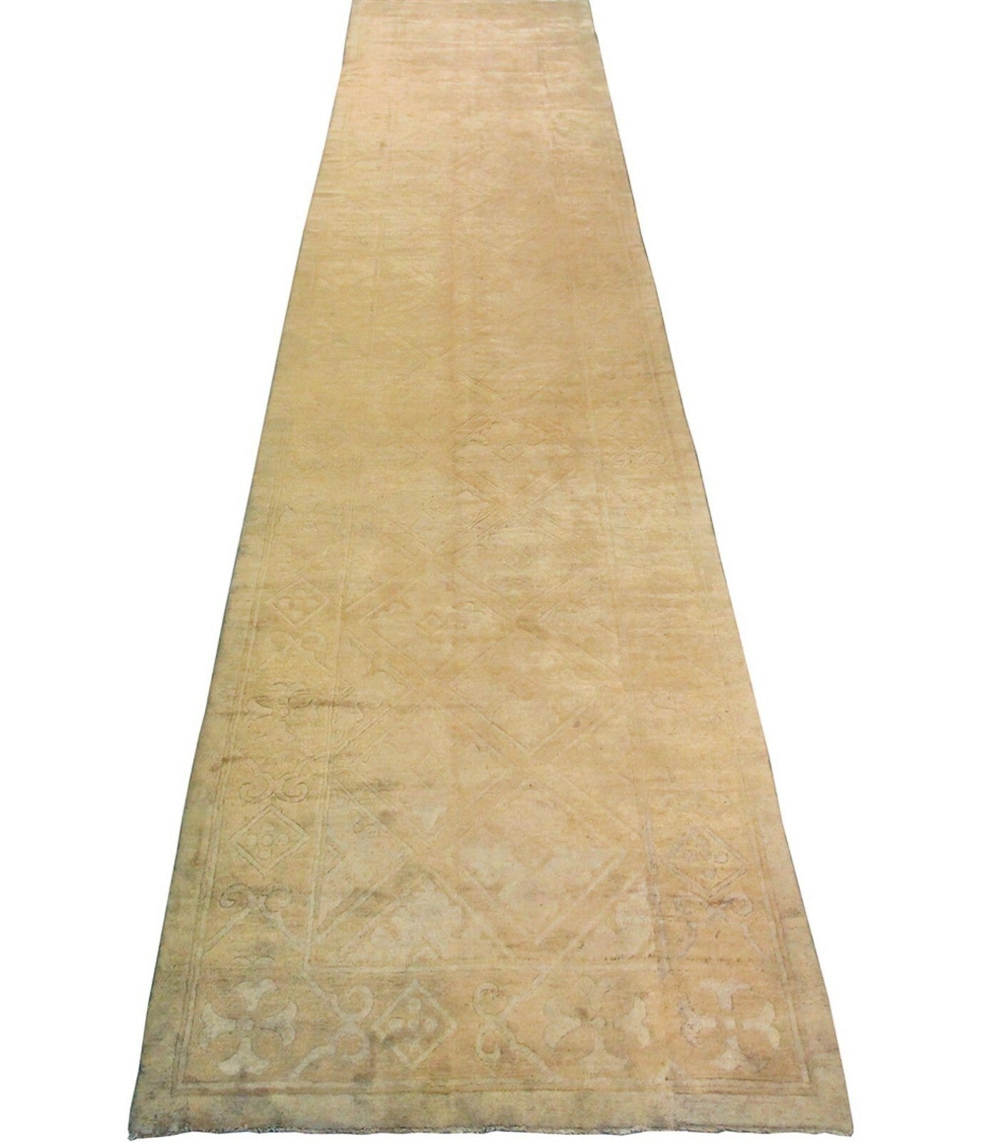 Antique Oushak Art Deco Runner Rug Geometric Gold Beige