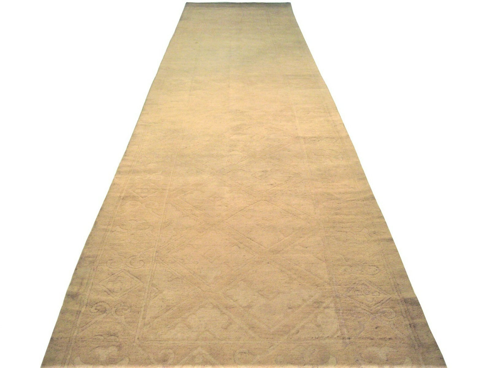 "THIS RUG IS EXQUISITE!!! Antique Oushak runner Gallery rug with a beautiful geometric architectural design. The fine weave and the fantastic tone-on-tone palette make this rare size runner rug a true show piece! This incredible and unusual Antique piece is a fine example of the art of fine weaving- a Great Buy and a Fantastic piece to own!"- DCR