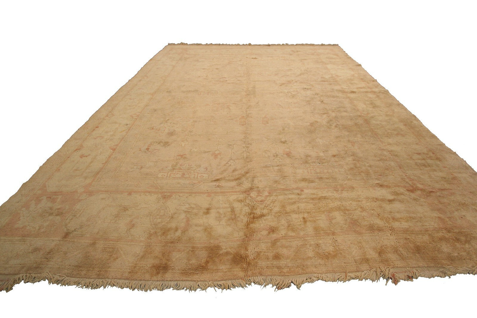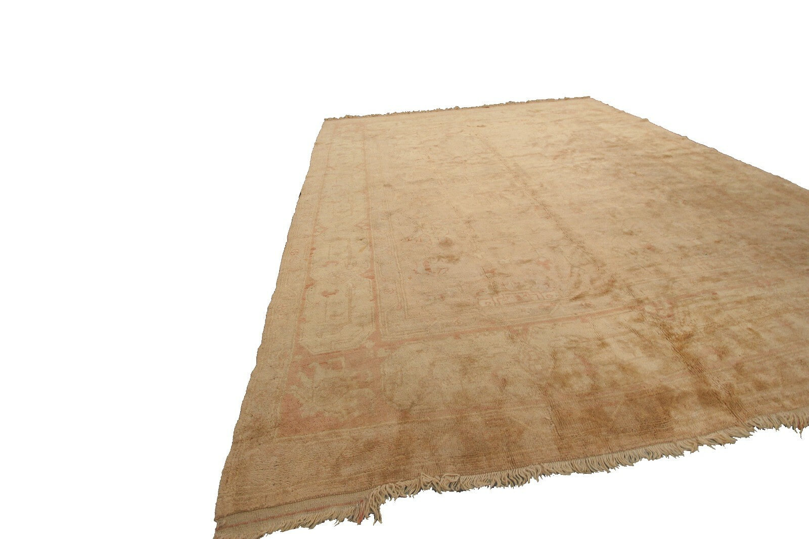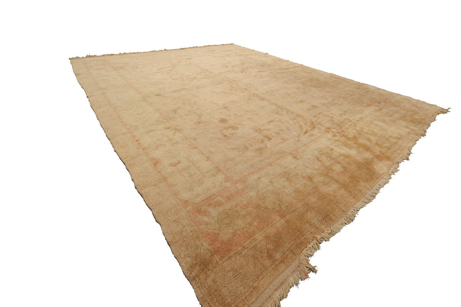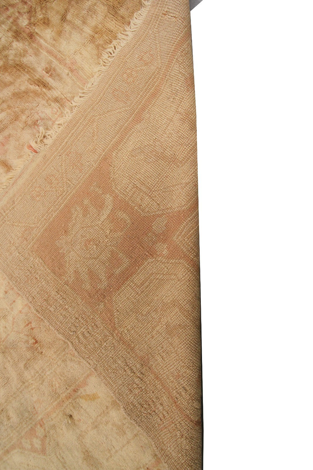 "This Oushak was acquired from a New Jersey Estate. This is a stunning vintage Angora Turkish Oushak rug from 1960's. This superb piece incorporates beautiful decorative colors with geometric designs. These are extremely durable rugs with wool foundation. It has been professionally cleaned and is ready to be used." -DCR