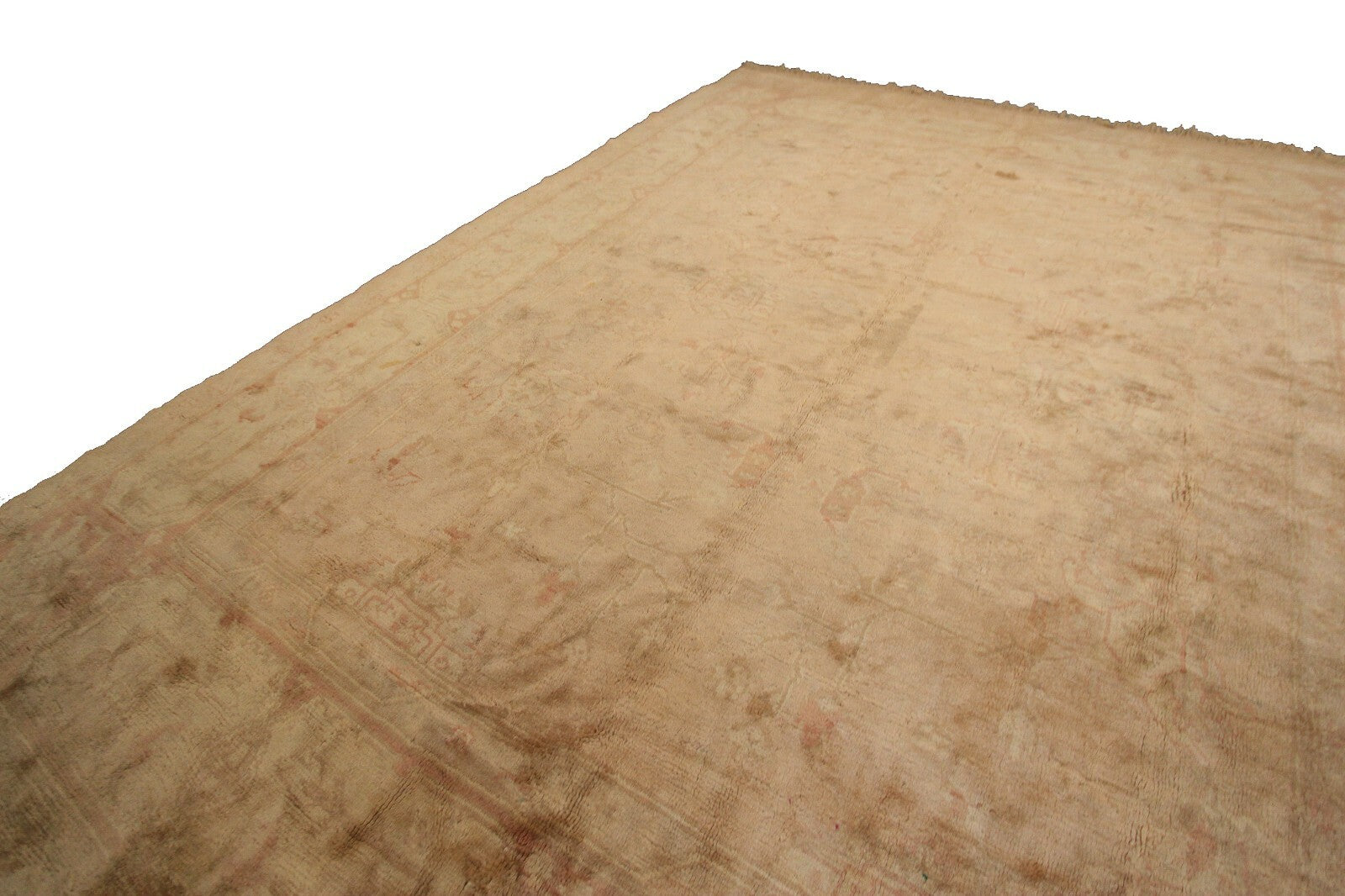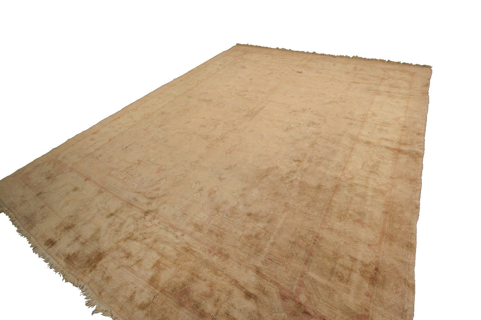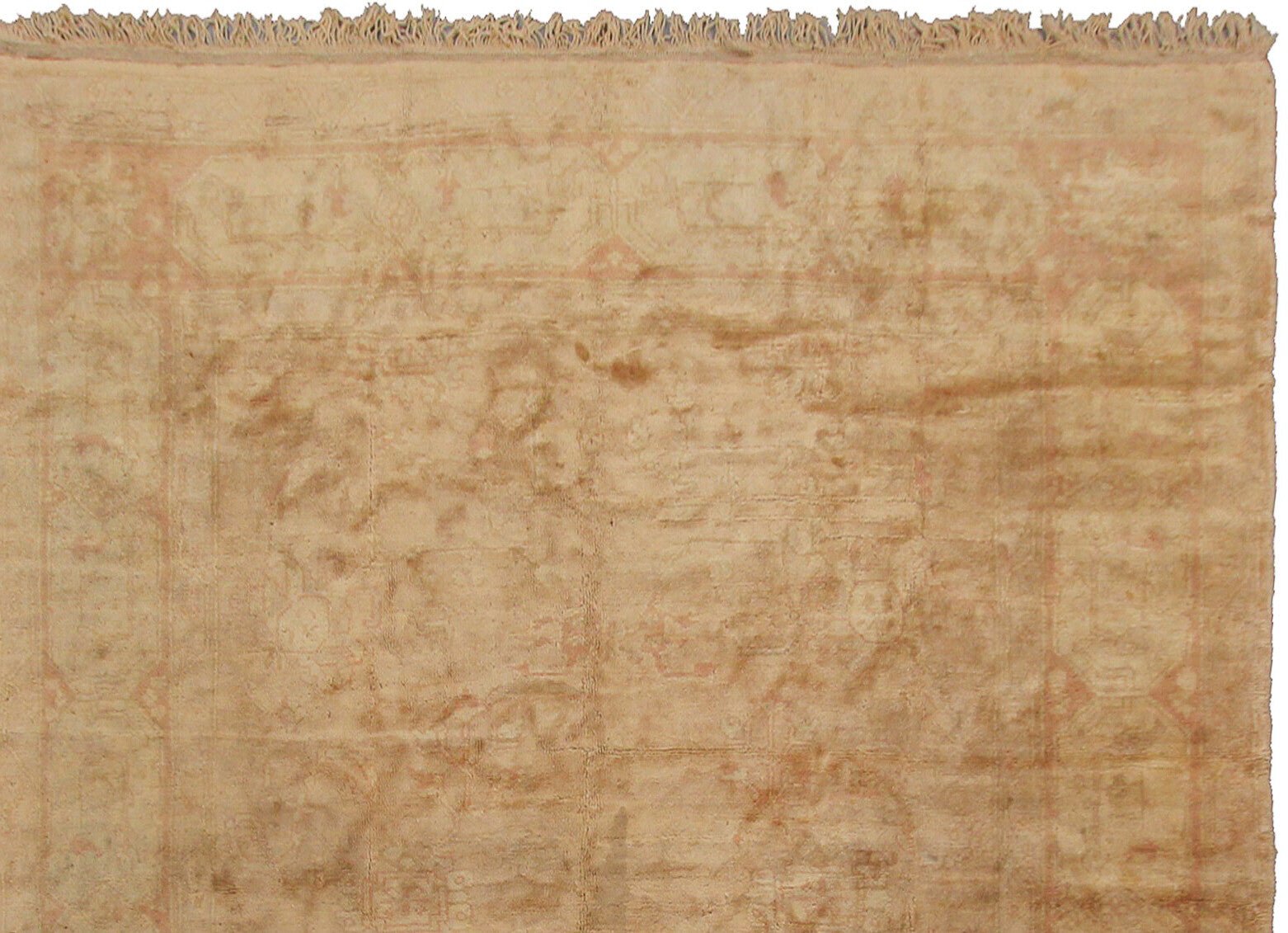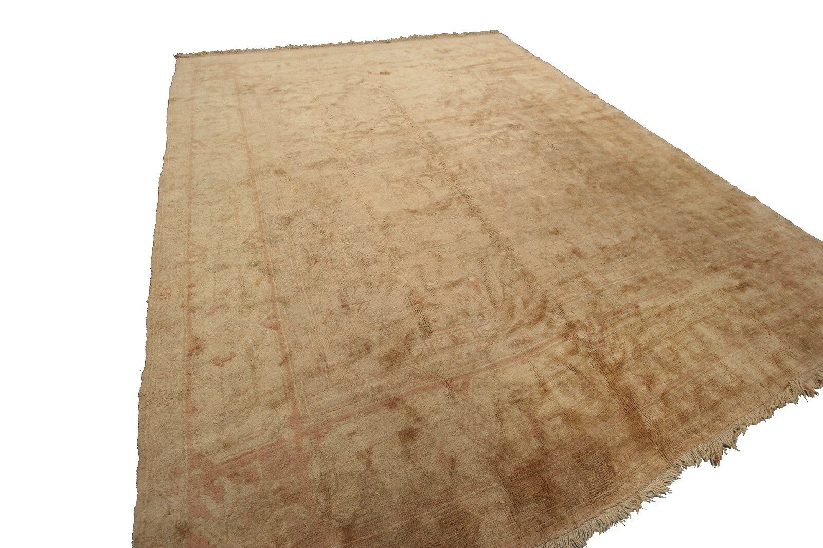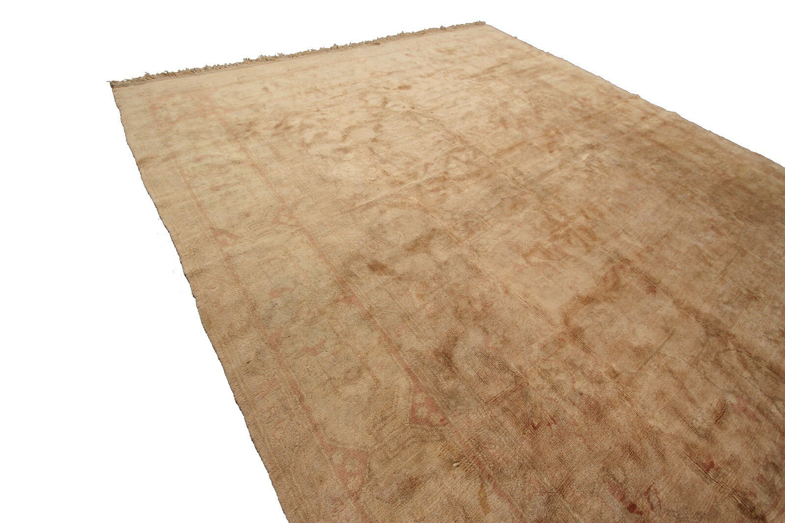 "This Oushak was acquired from a New Jersey Estate. This is a stunning vintage Angora Turkish Oushak rug from 1960's. This superb piece incorporates beautiful decorative colors with geometric designs. These are extremely durable rugs with wool foundation. It has been professionally cleaned and is ready to be used." -DCR