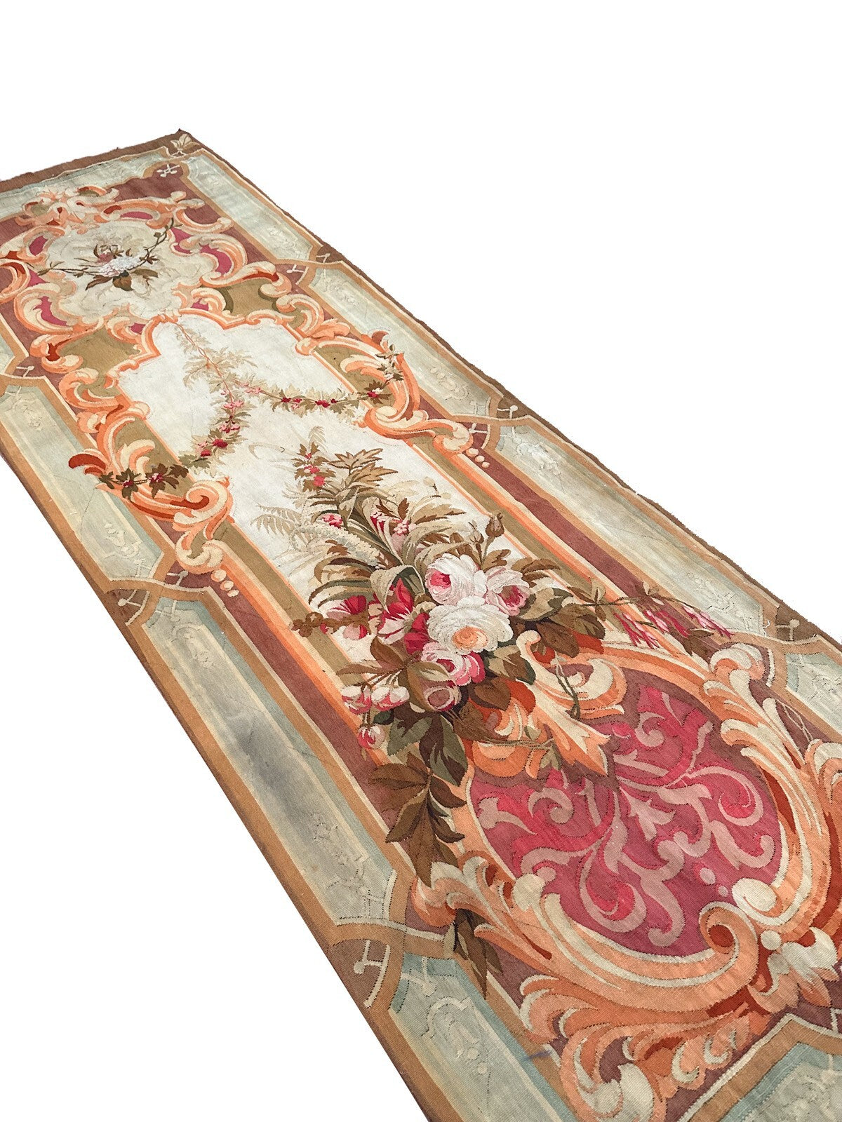 1920 Antique French Aubusson Tapestry Rug Floral Vase Runner 3x10 1880 97x287cm
