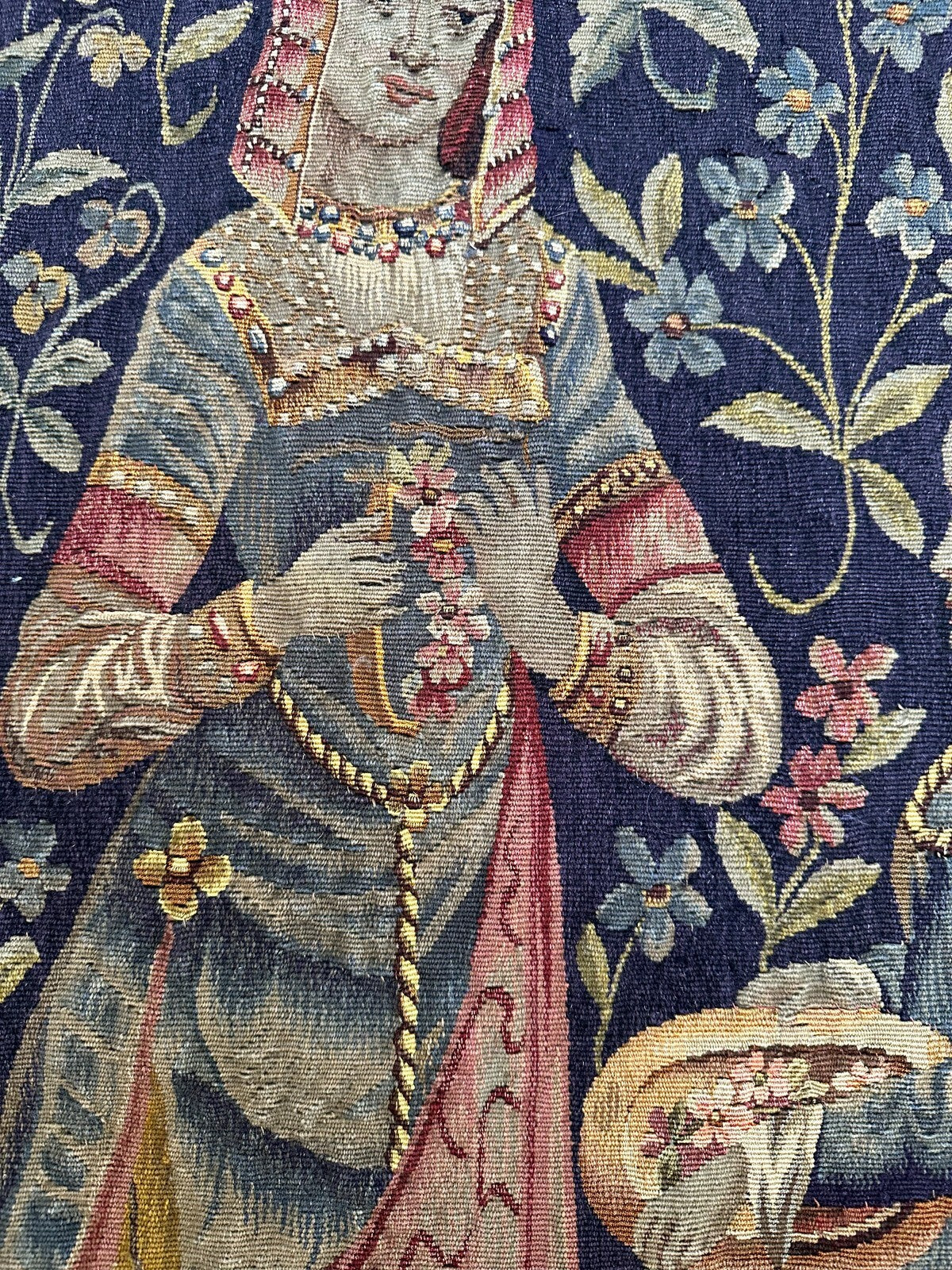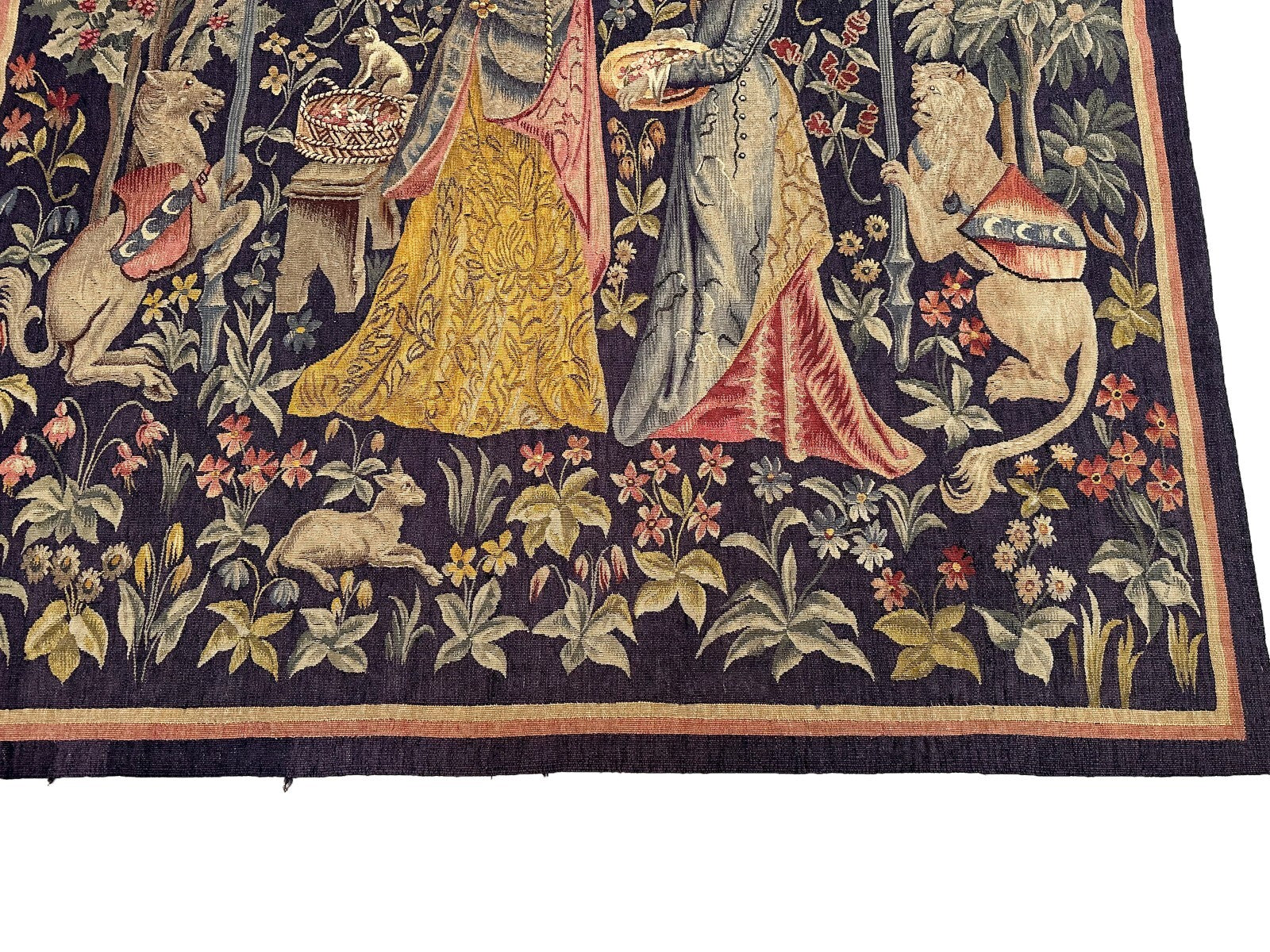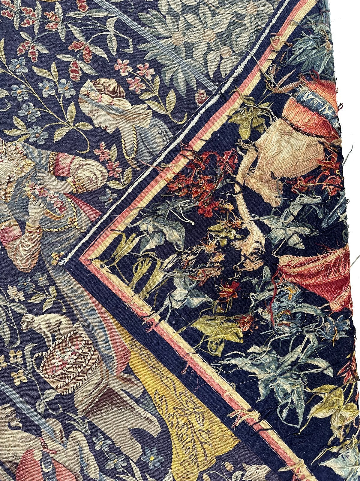 Antique French Aubusson Tapestry Rare Wool & Silk  Renaissance c.1890