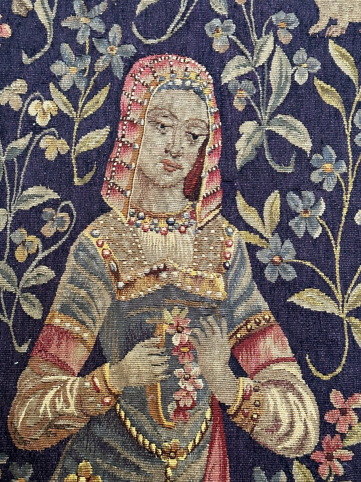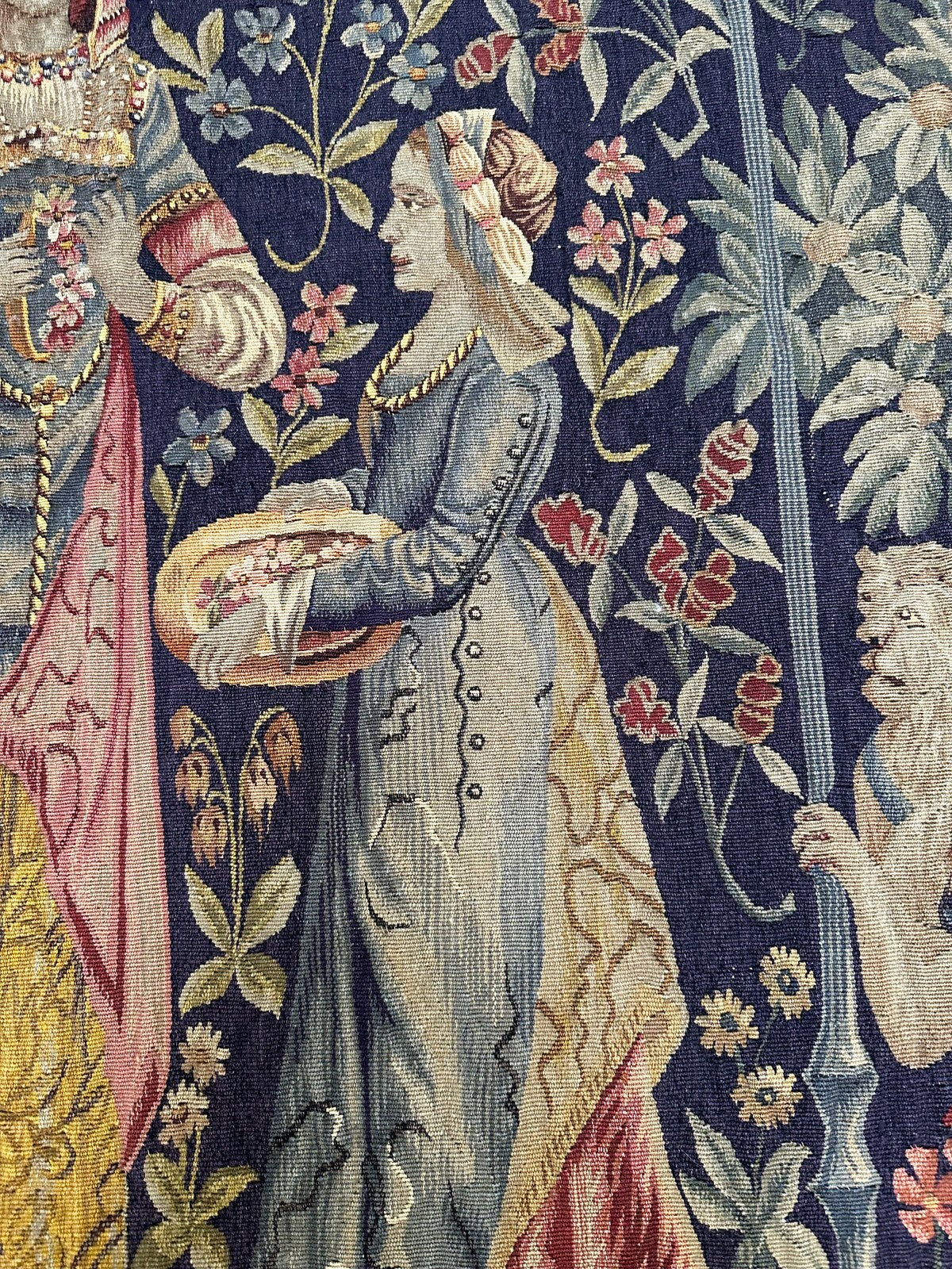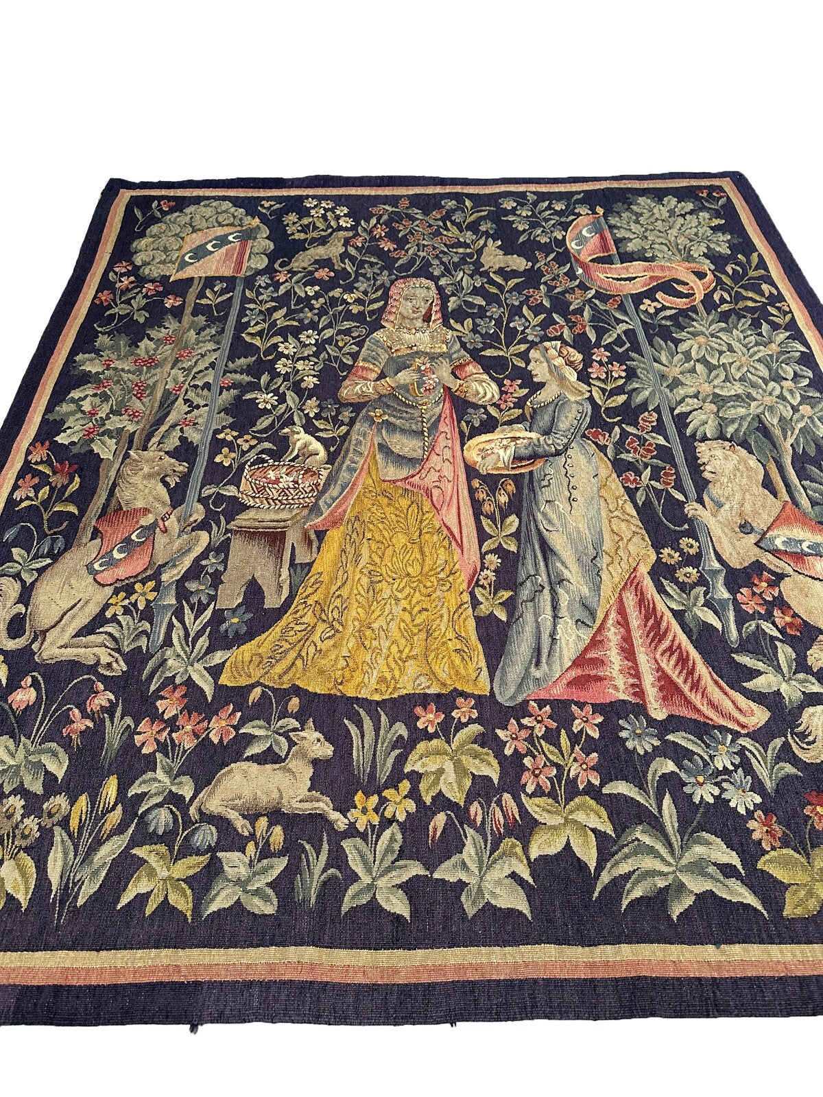 Antique French Aubusson Tapestry Rare Wool & Silk  Renaissance c.1890