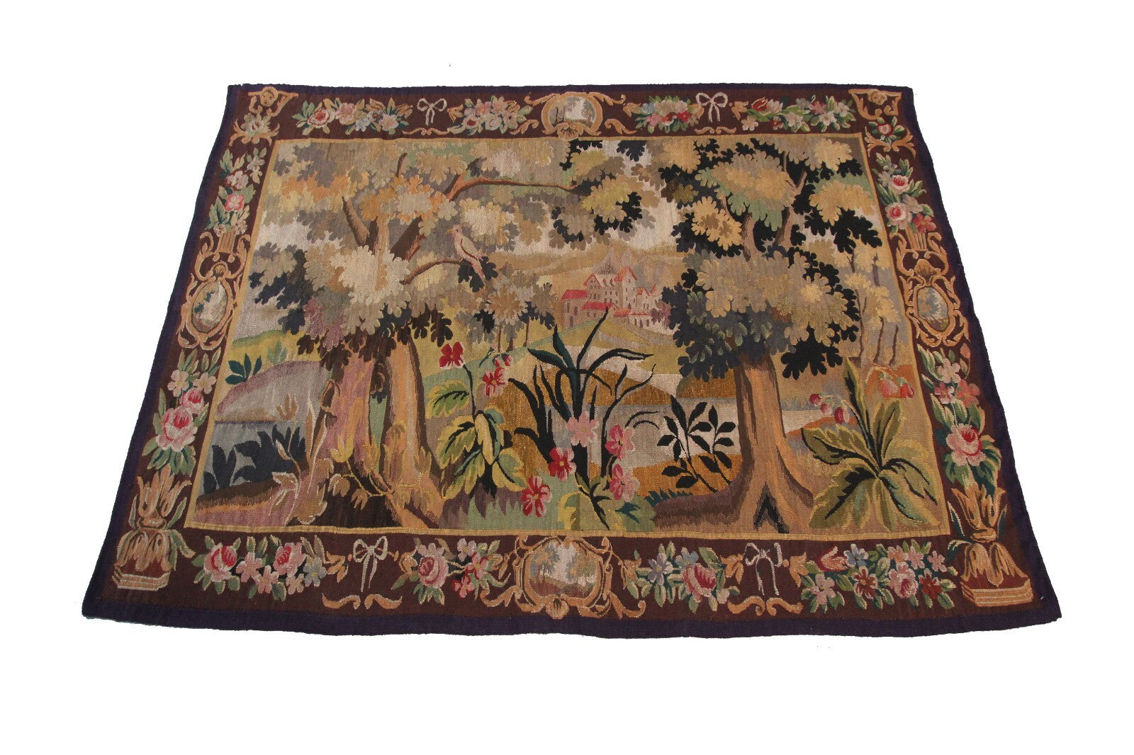 Antique Verdure Tapestry French Tapestry Handmade Antique Large Tapestry 1900