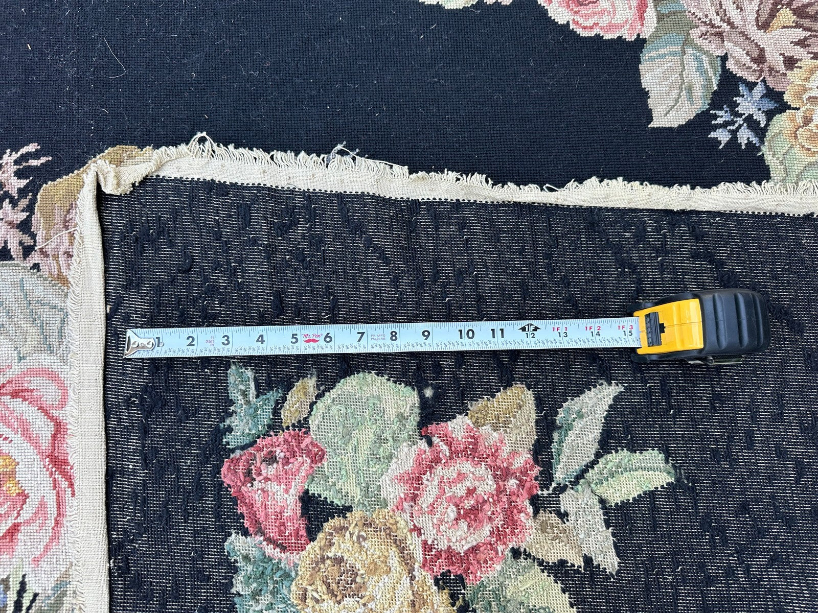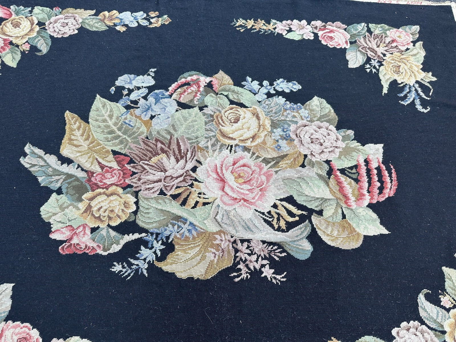 6x9 Antique French Needlepoint Tapestry Victorian  Rug  Blue 181cmx265cm c.1930