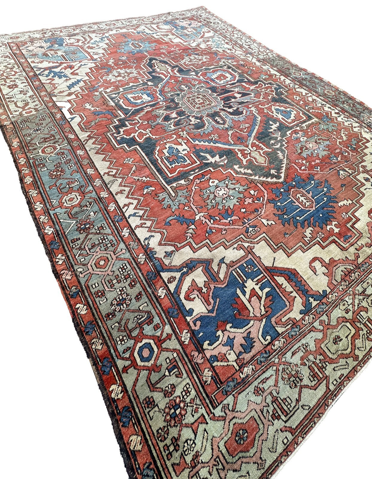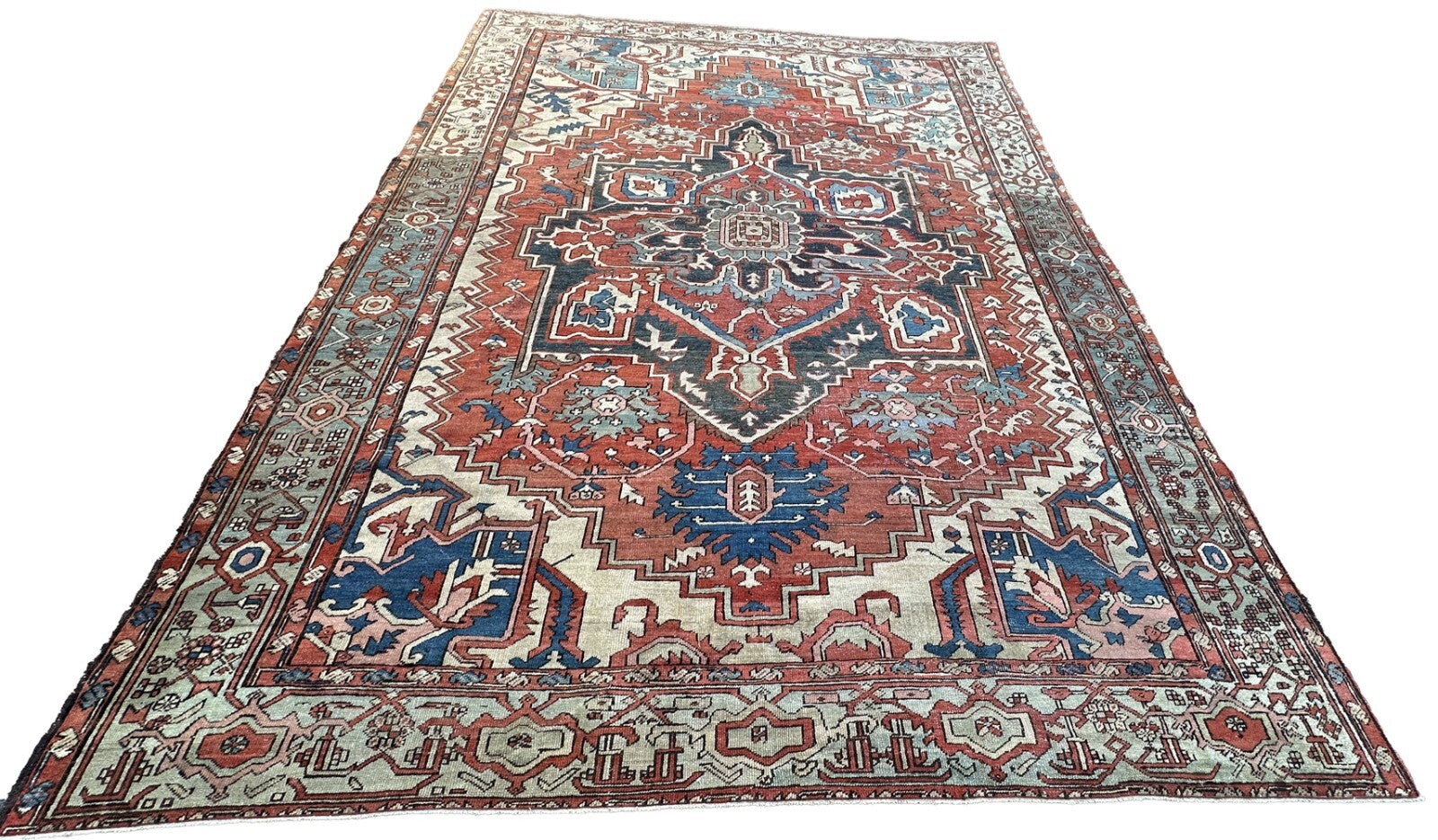 10x13 Antique Rare Serrapi Rug Geometric Handmade Rug Rust 288cmx392cm c. 1880