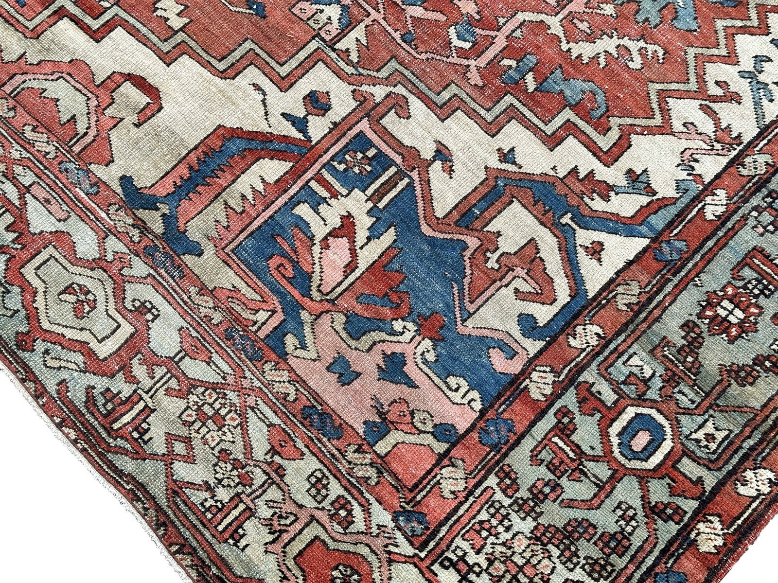 " This beautiful rare antique Serrapi rug has a geometric design With with a soft rust background. It came from a prominent New Jersey Estate. This rug has been professionally cleaned. The cold climate helps nurture strong, quality sheep's wool. Because of this, Serrapi rugs are often considered among the most durable antique rugs ever made."