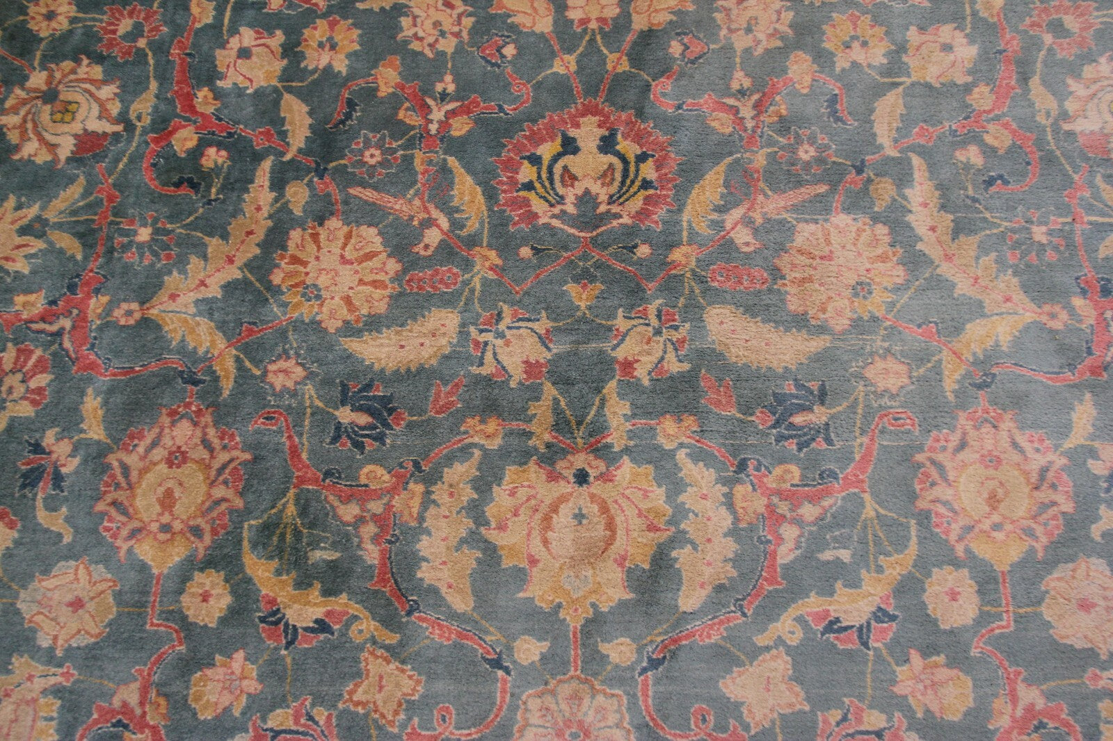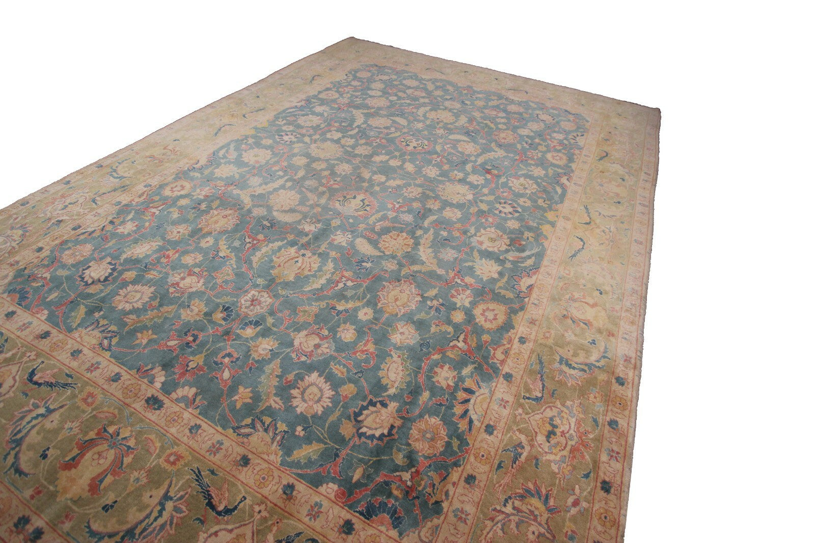 "This is an incredible, unique antique Tabriz rug with an intricate weave and magnificent colorway. Beautiful tones, easy design, and soft wool are few of many special elements in this rug . A cool, yet timeless addition to any space!