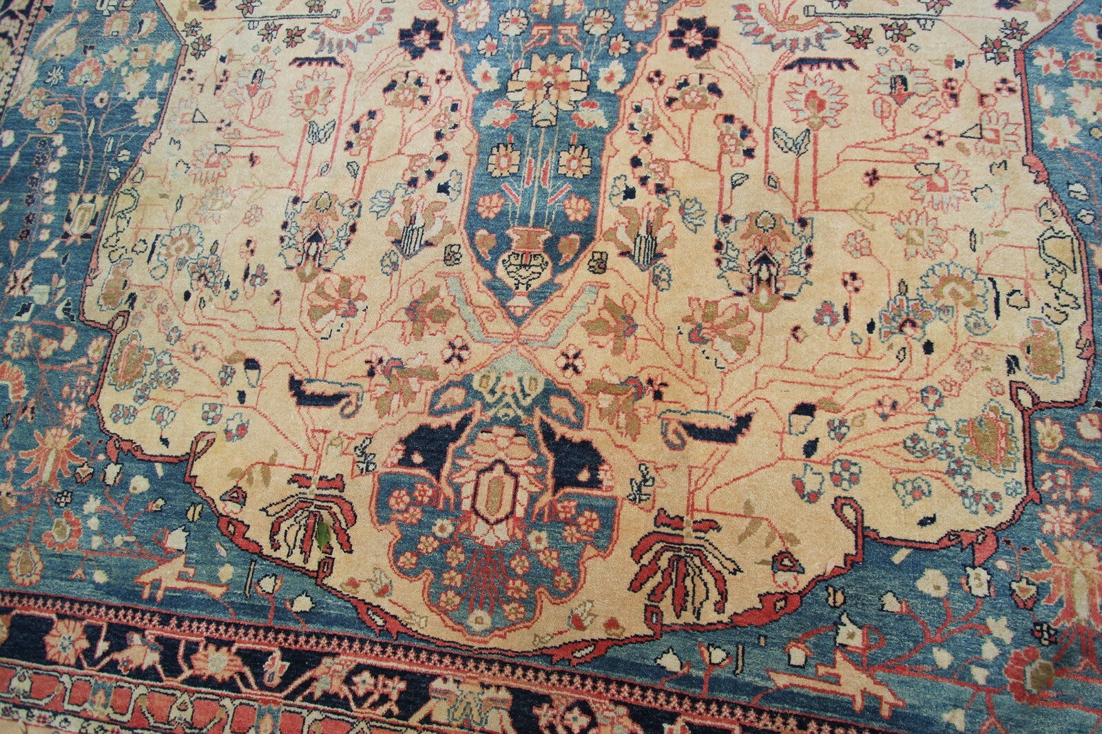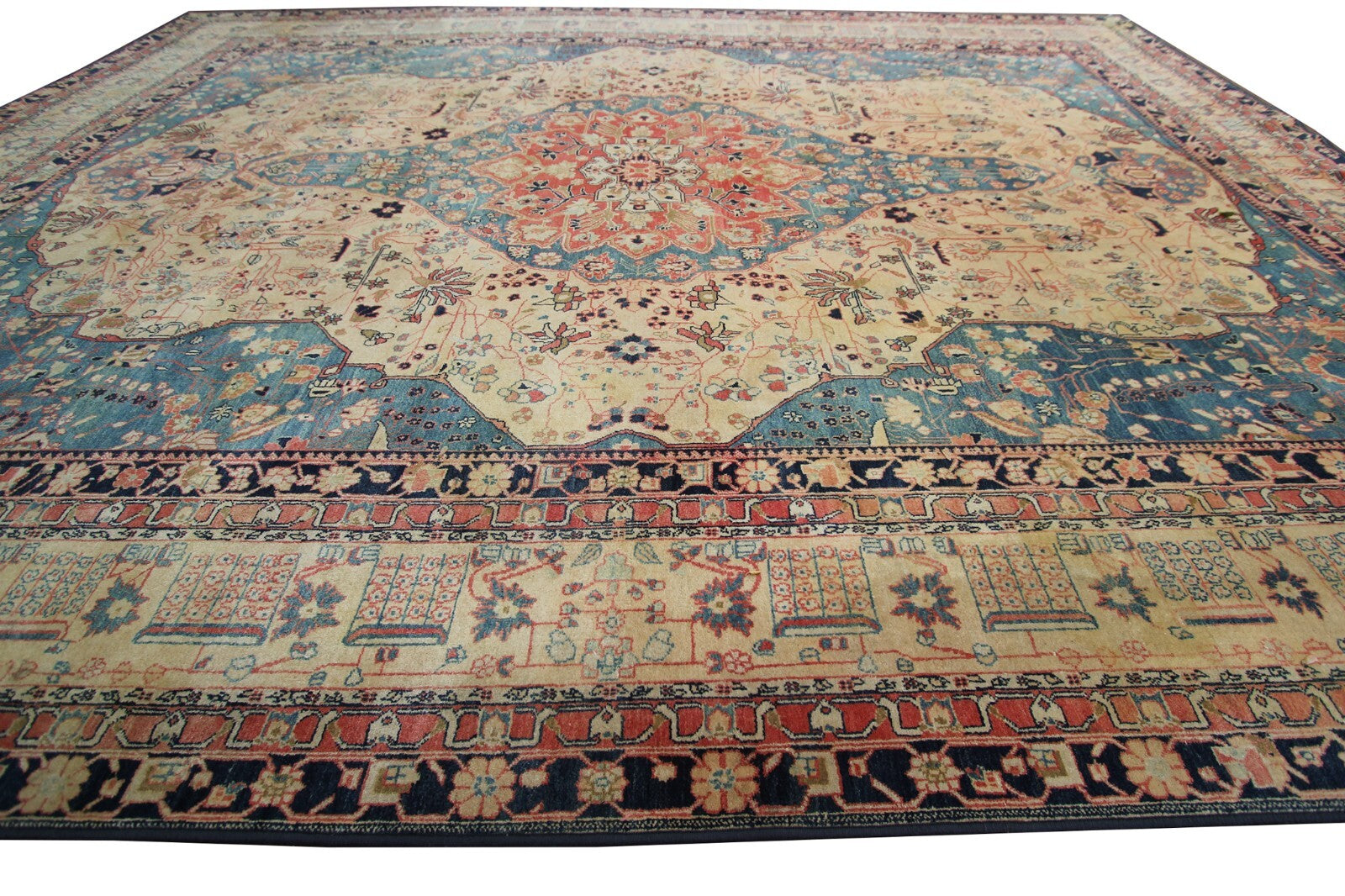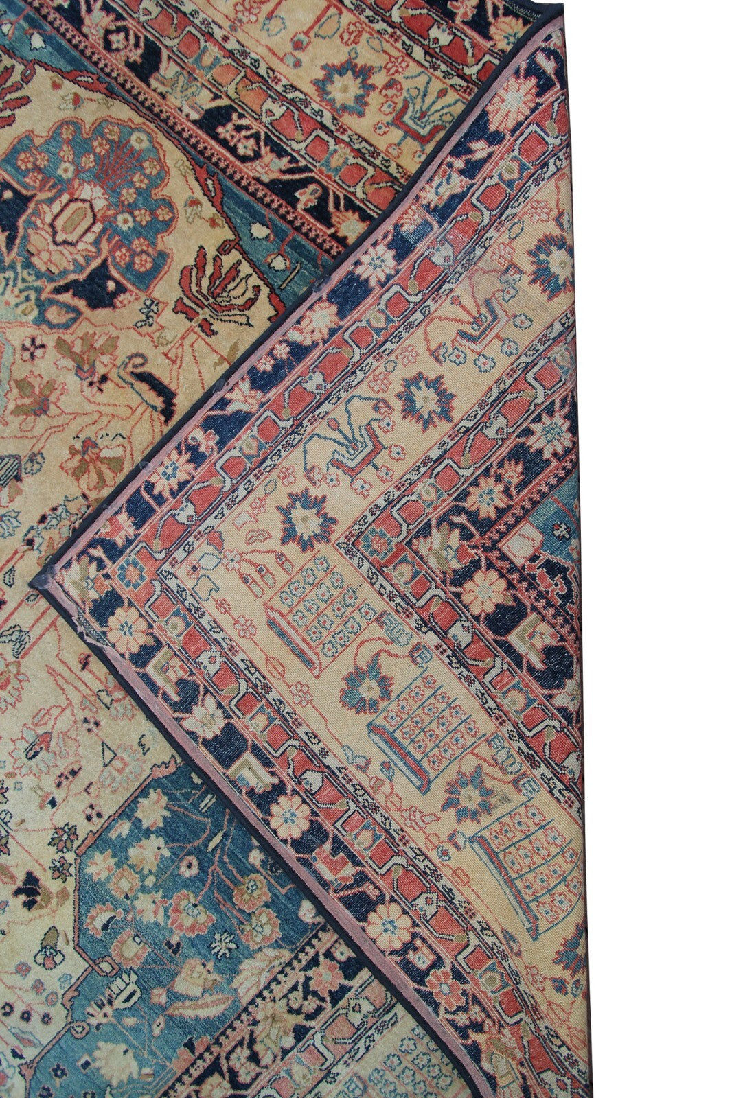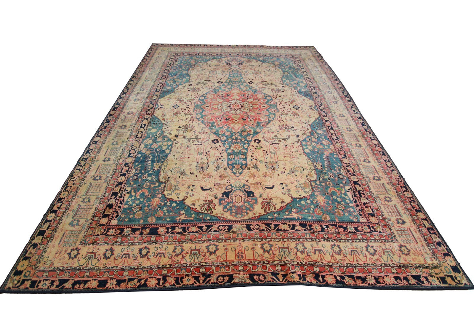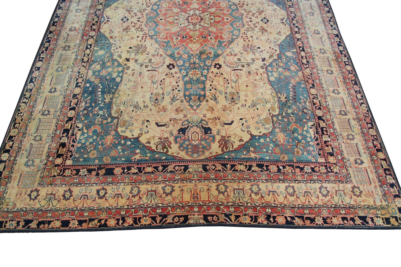 The creation of this rug involves many processes, including spinning, weaving, washing, trimming, and finishing, all done by skilled weavers.
