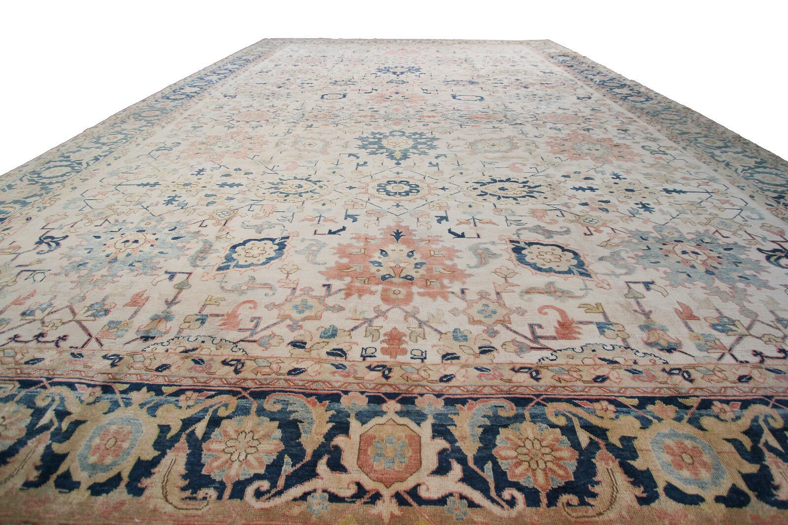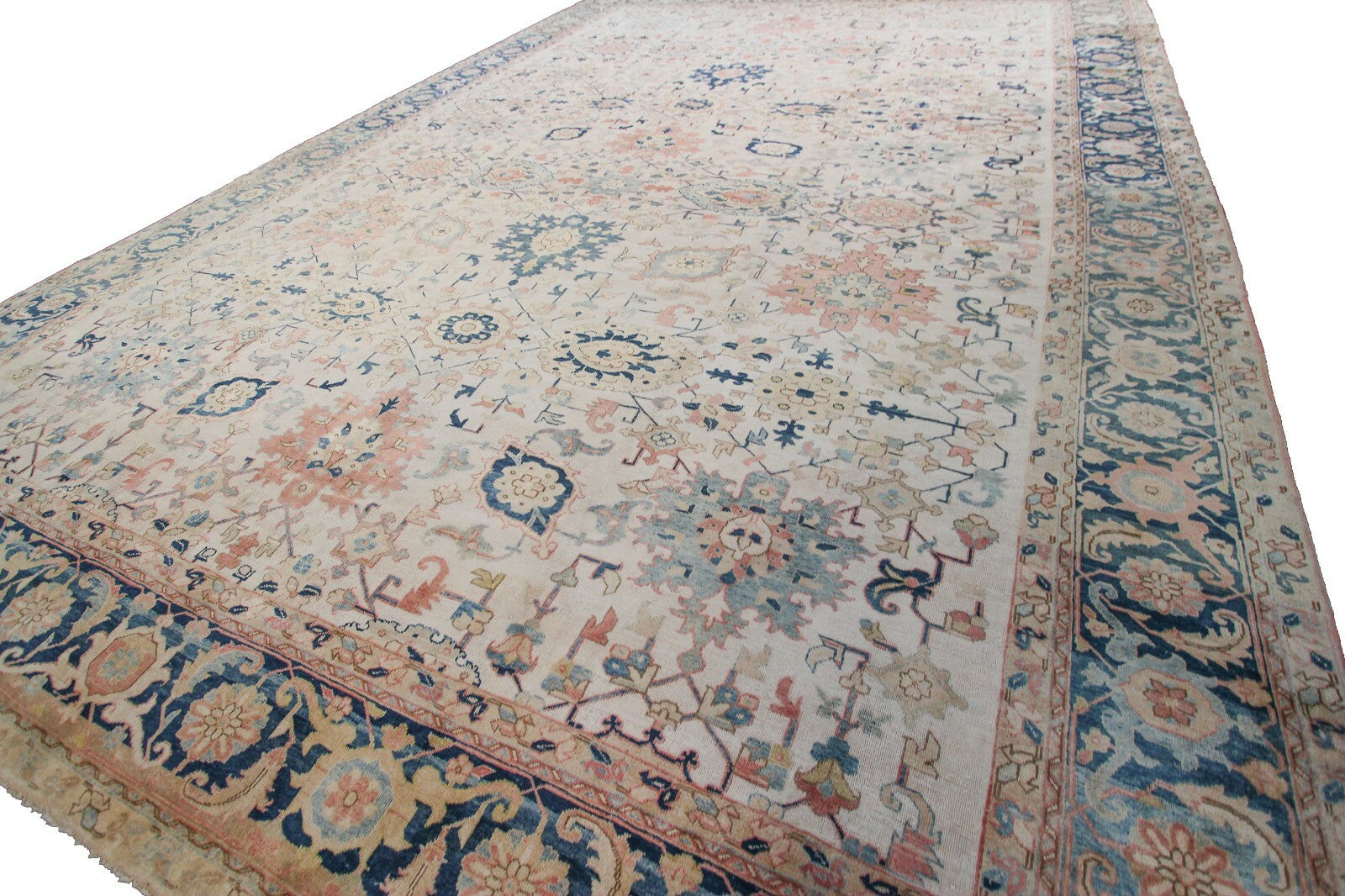 Antique Serapi Herizz Rug Rare Geometric Ivory Rug