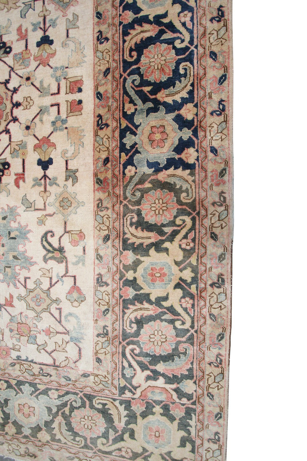 "This is a magnificent antique antique Herizz Serapi. This piece incorporates an incredible geometric allover design and soft tones. The cold climate helps nurture strong, quality sheep's wool. Because of this, Heriz Serapi rugs are often considered among the most durable antique rugs ever made."-DCR