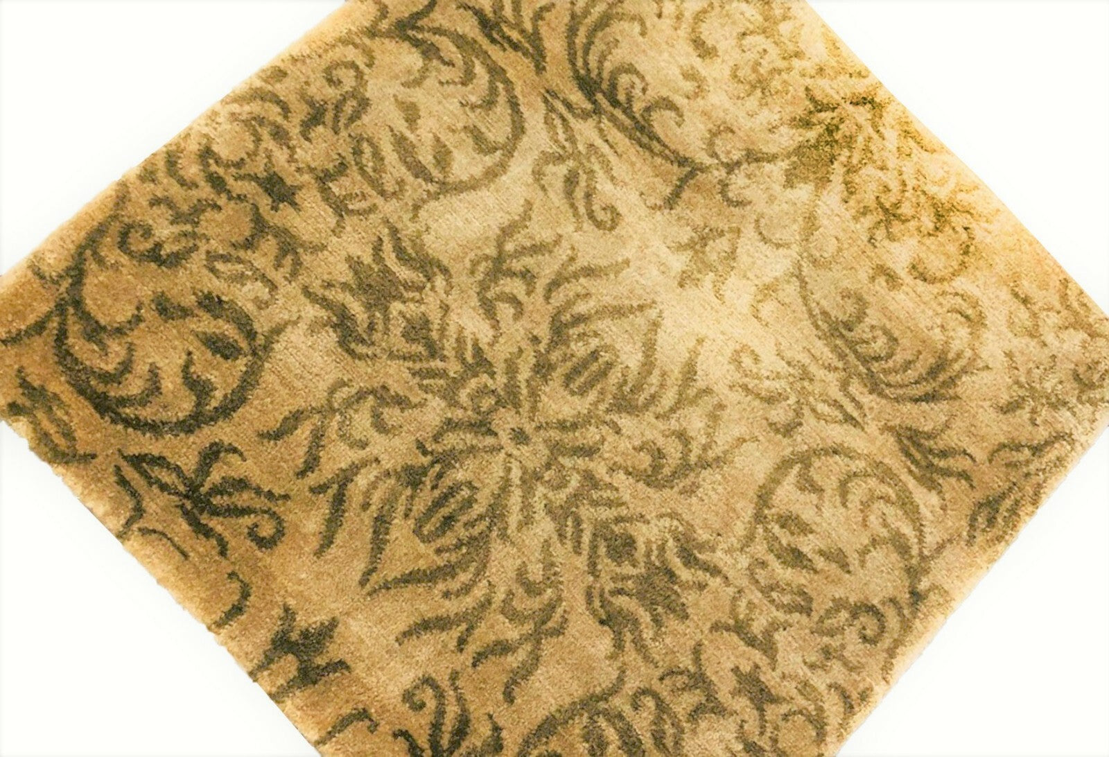"This is a beautiful 100% Natural Silk Vintage Tibetan Rug with floral elements. It has a soft tone on tone look- very fine quality and in superb condition."-DCR