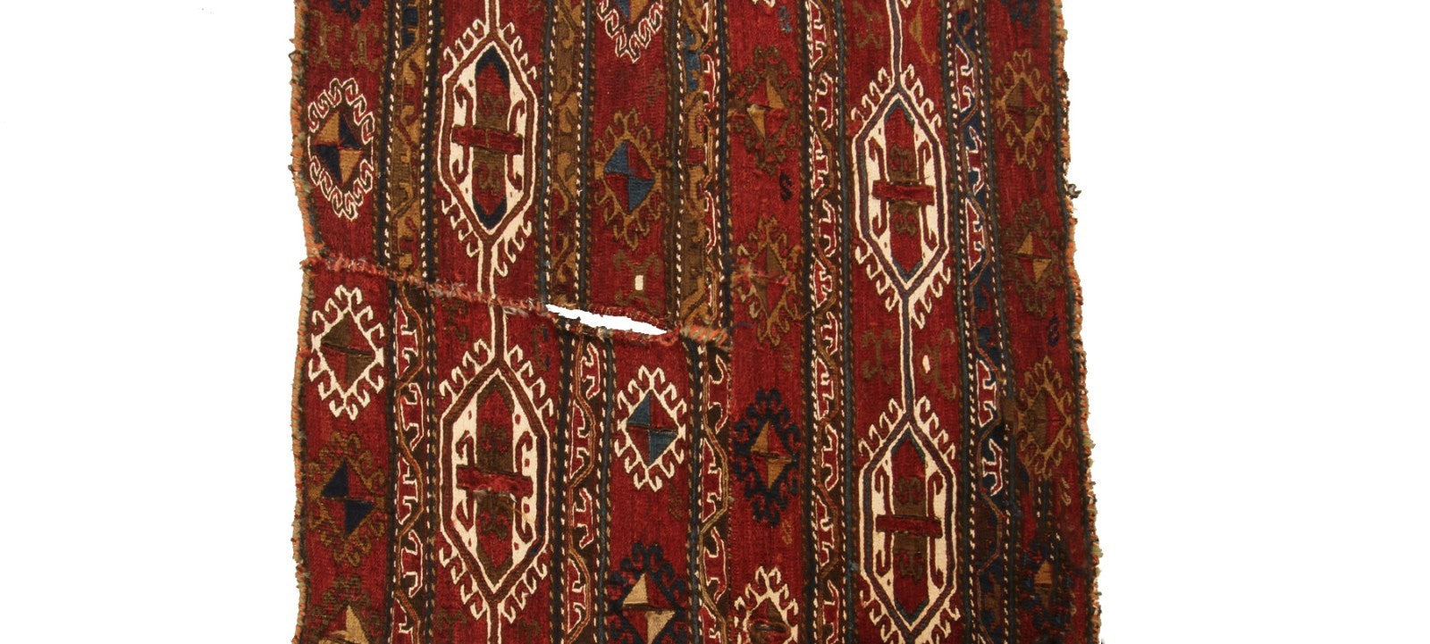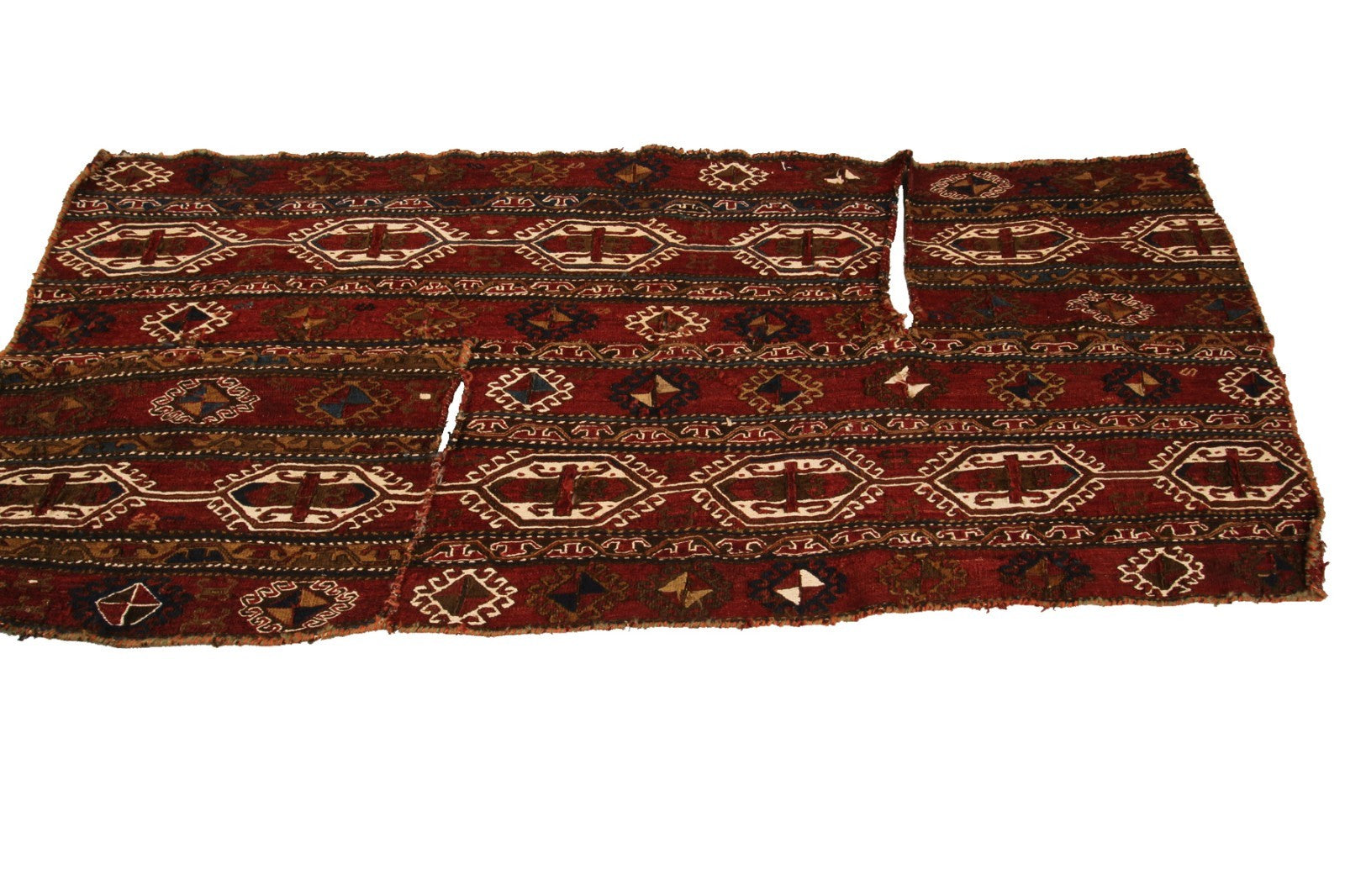 This genuine hand knotted Antique Soumak Shahsavan Saddlebag Rug by Designers Choice Rugs is truly a work of art.  With great geometric Tribal design, this piece portrays an exquisite opulence.
