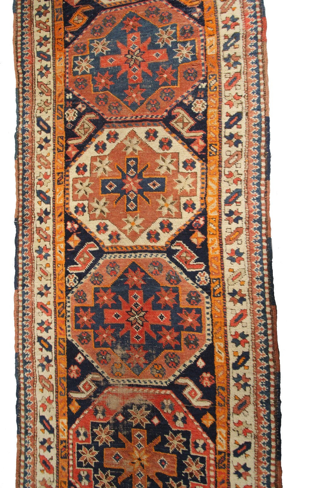 "This is a truly magnificent authentic antique Caucasian Kazak runner in a very high. It has a striking geometric design with artisan work. " -DCR