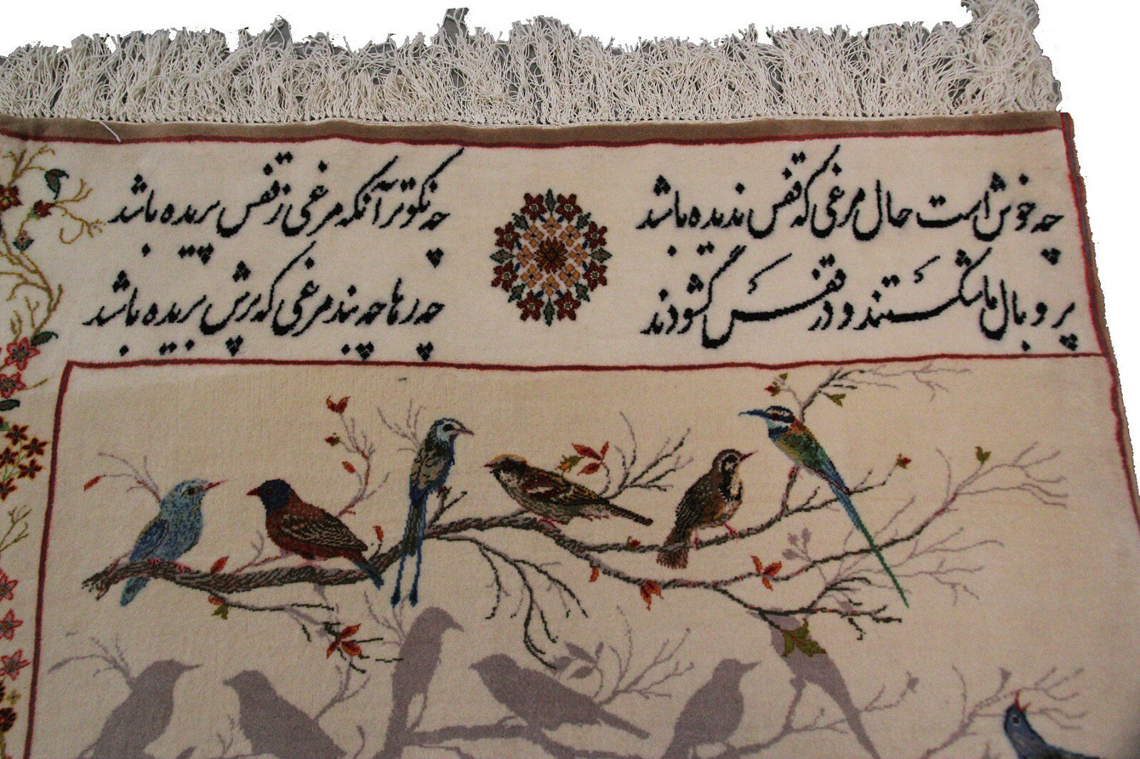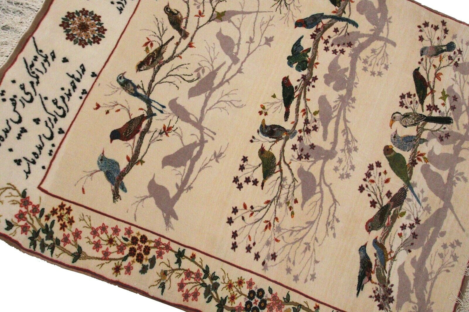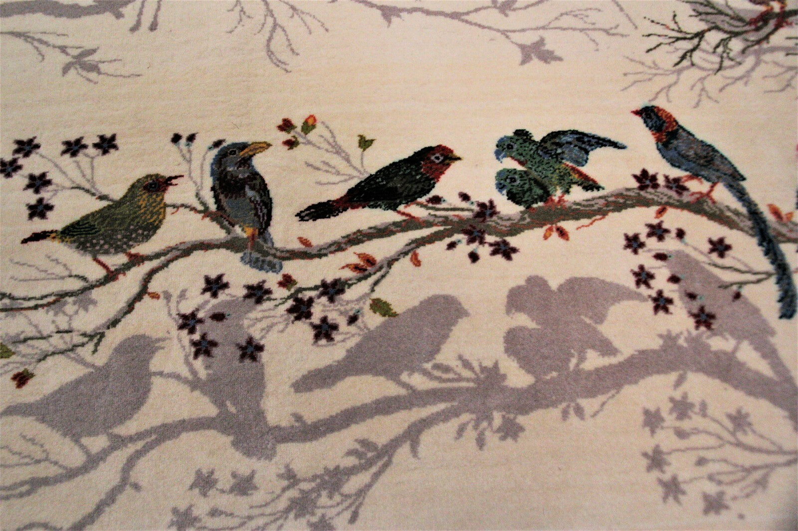 "This is a fabulous exceptionally fine Vintage Sampler It has a pure wool pile on 100% pure silk foundation and birds design. This piece was acquired from a prominent Manhattan Estate. It is in superb condition. It has been professionally cleaned.- truly exquisite!"-DCR